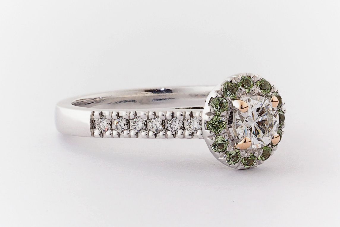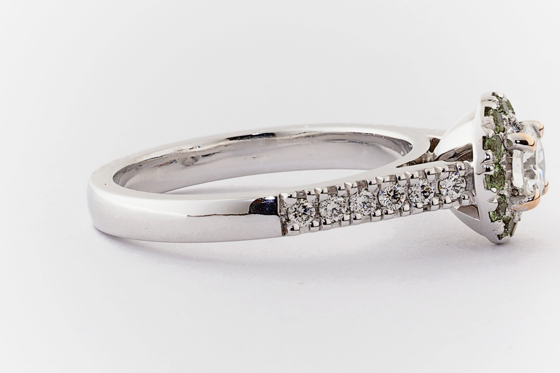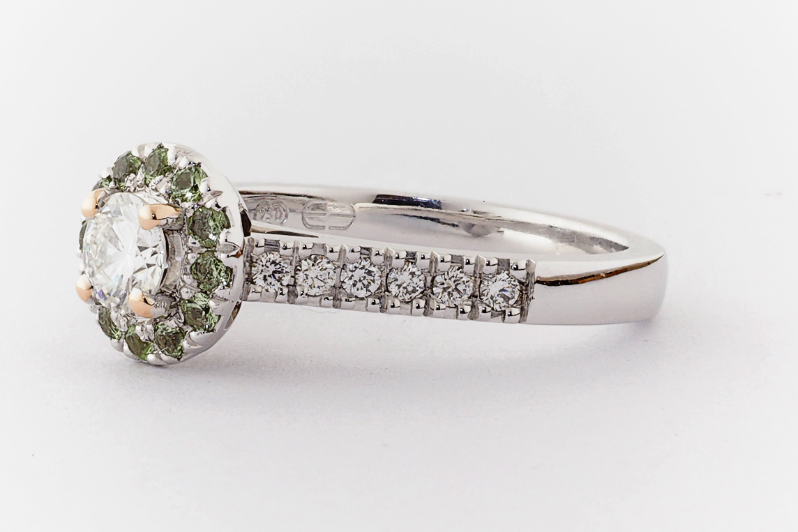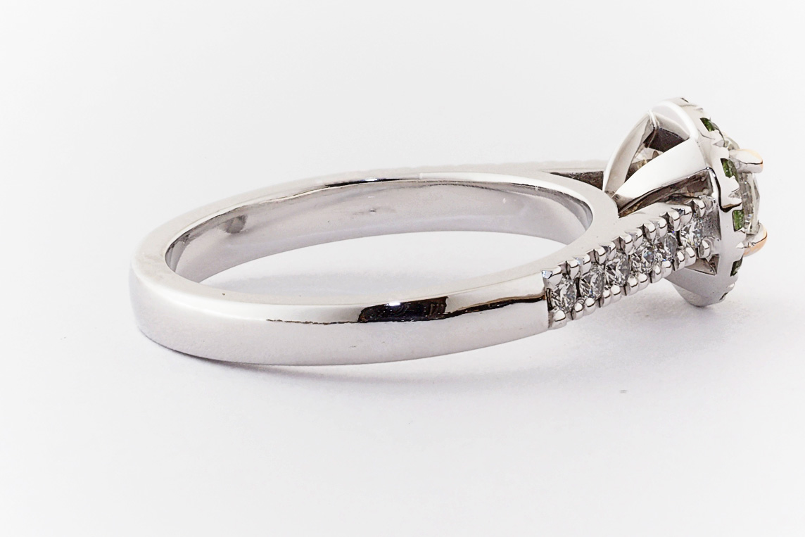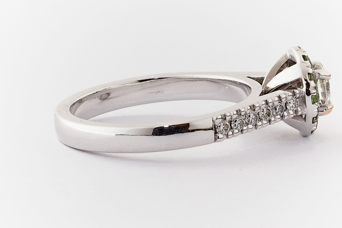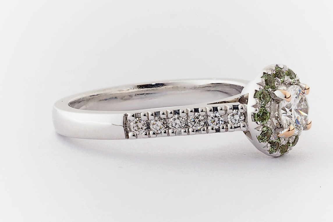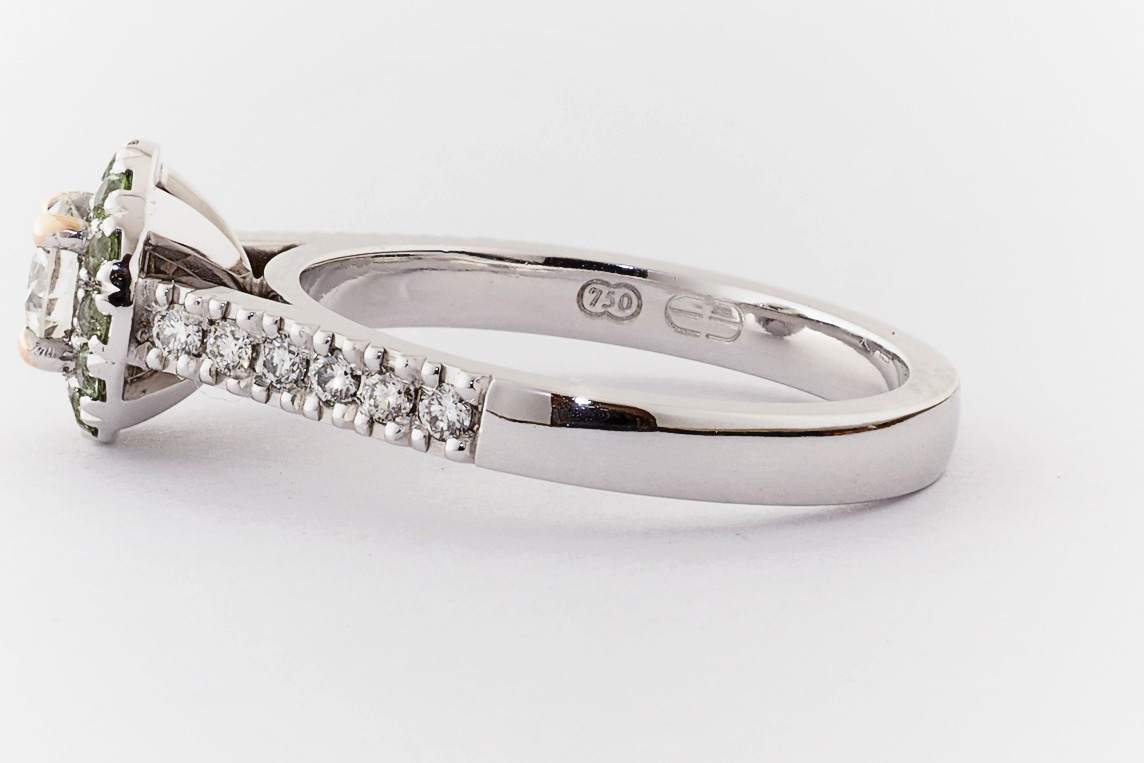 18ct two-tone gold, diamond and peridot handmade ladies dress ring