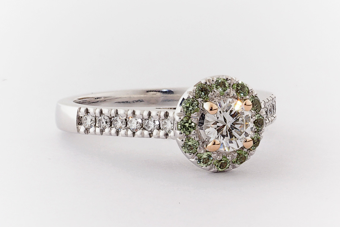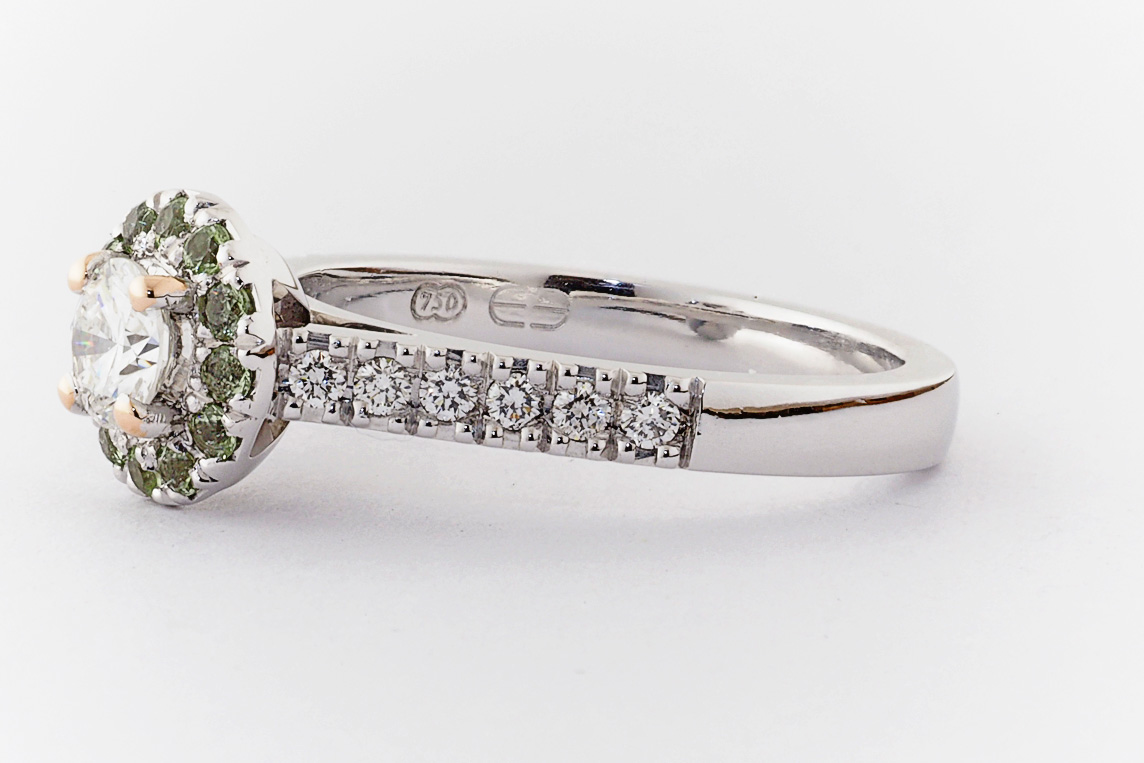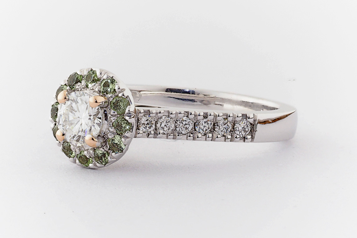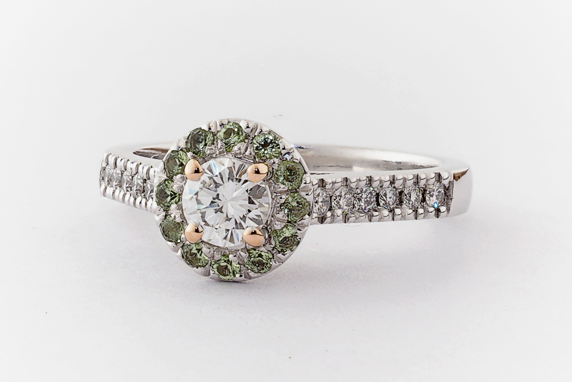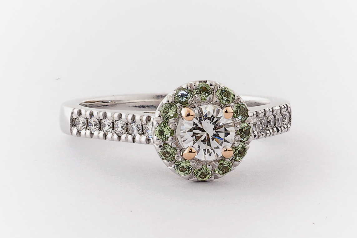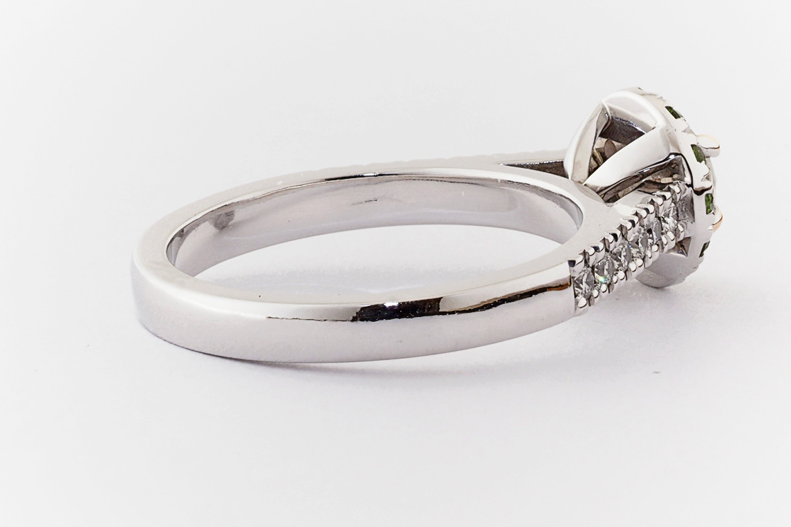 18ct two-tone gold, diamond and peridot handmade ladies dress ring