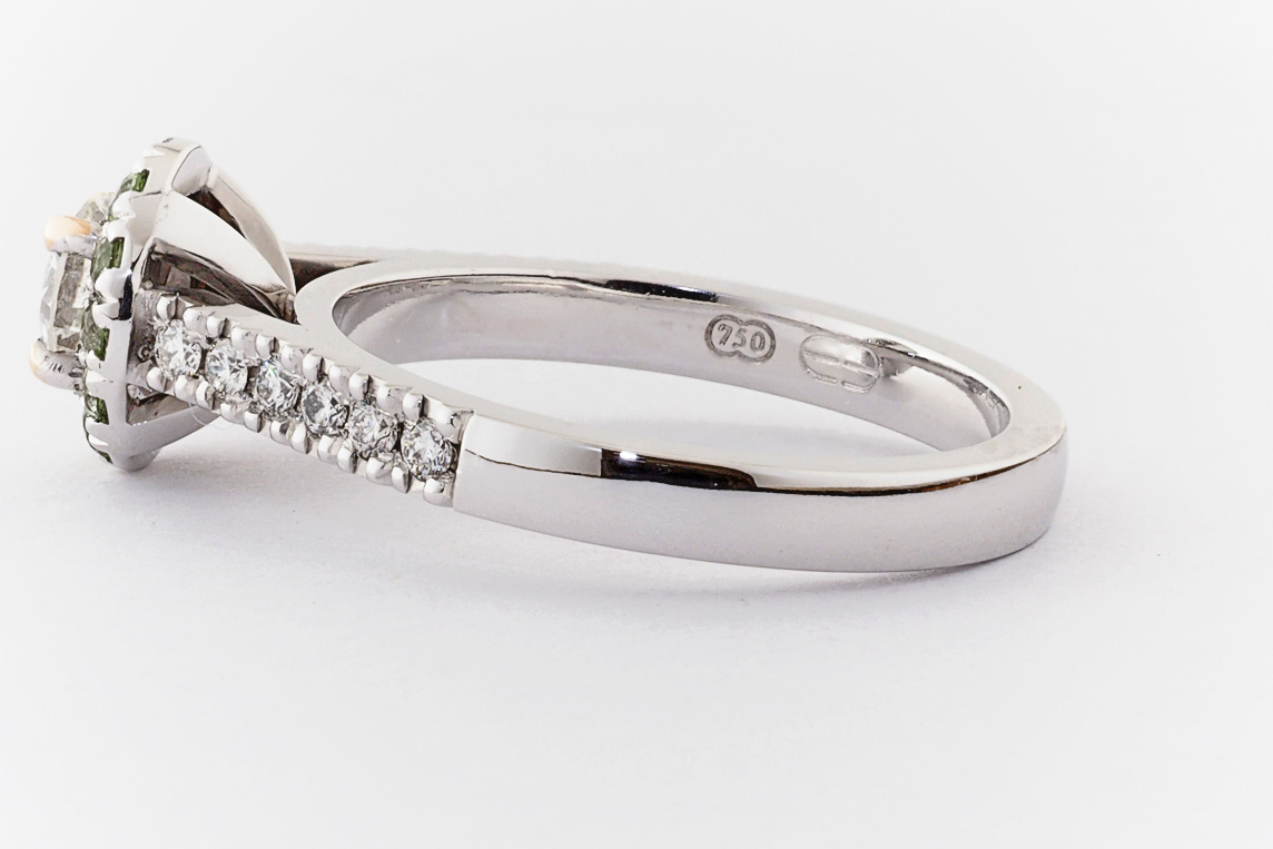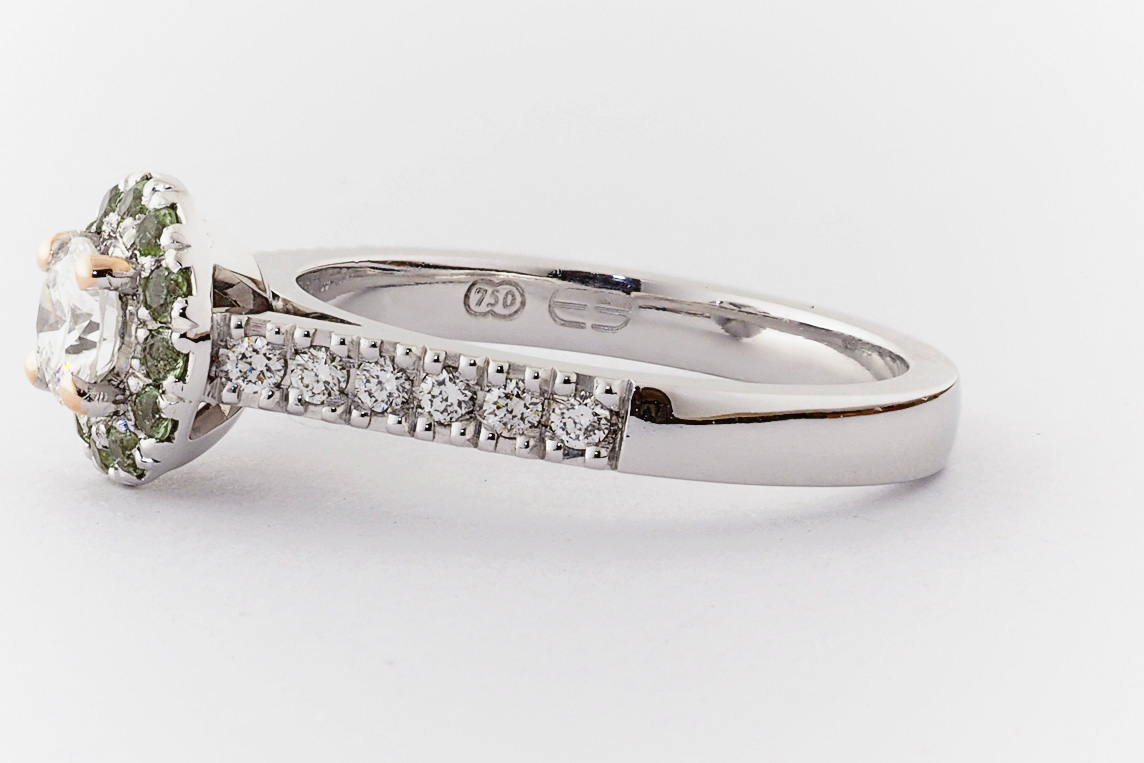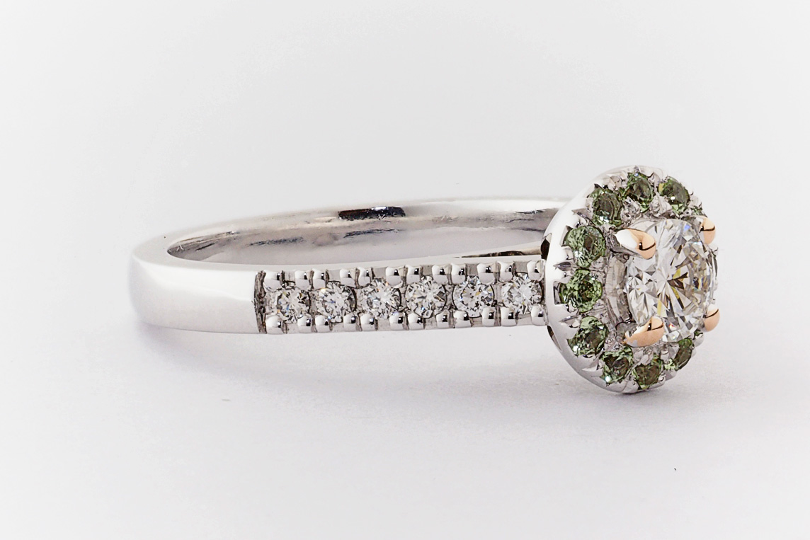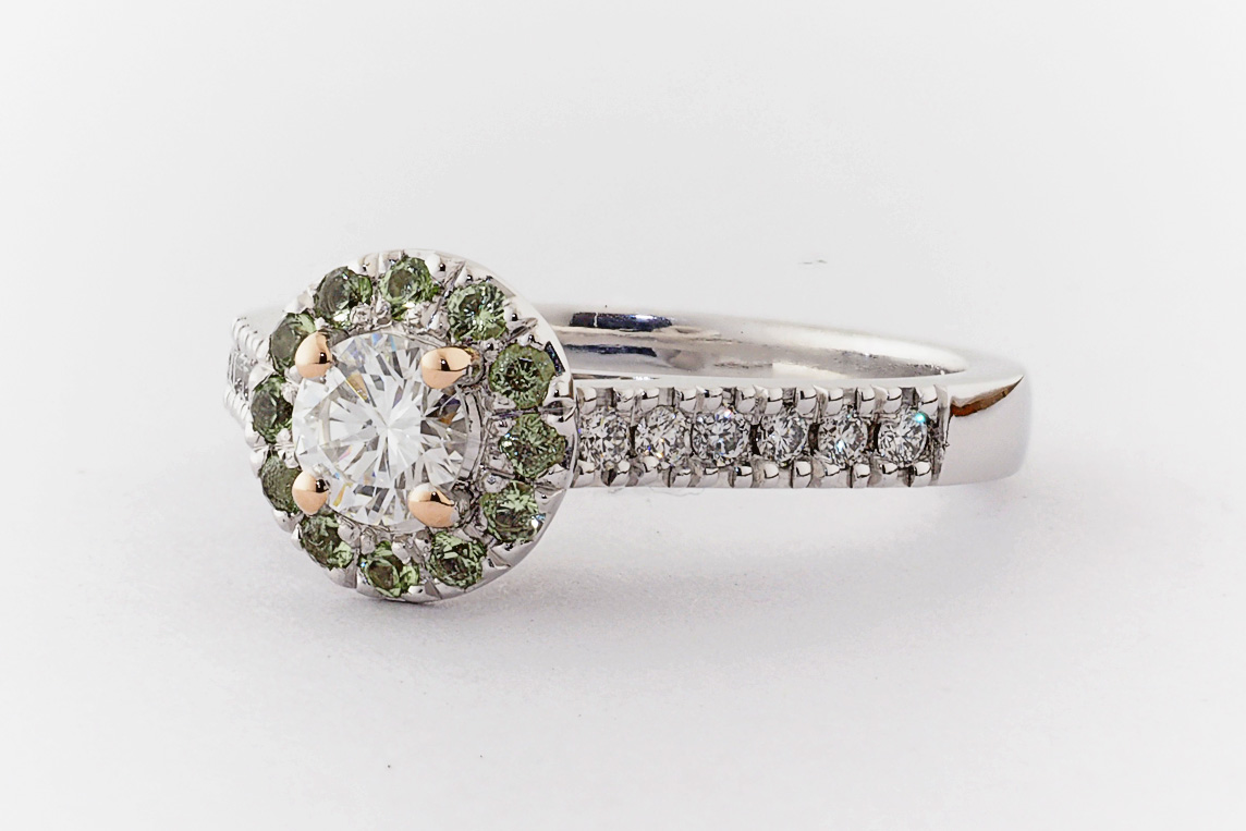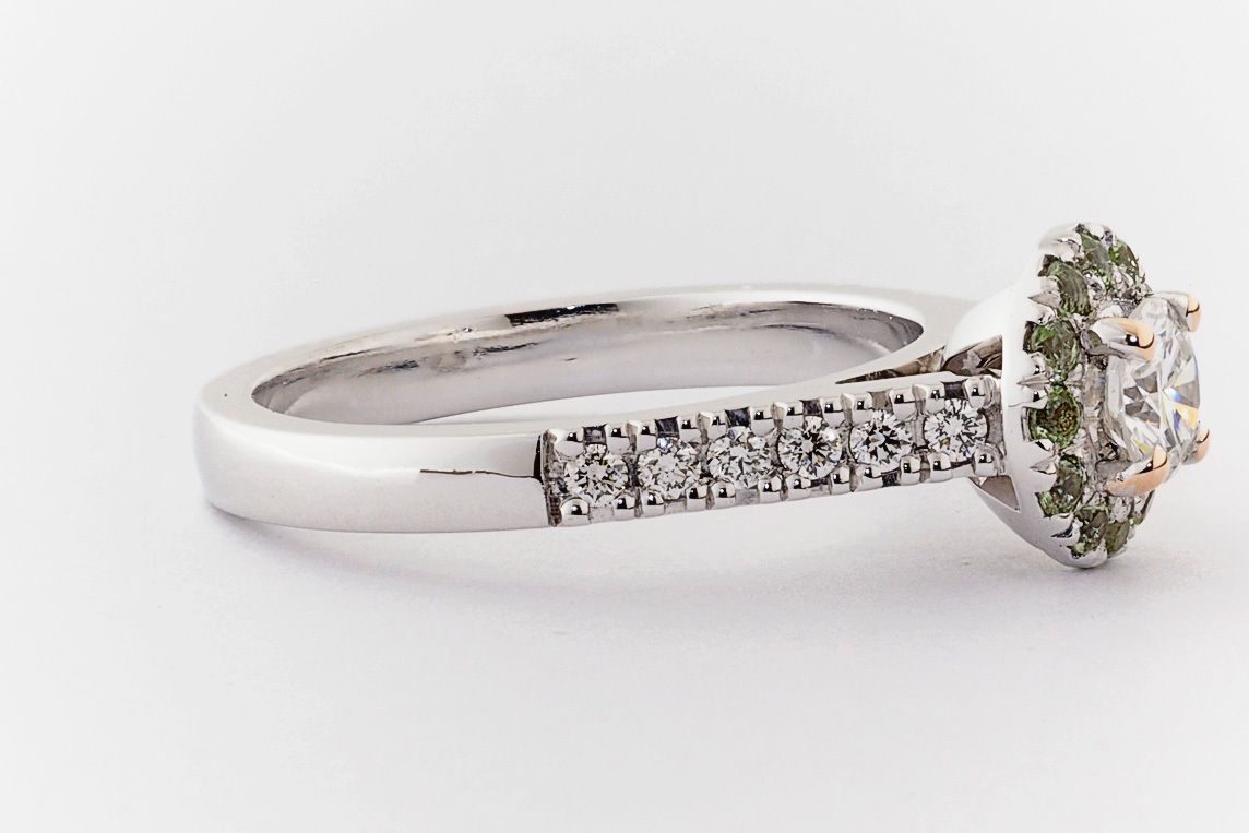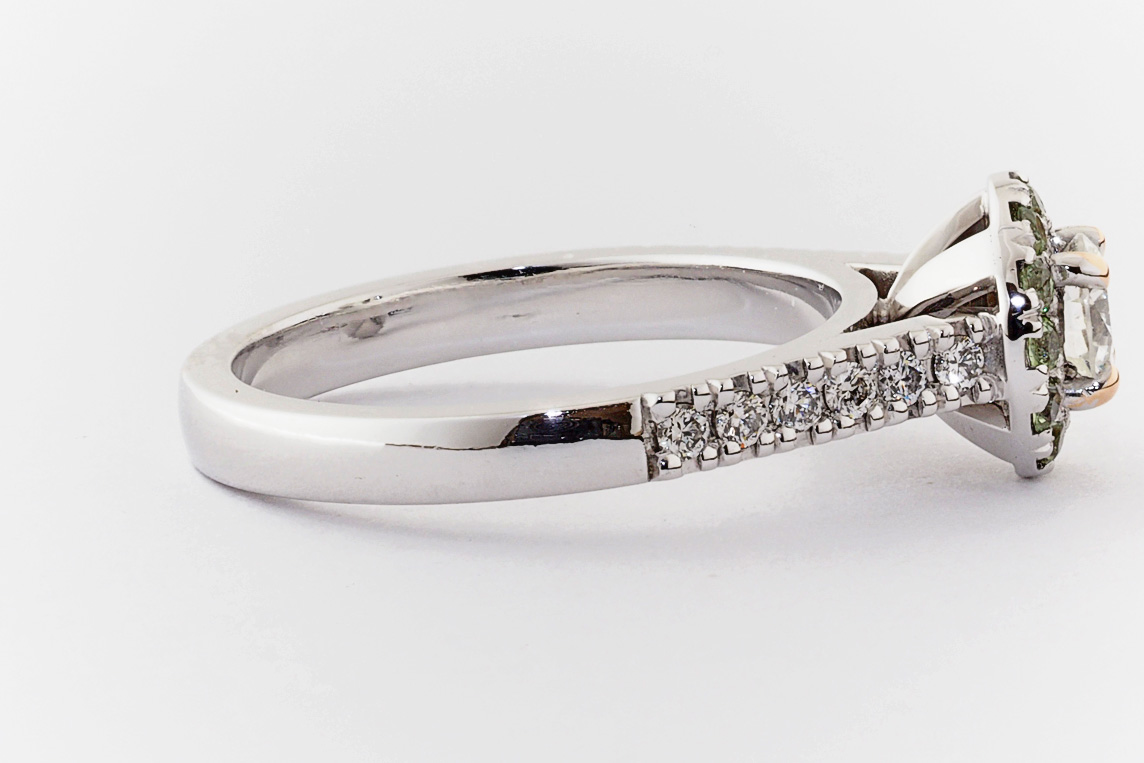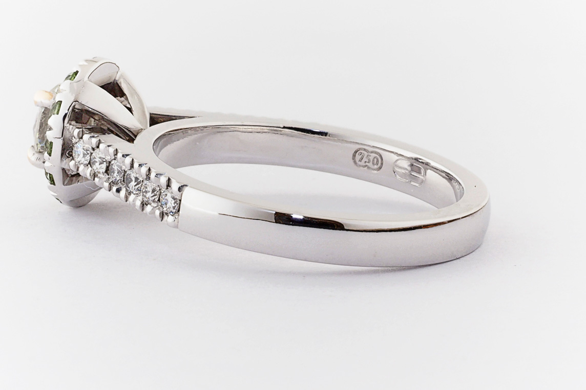 18ct two-tone gold, diamond and peridot handmade ladies dress ring