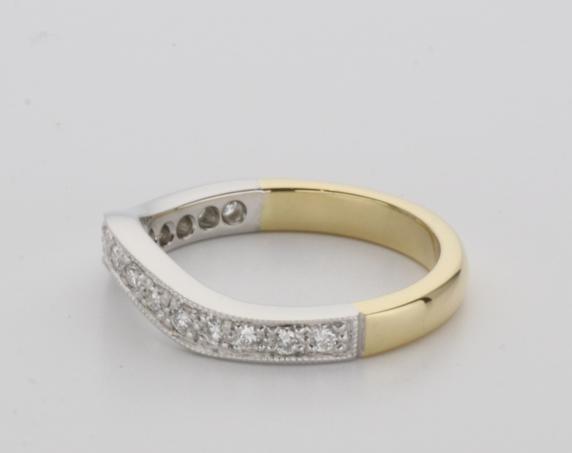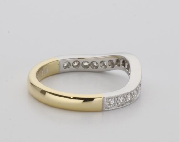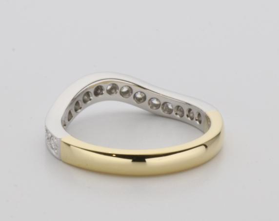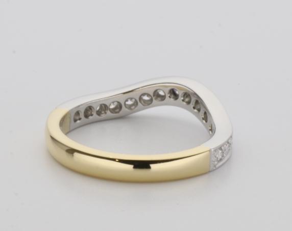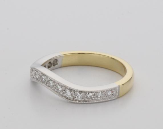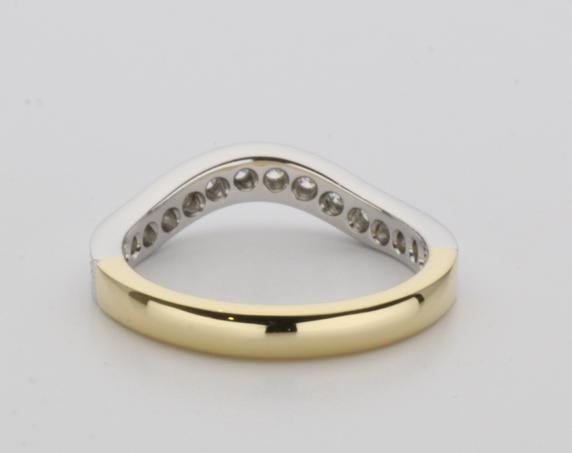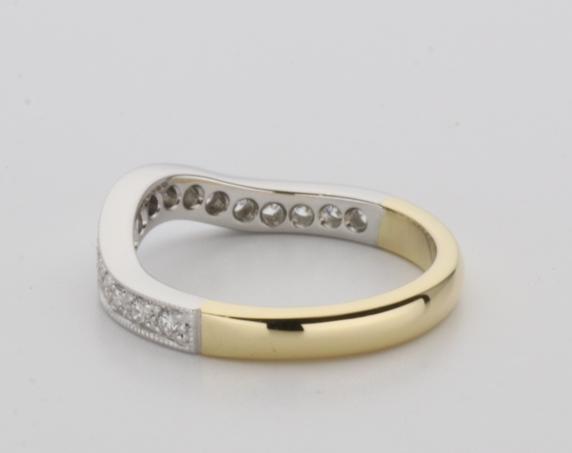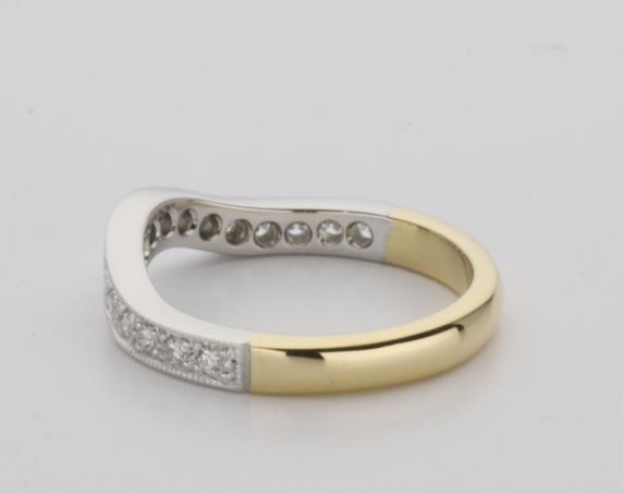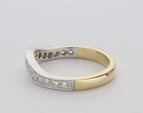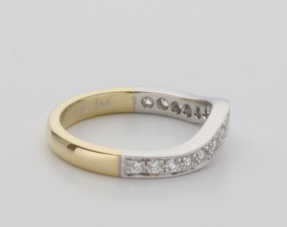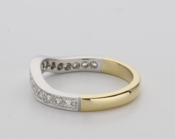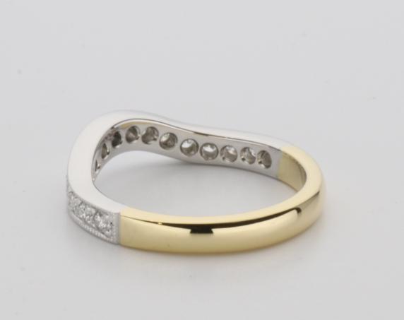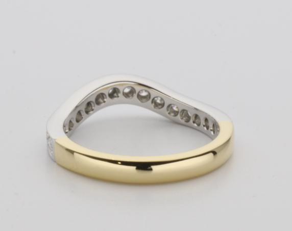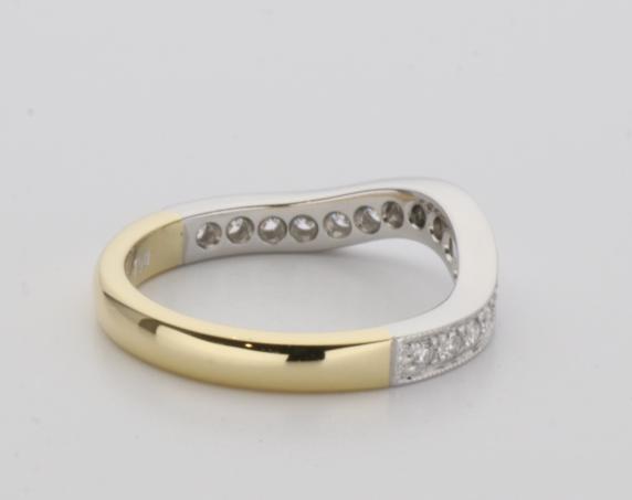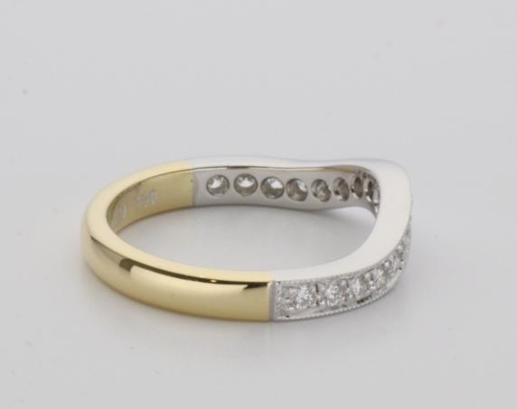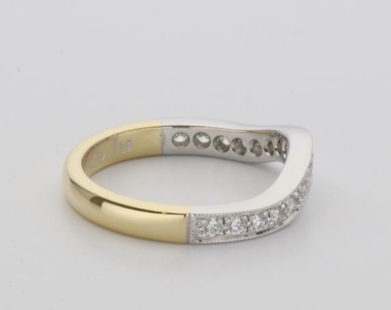18ct two tone gold hand made fitted ladies wedding ring