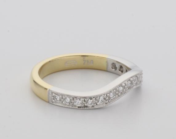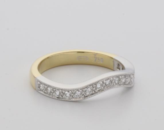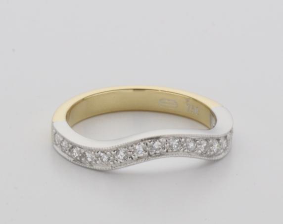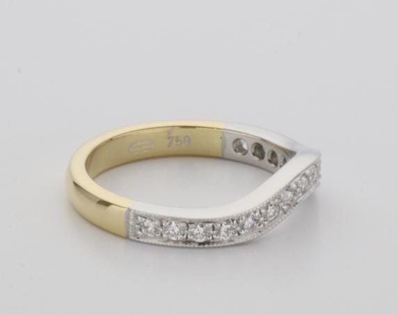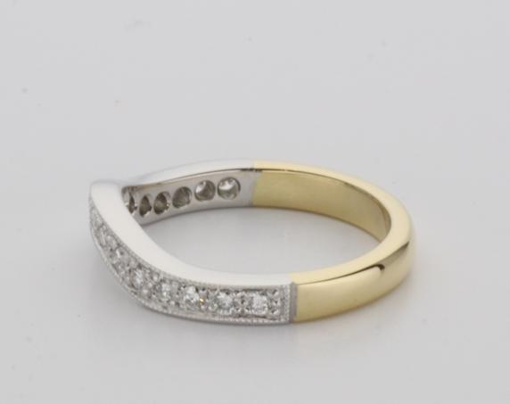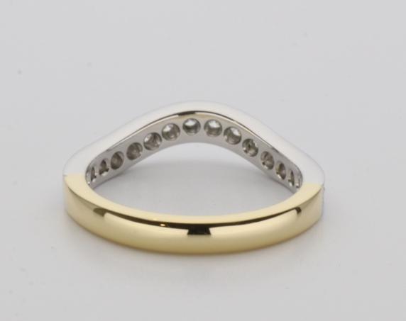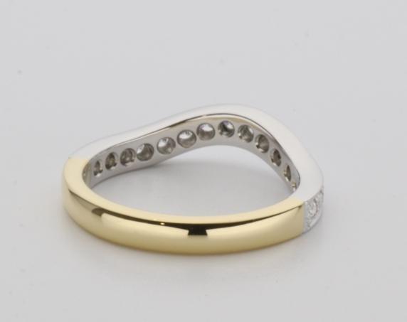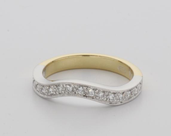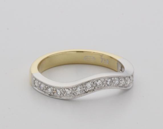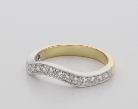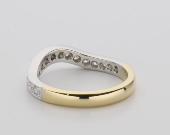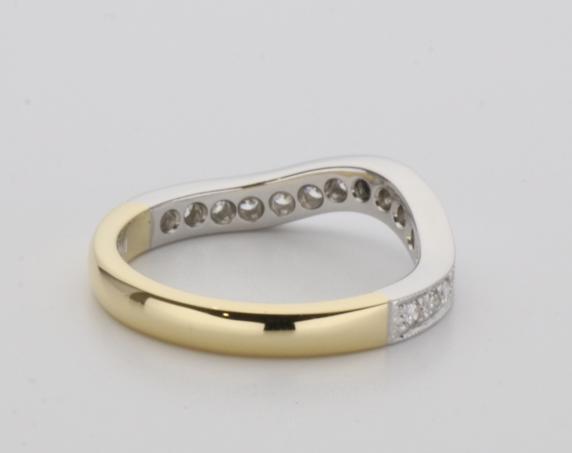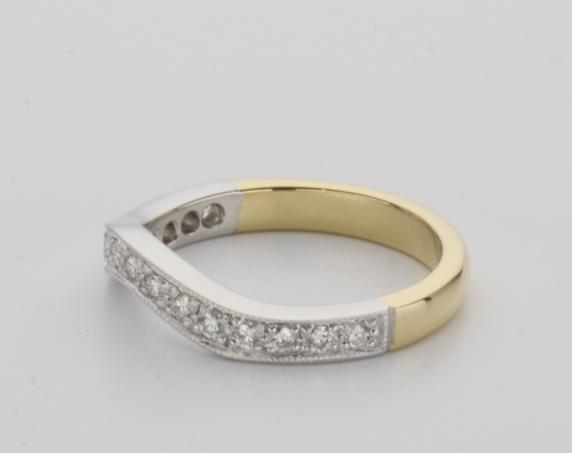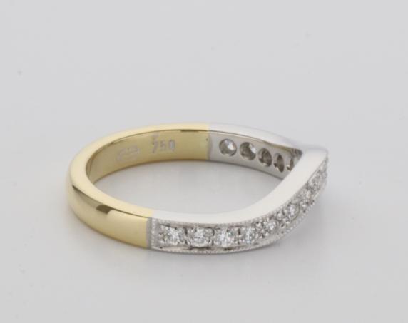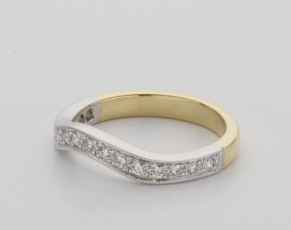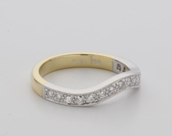 18ct two tone gold hand made fitted ladies wedding ring