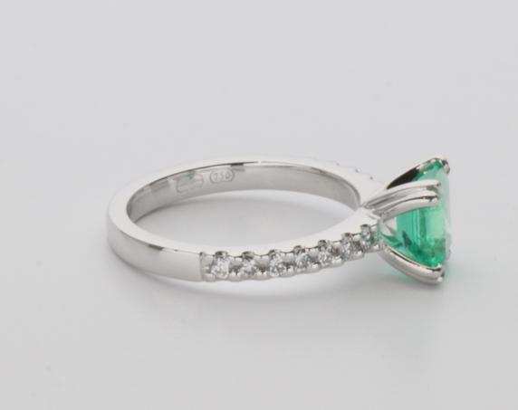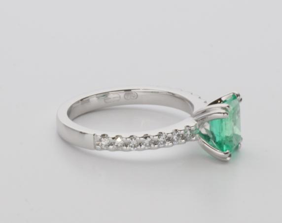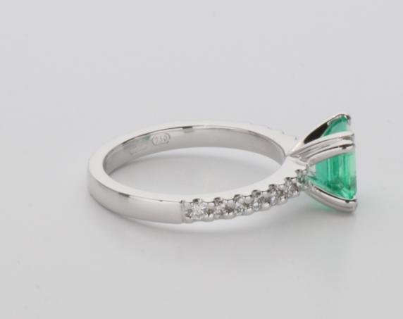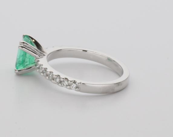 18ct white gold, emerald and diamond handmade ladies ring