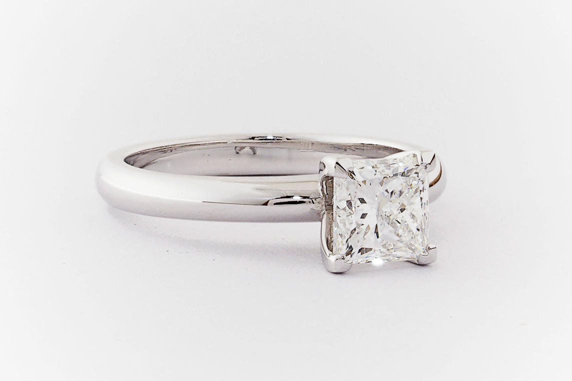 SKU: 21641 Category: Custom Engagement Rings Tags: 1.0ct, 4 claw, corner set, high dome, princess cut, solitaire