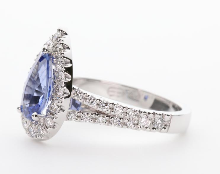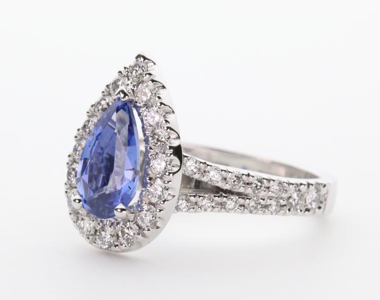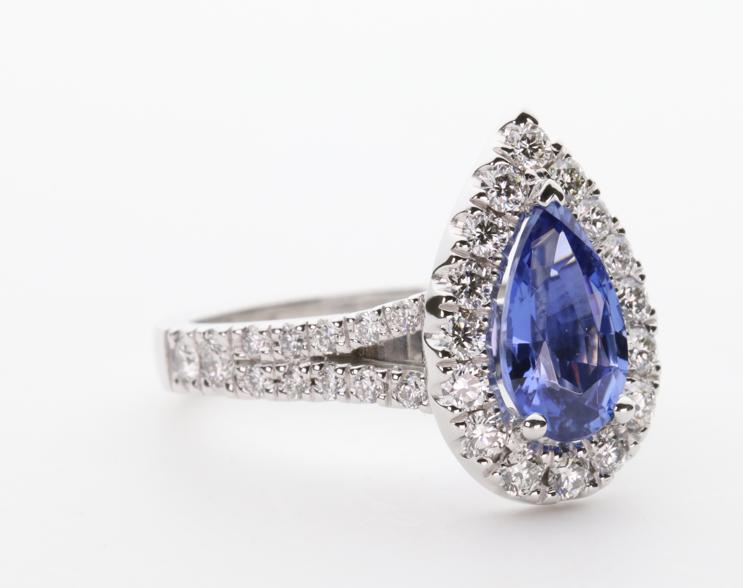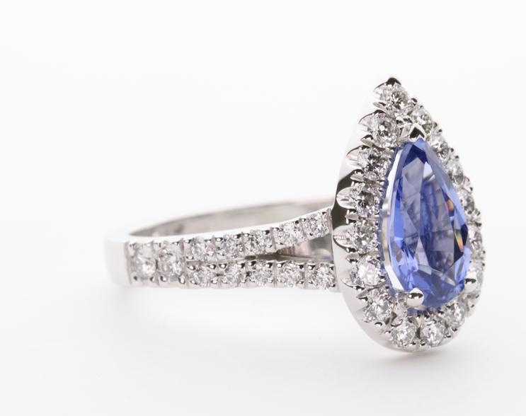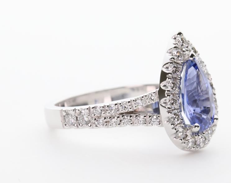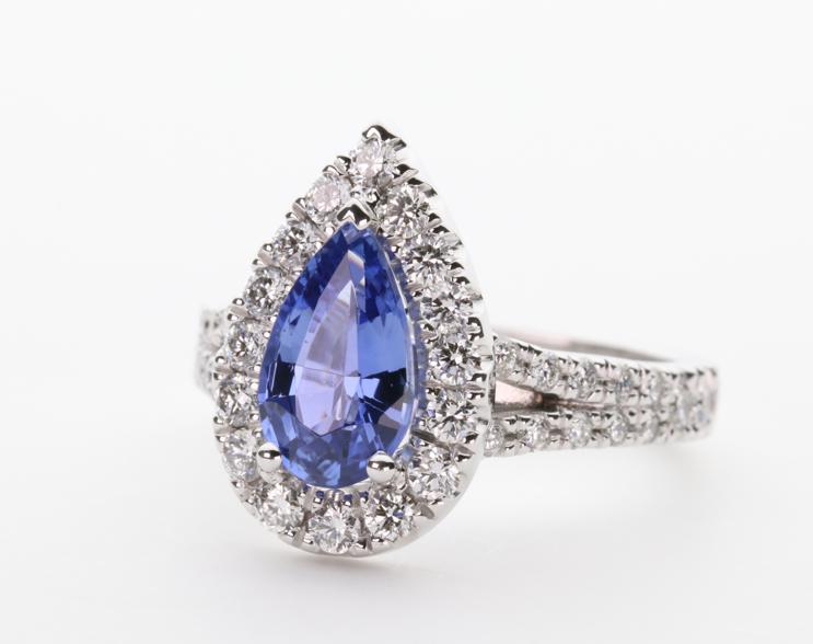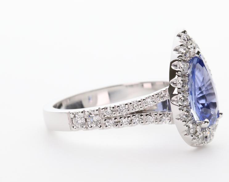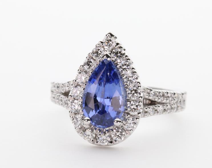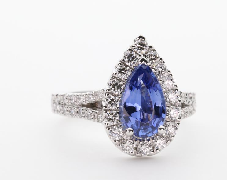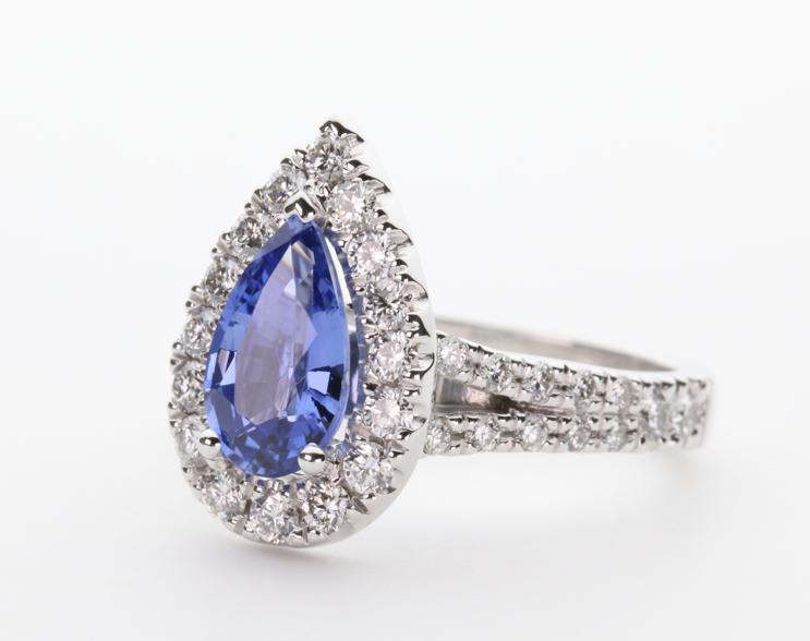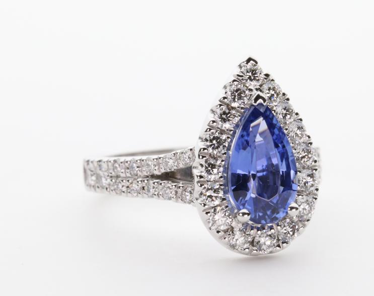 1.37ct pear cut Ceylon Sapphire in 3 claw setting