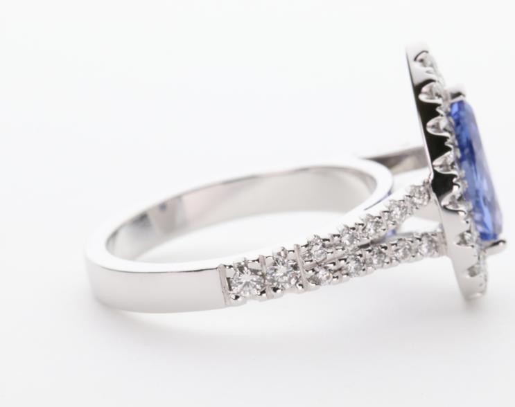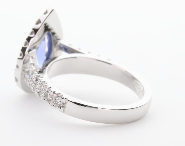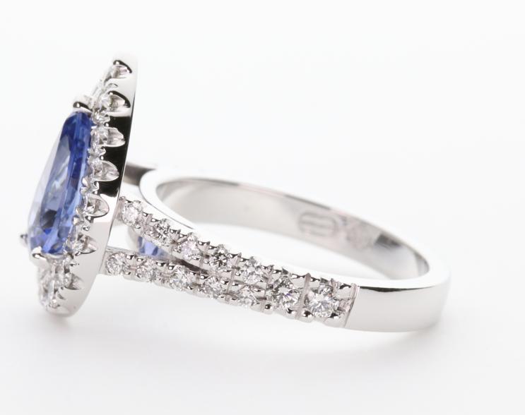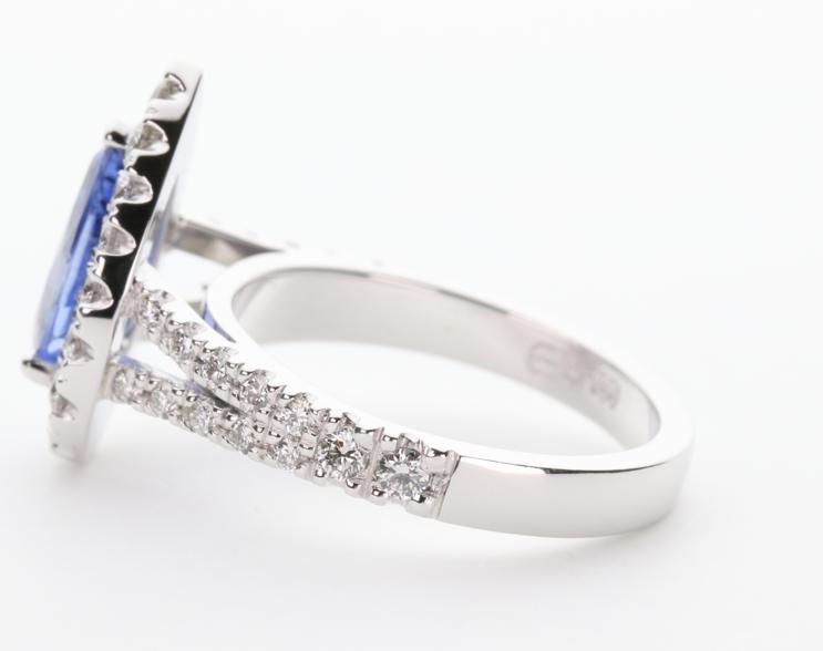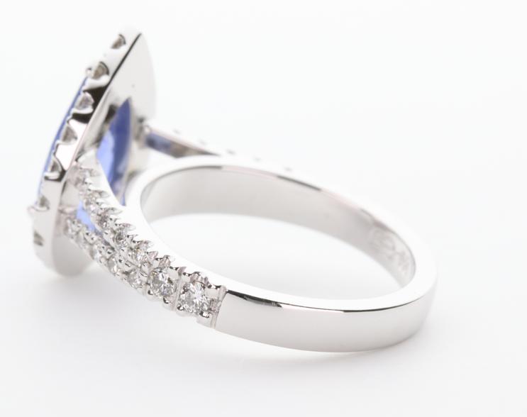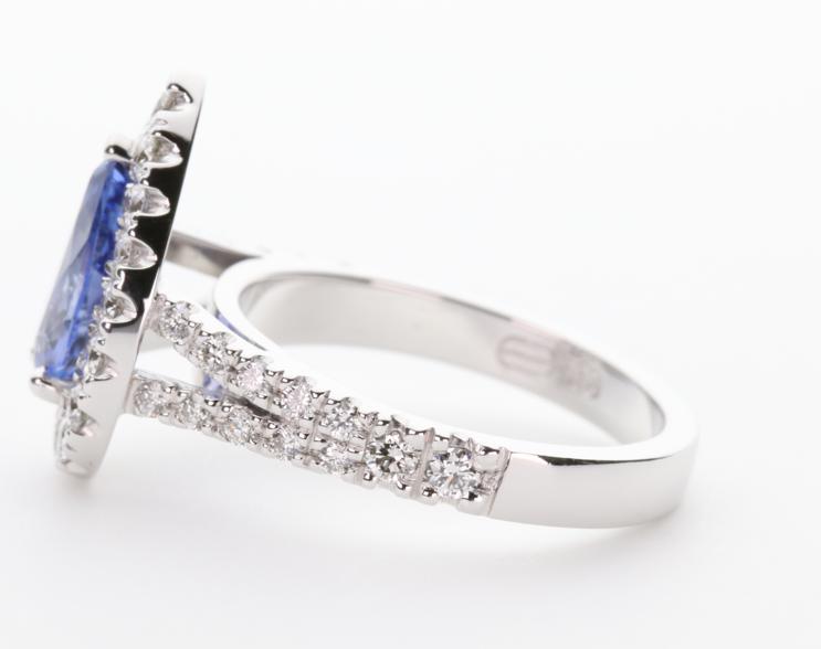 18ct white gold, sapphire and diamond handmade ladies engagement ring