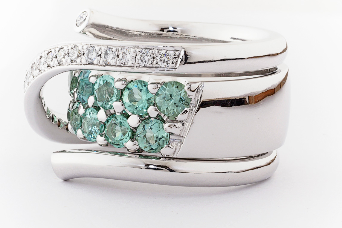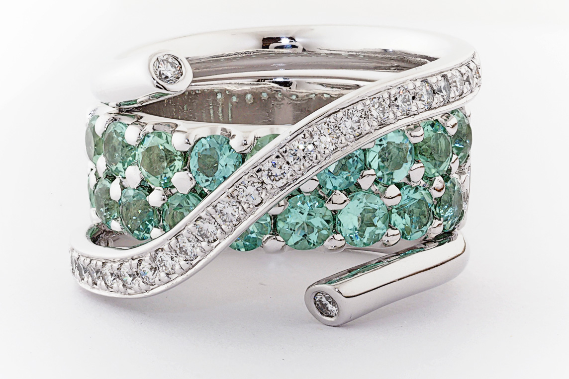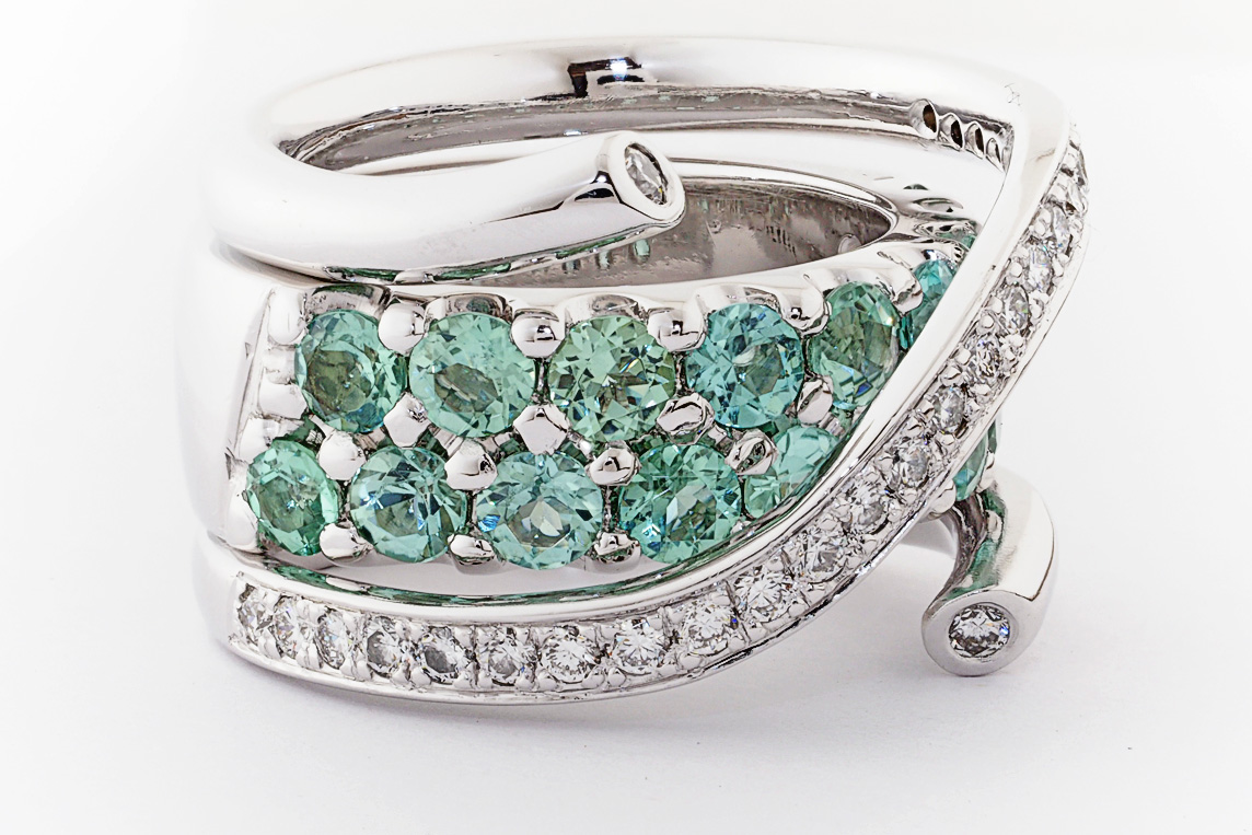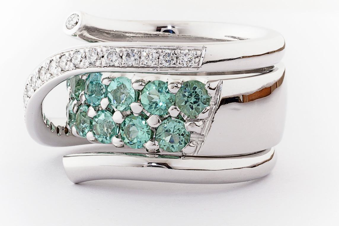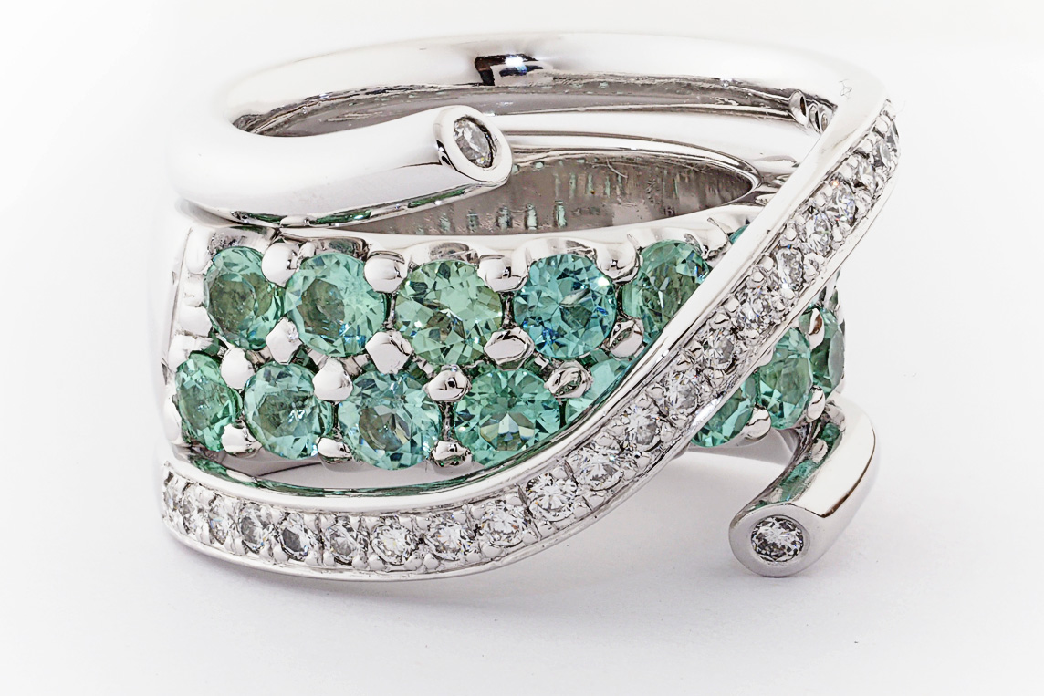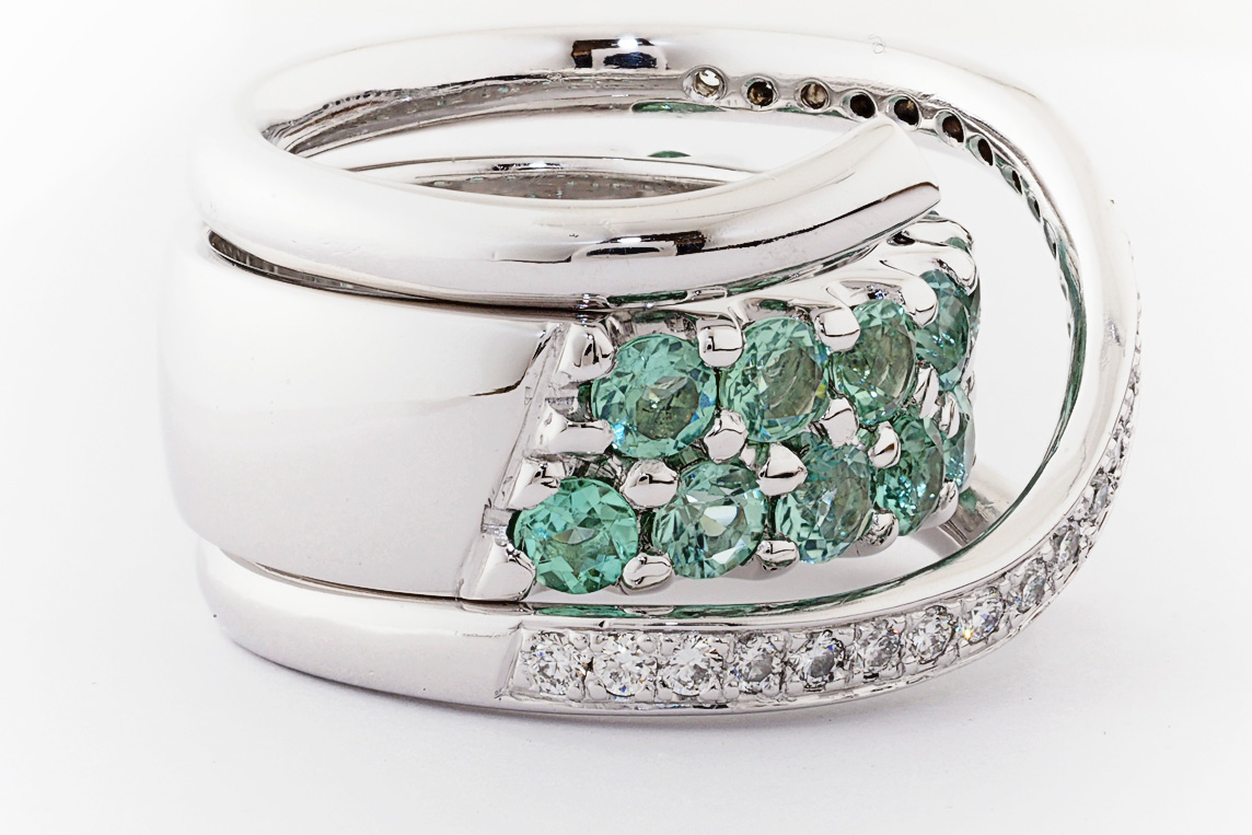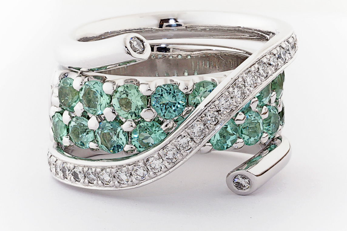 18ct white gold, tourmaline and diamond handmade ladies ring