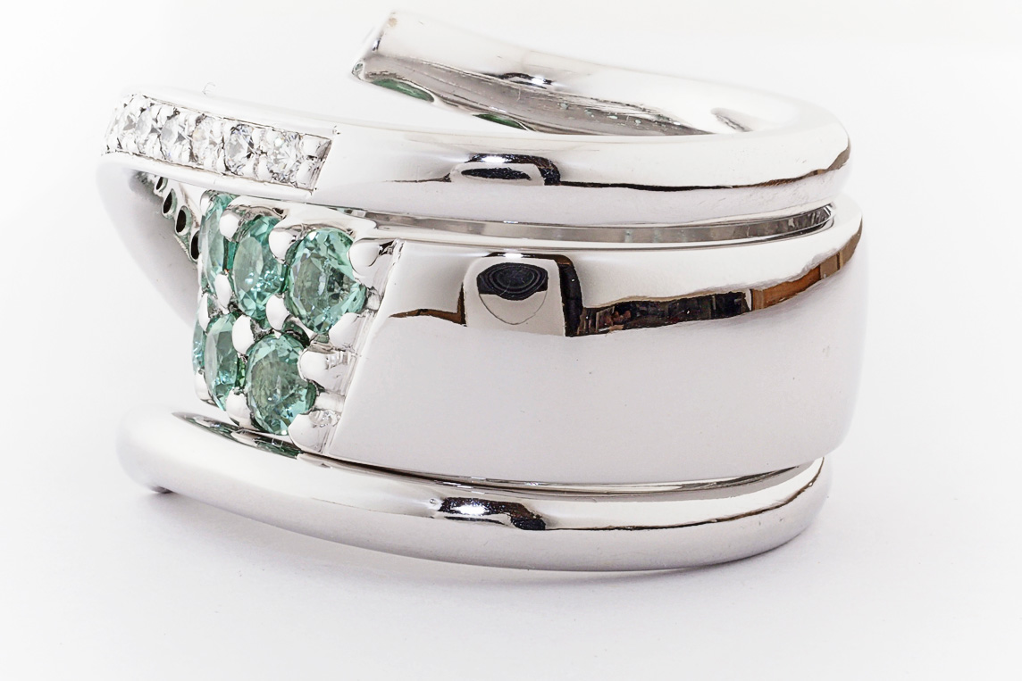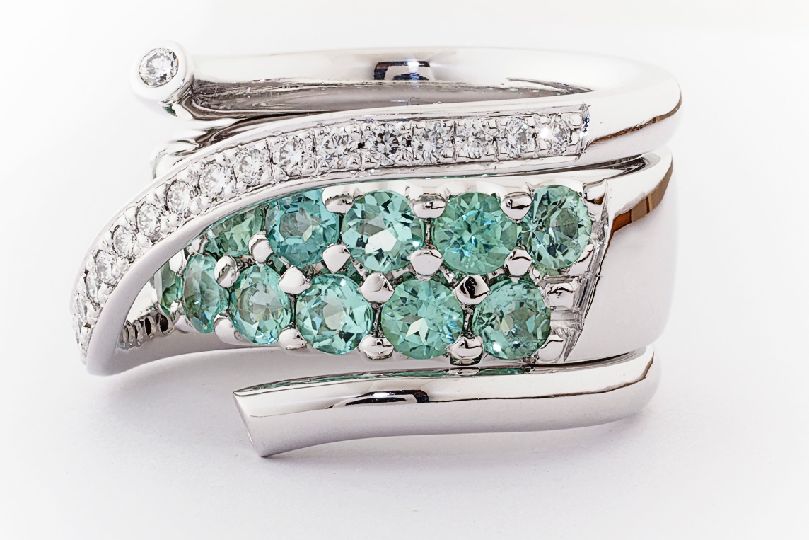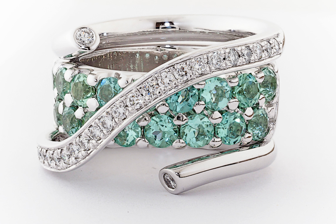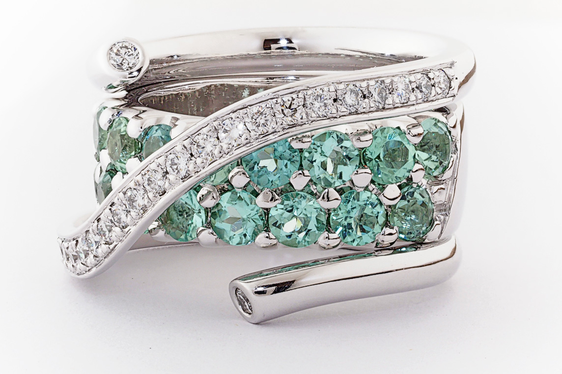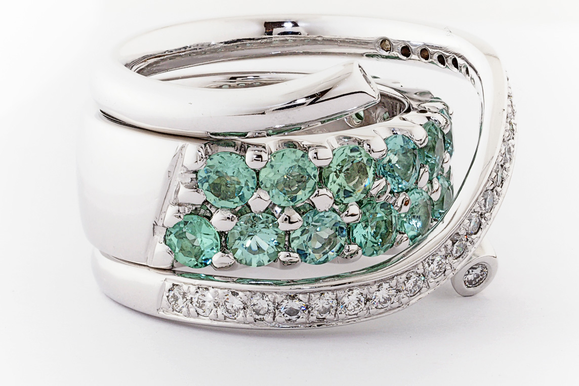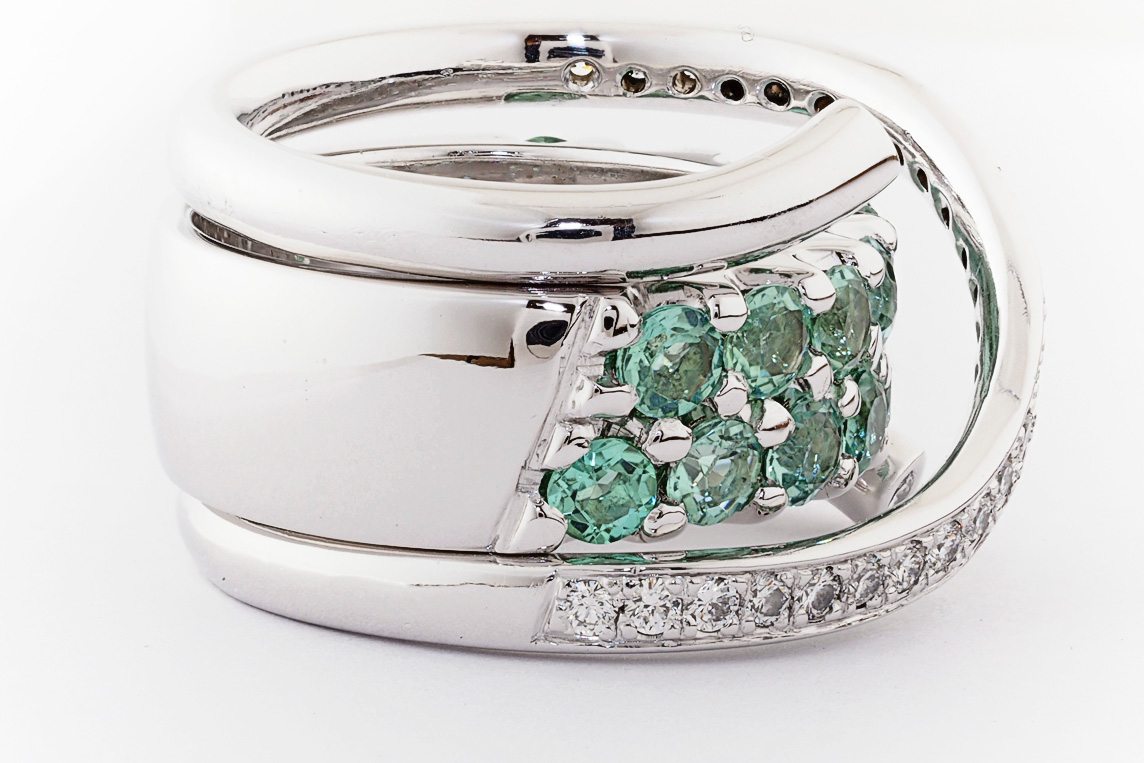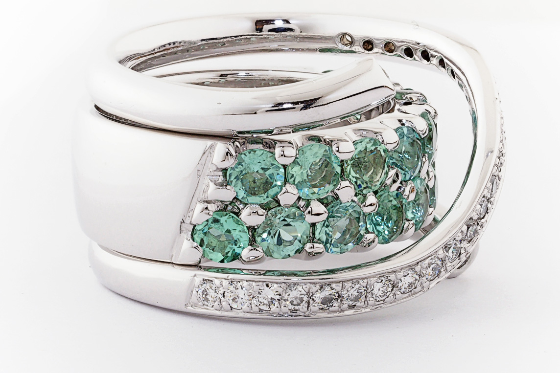 18ct white gold, tourmaline and diamond handmade ladies ring