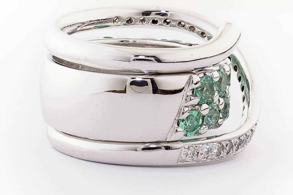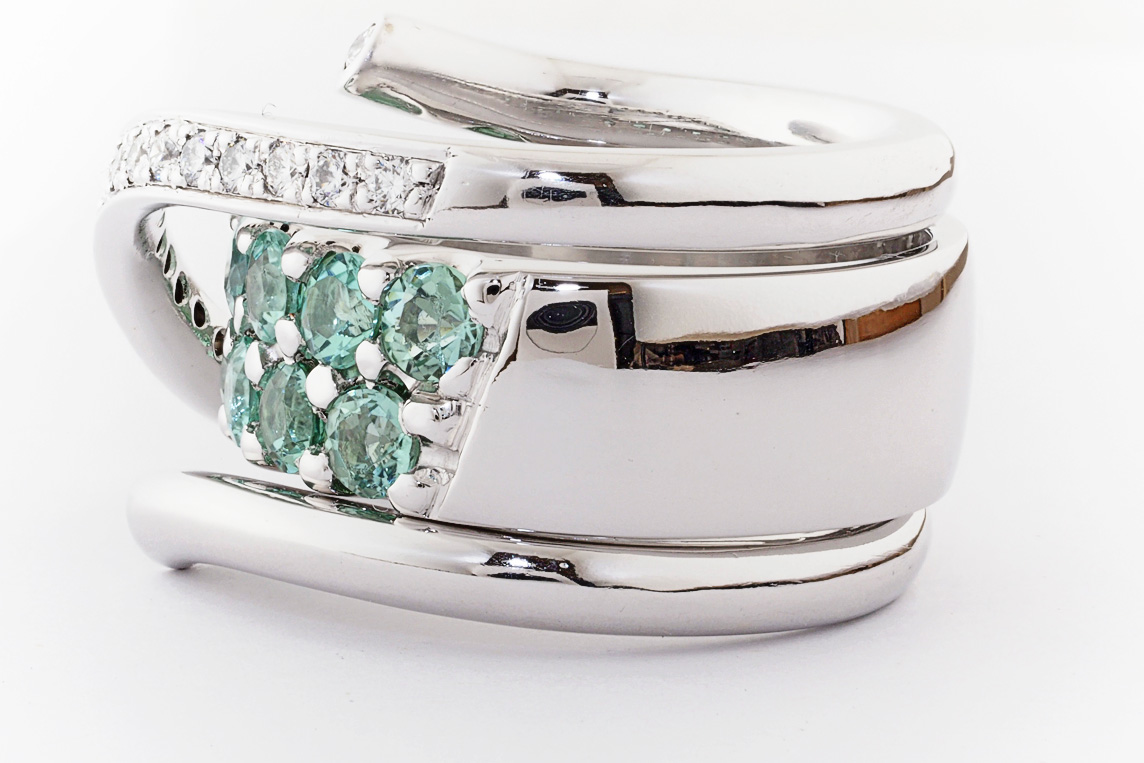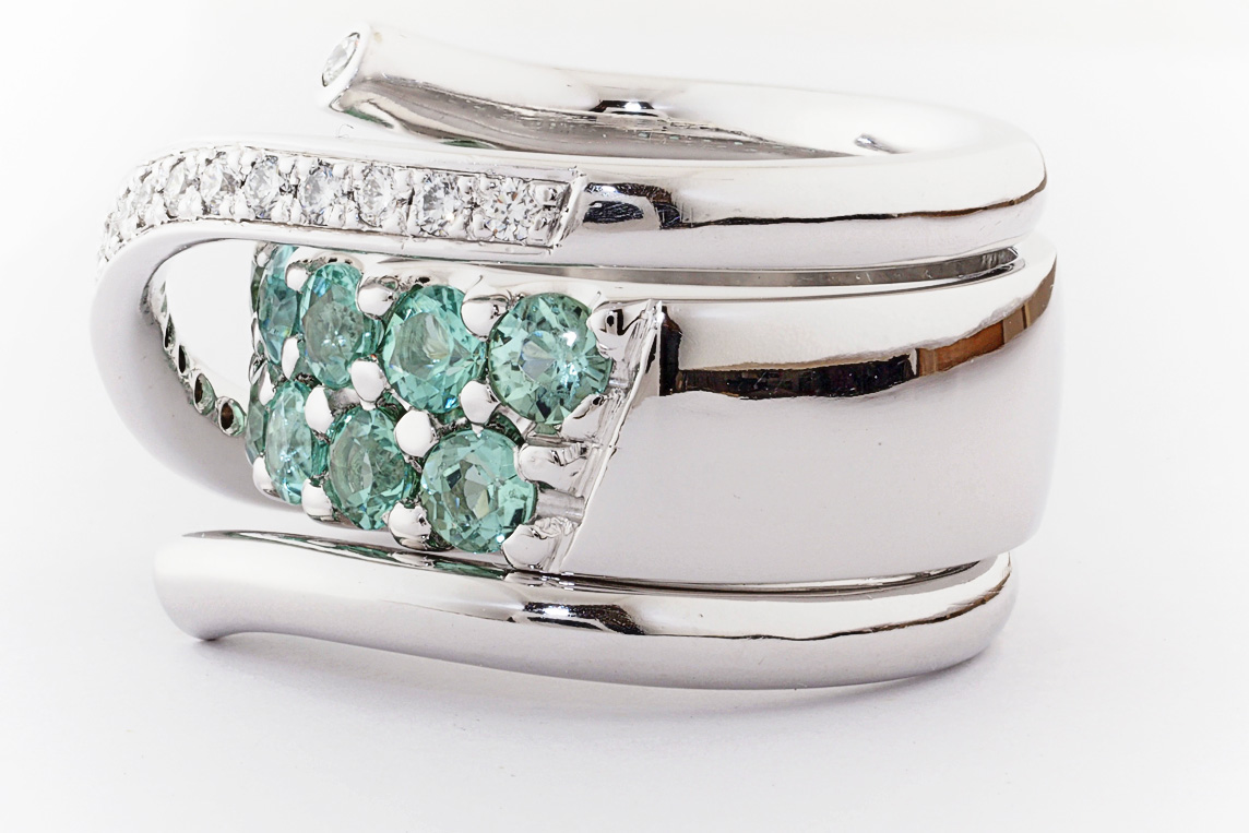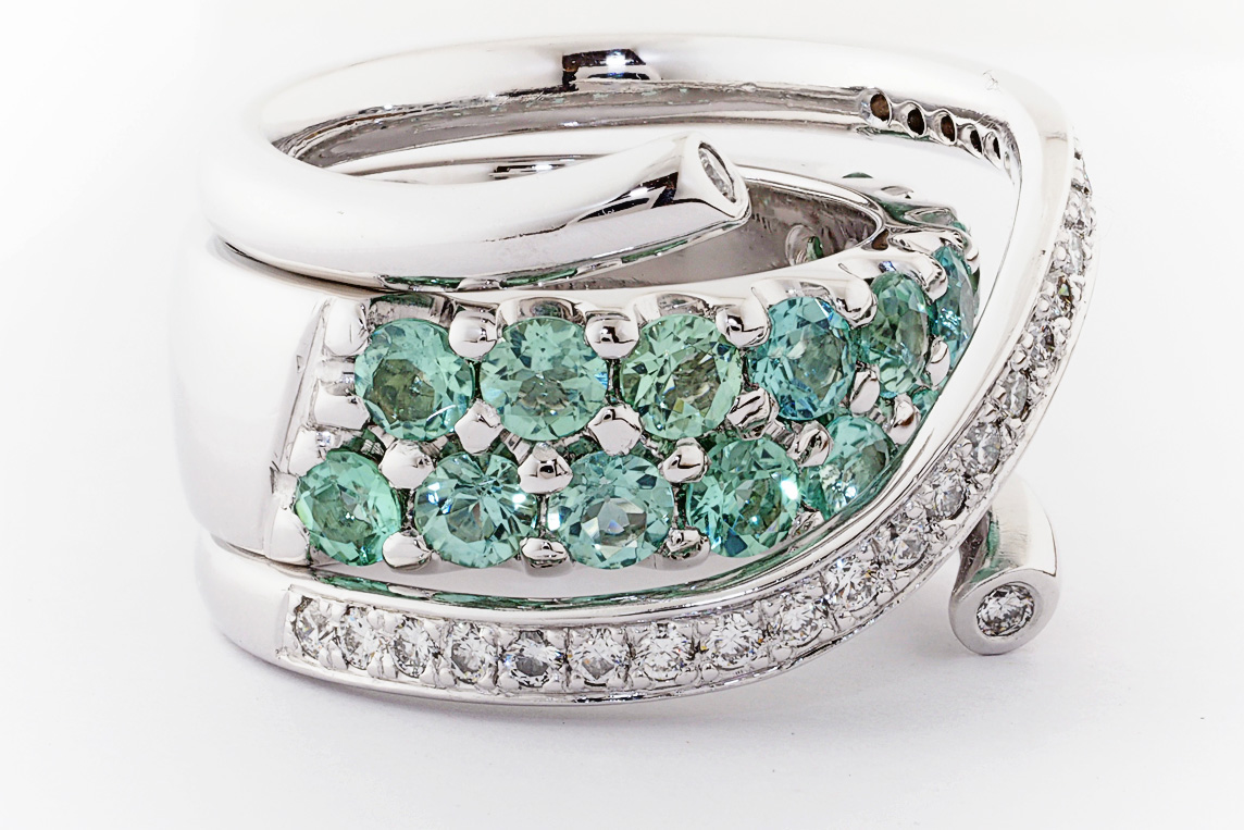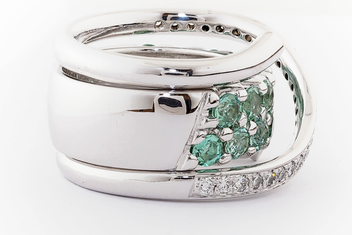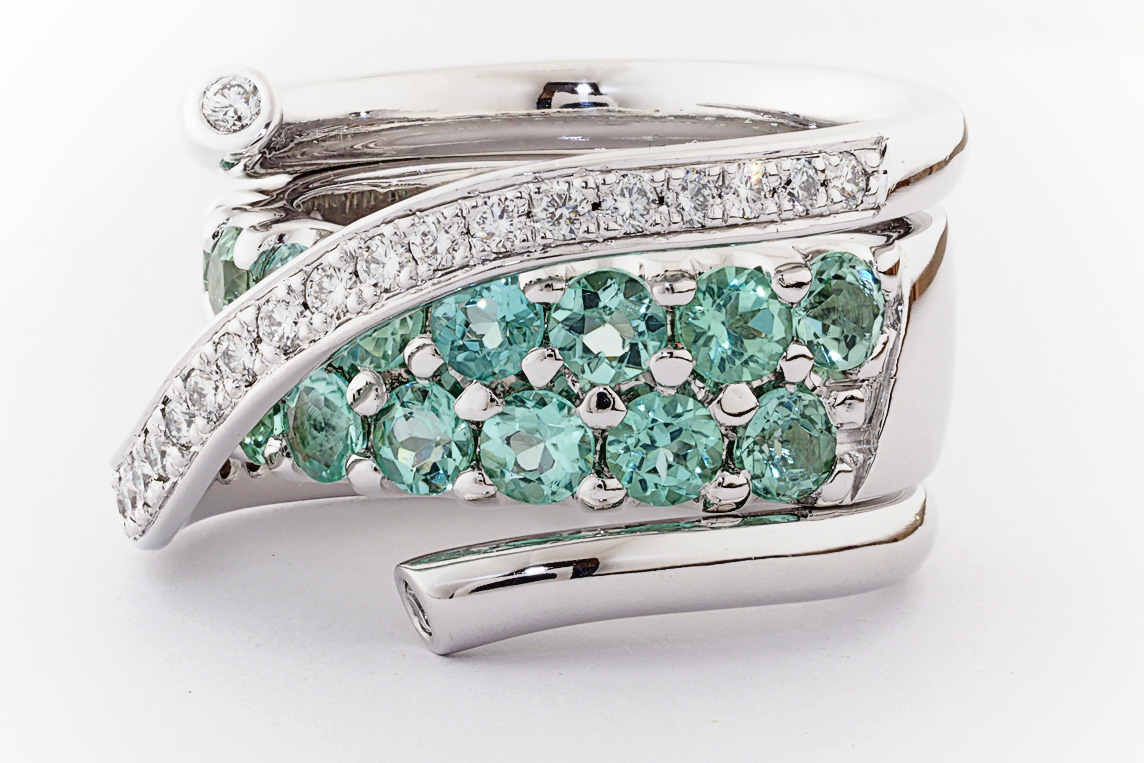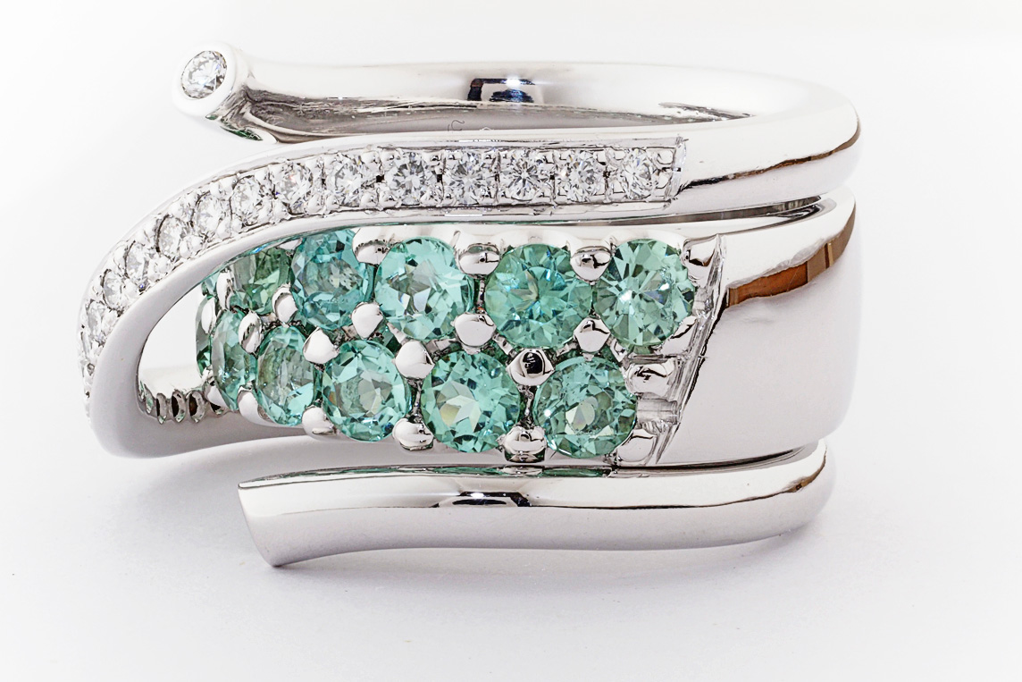 18ct white gold, tourmaline and diamond handmade ladies ring