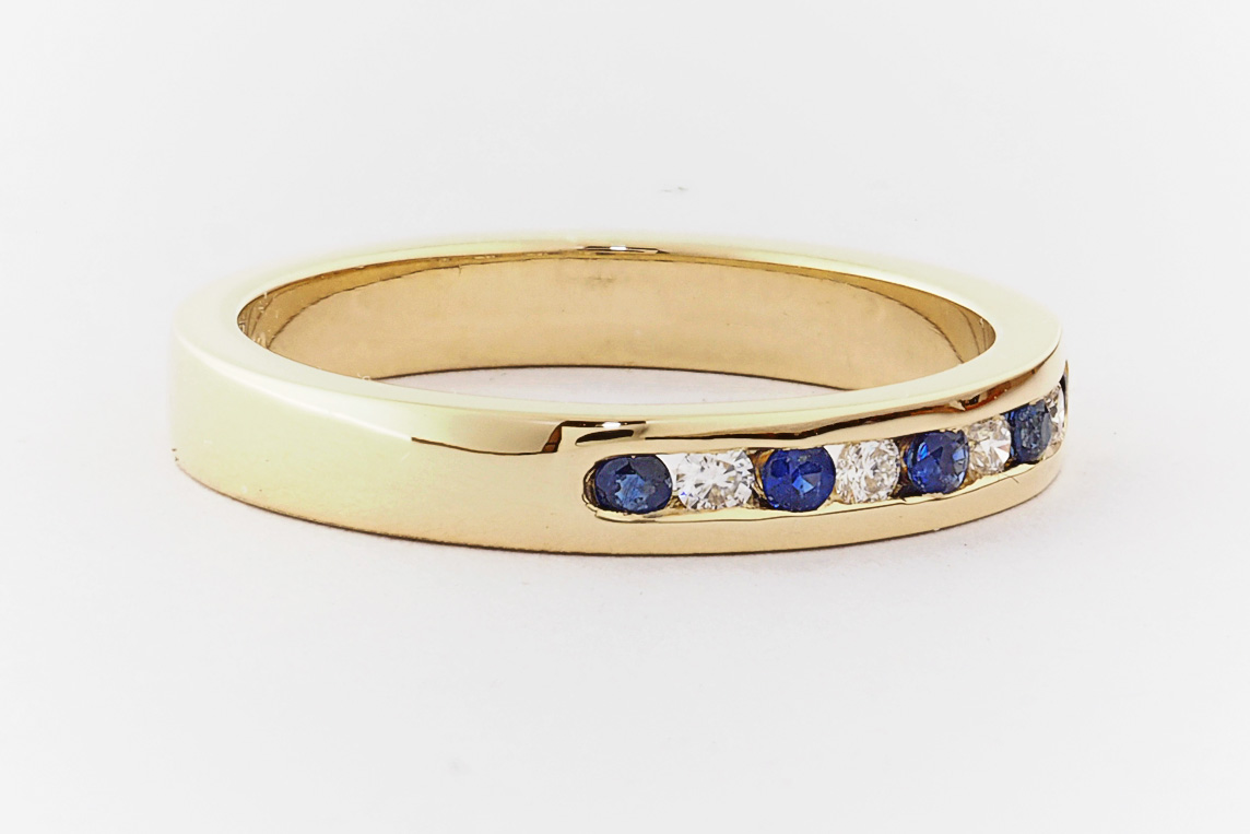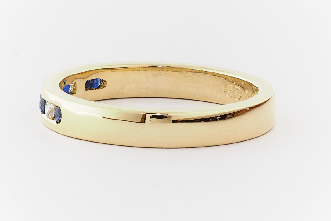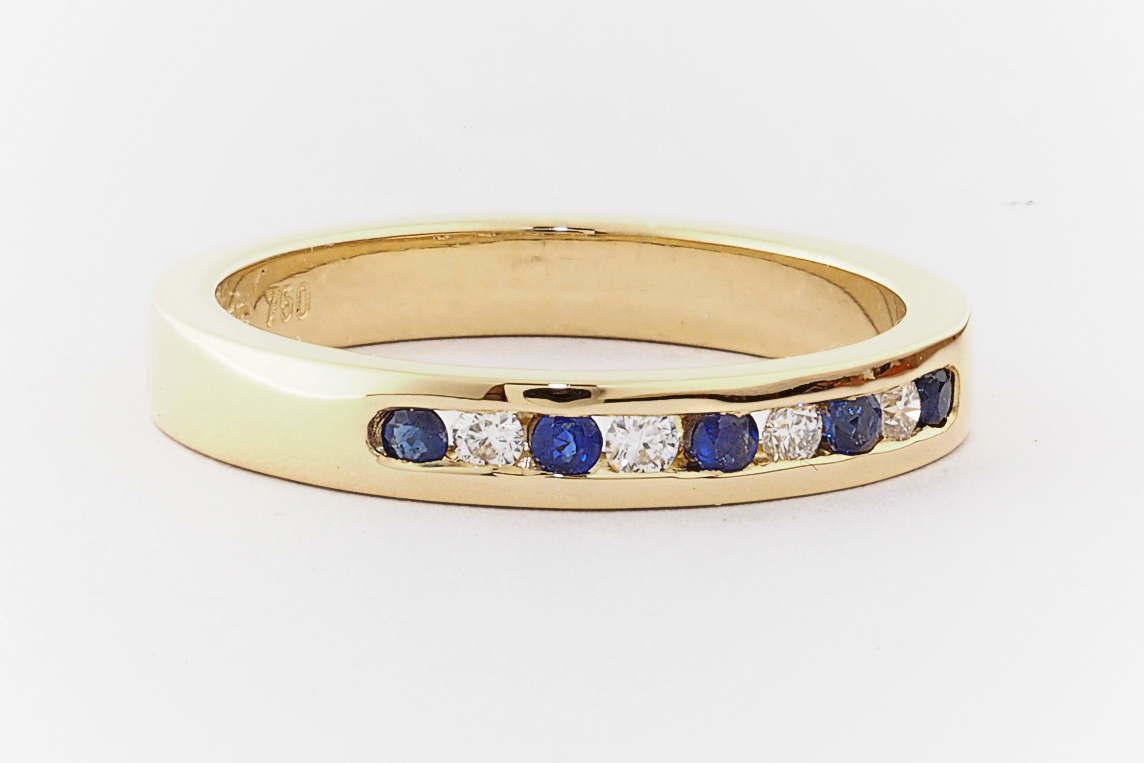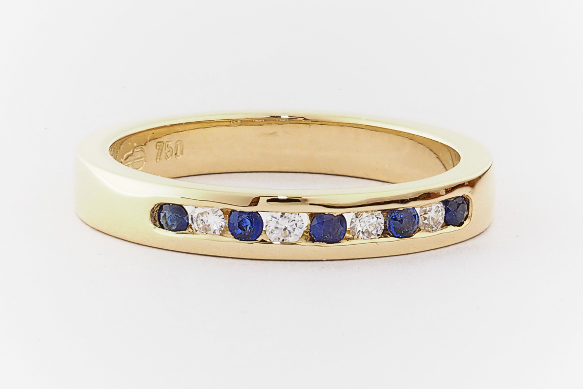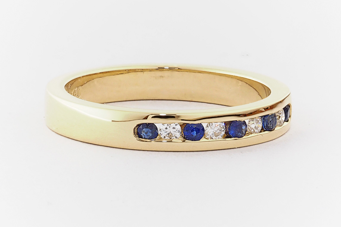 18ct yellow gold, diamond and gemstone handmade ladies eternity ring