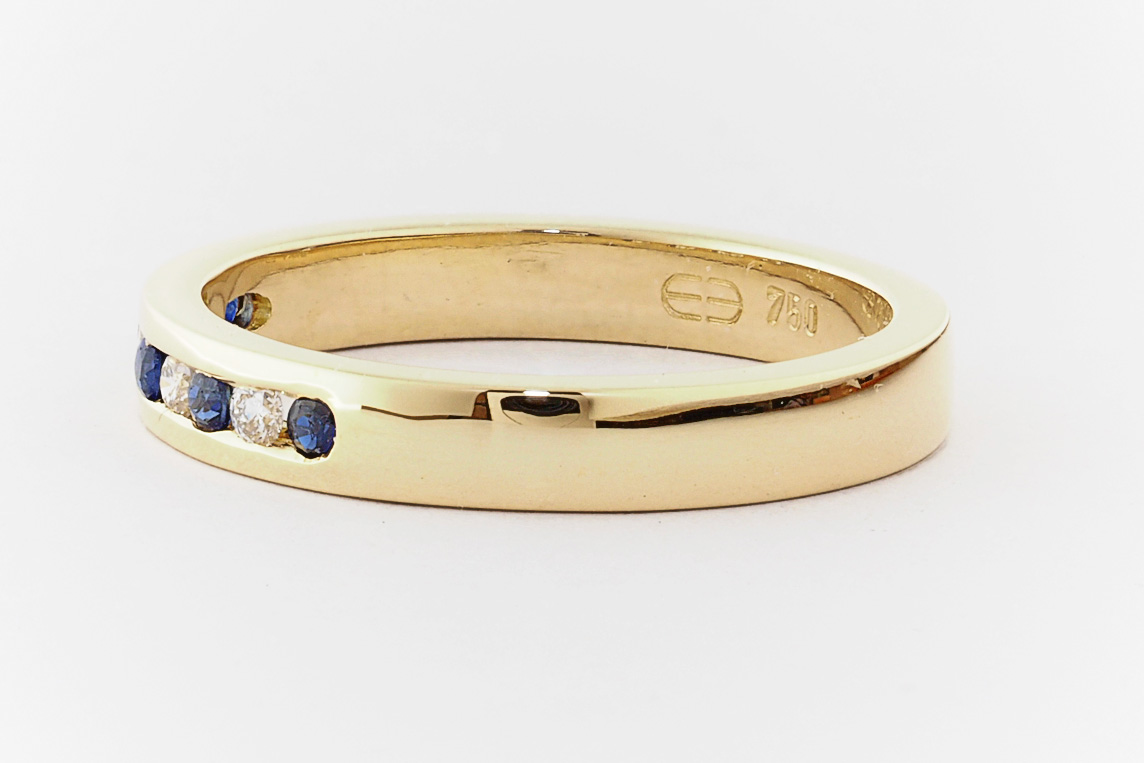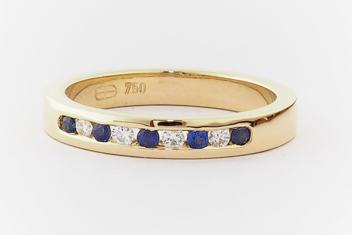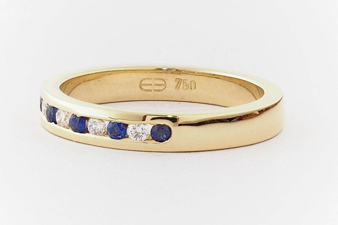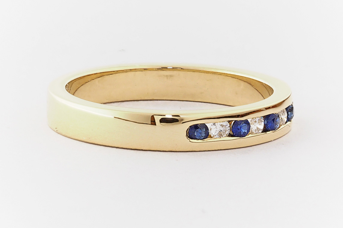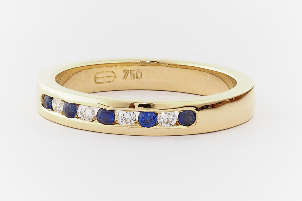 18ct yellow gold, diamond and gemstone handmade ladies eternity ring