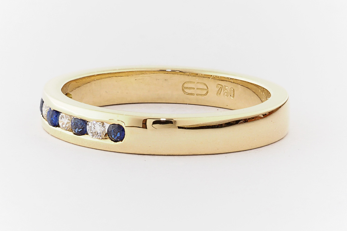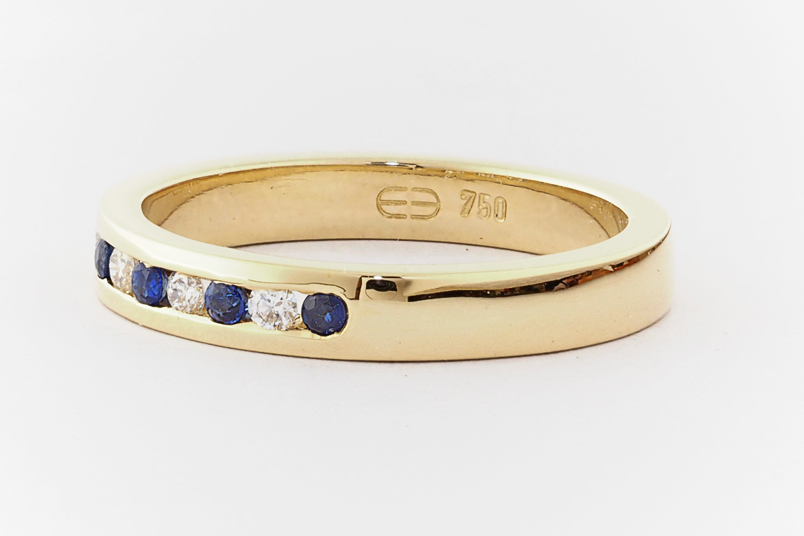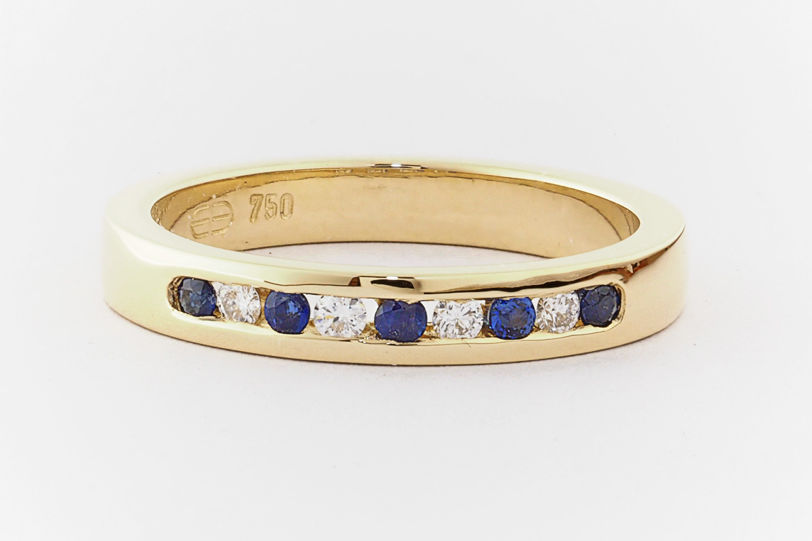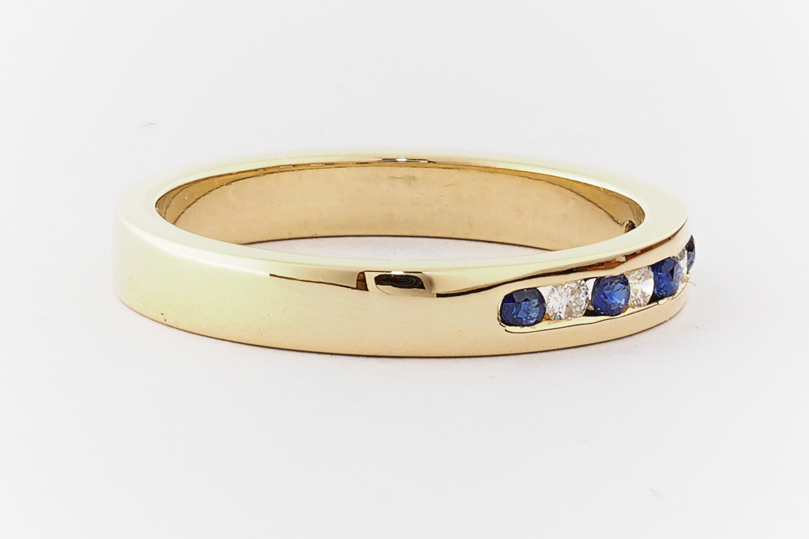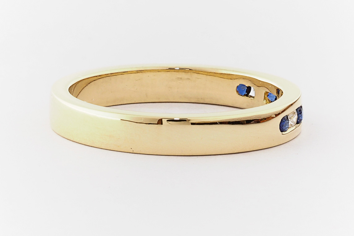 18ct yellow gold, diamond and gemstone handmade ladies eternity ring