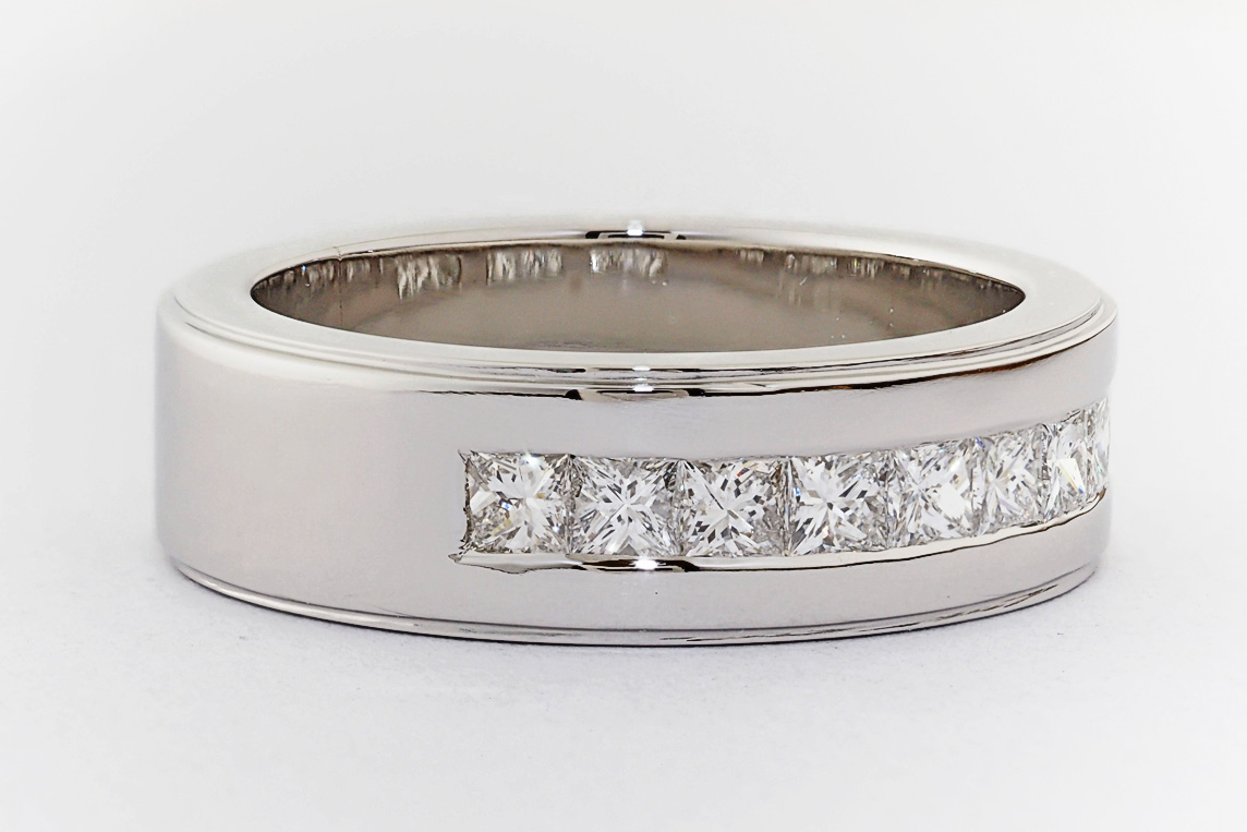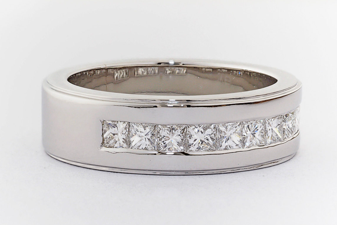 Men’s platinum channel set wedding ring