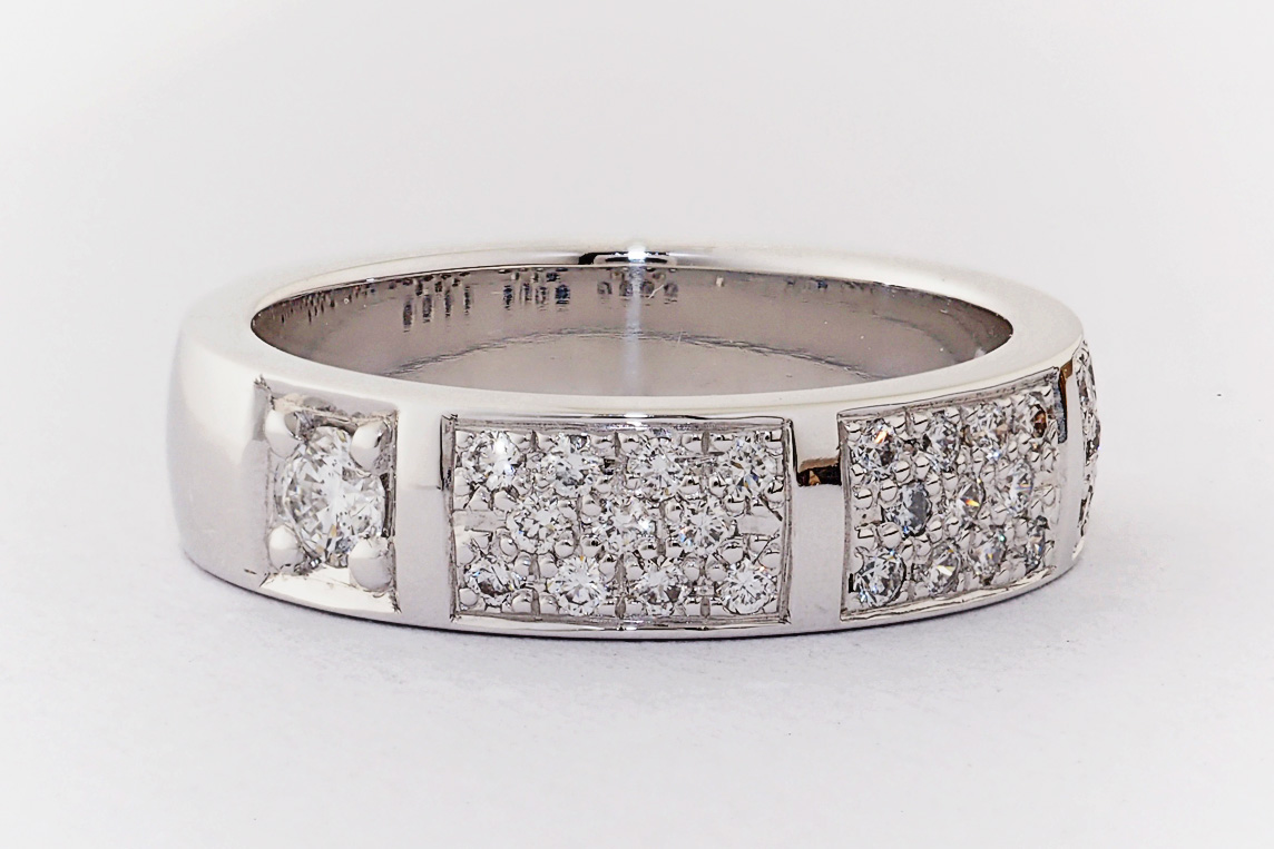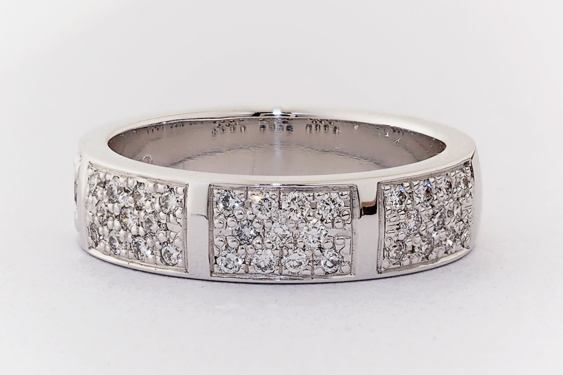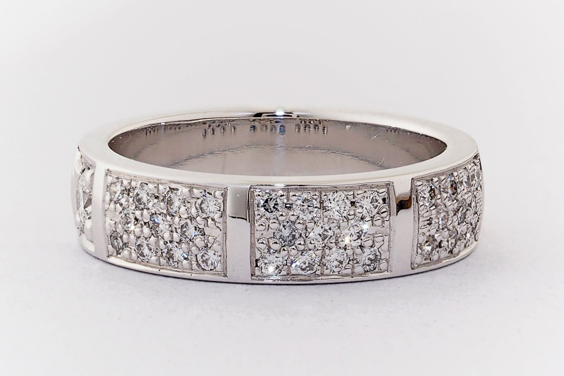 18ct white gold handmade diamond ladies pavé set wedding ring