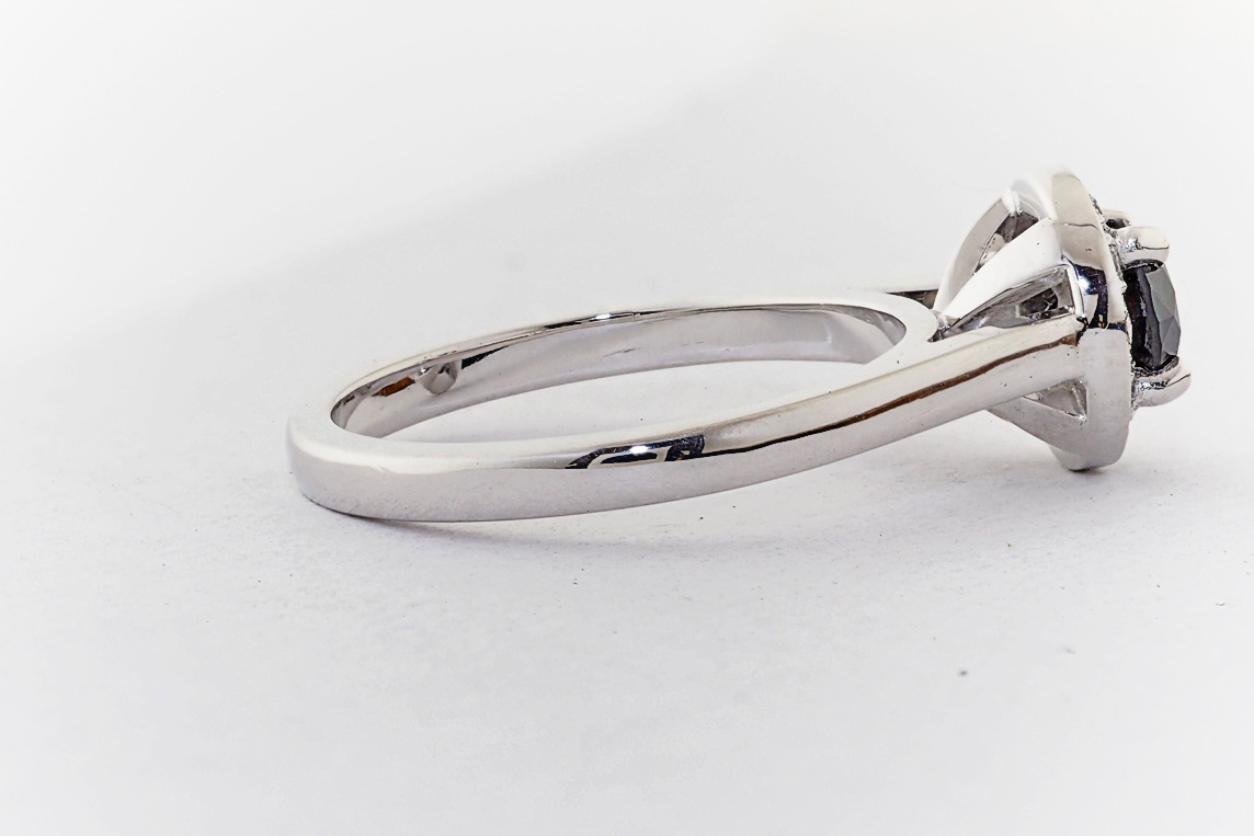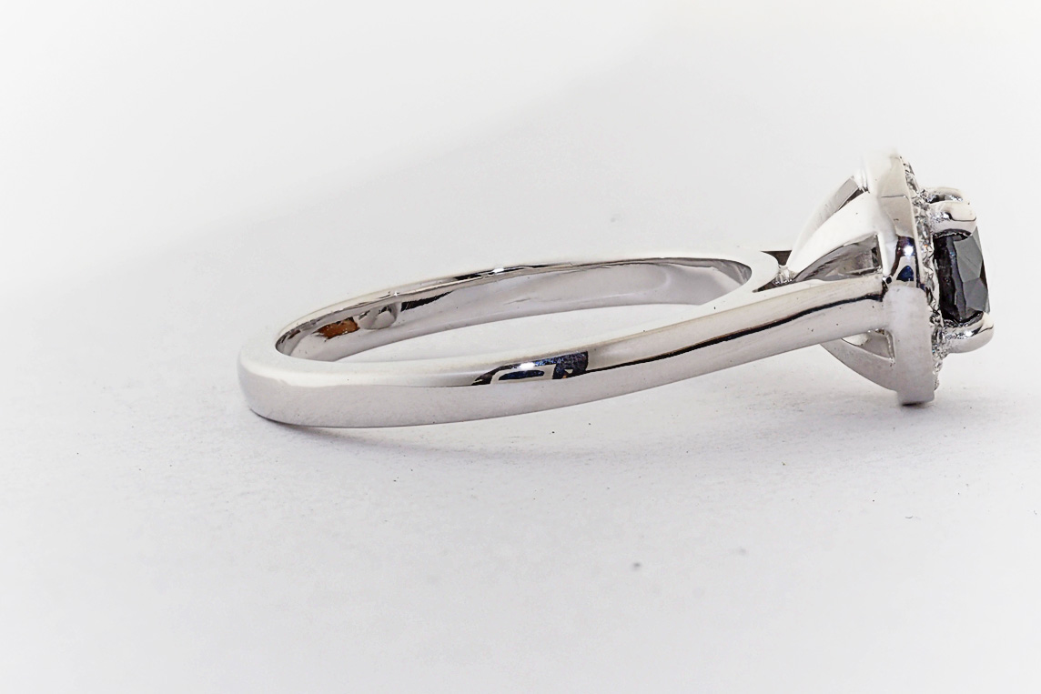 Oval Ceylon Sapphire and diamond halo engagement ring