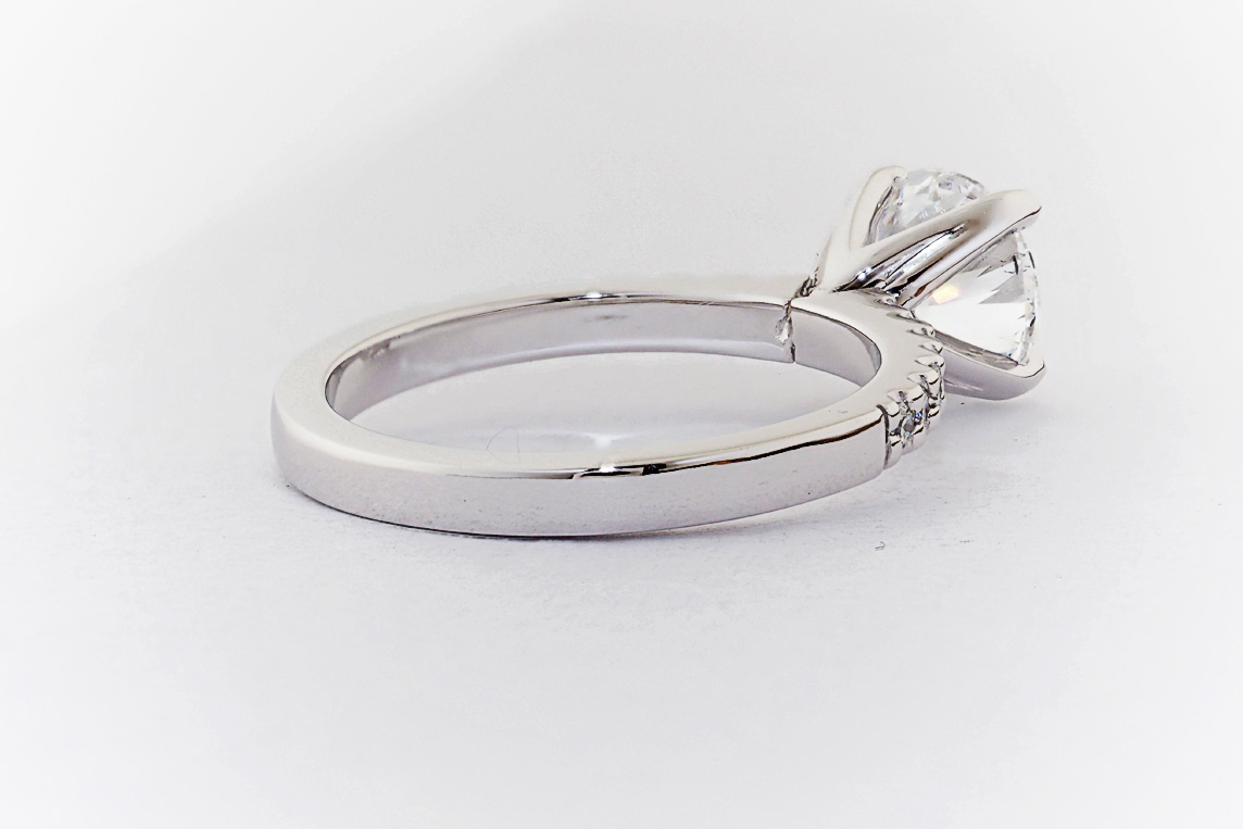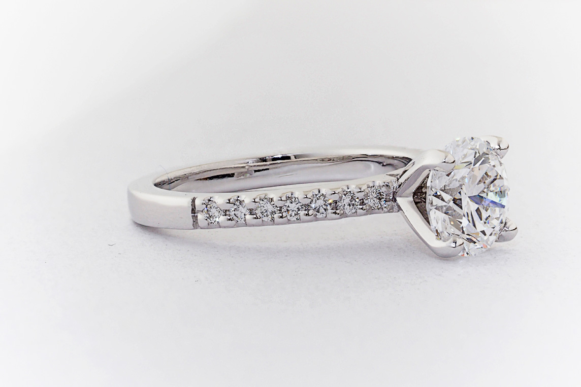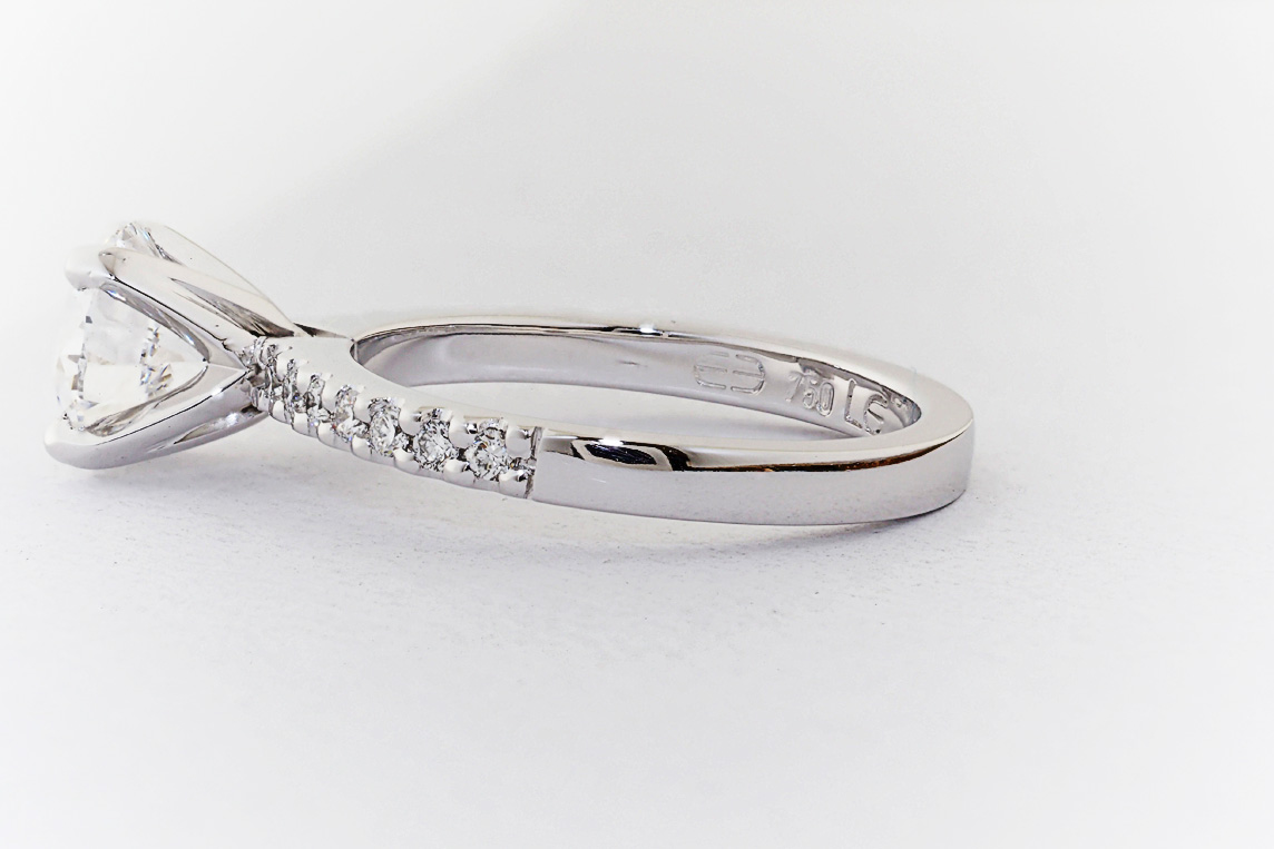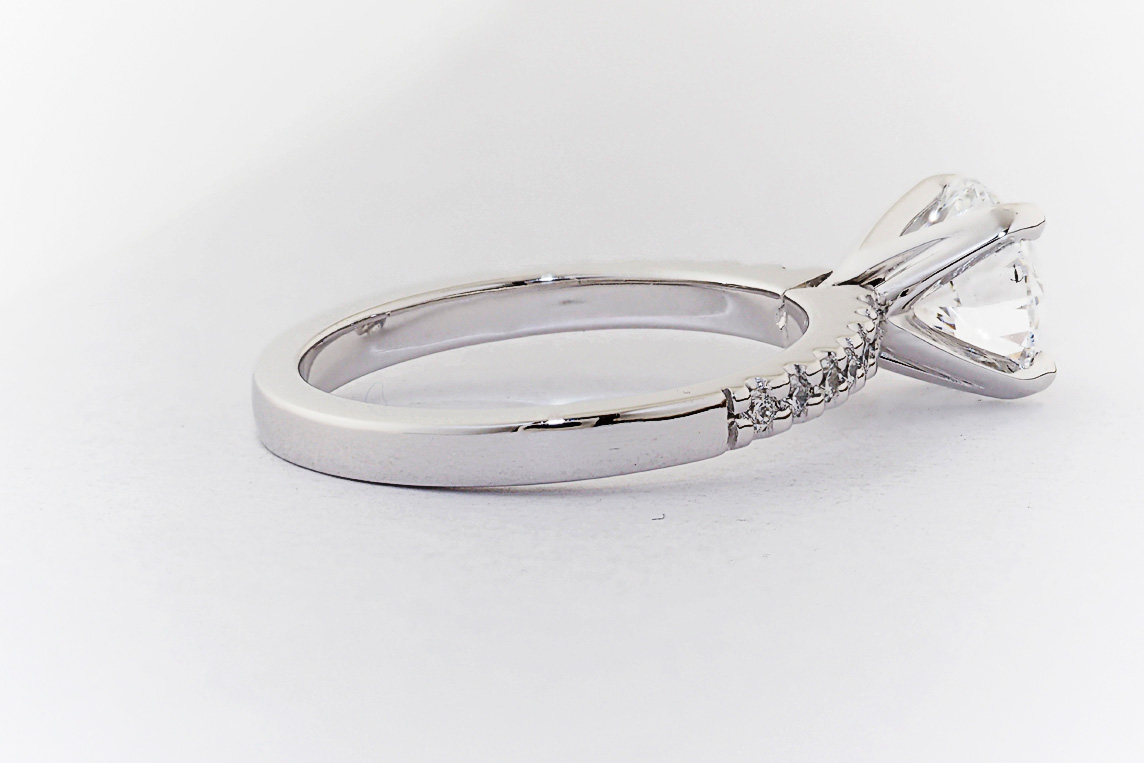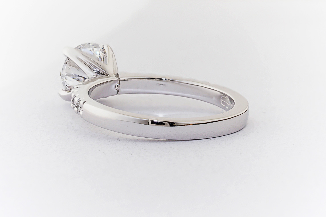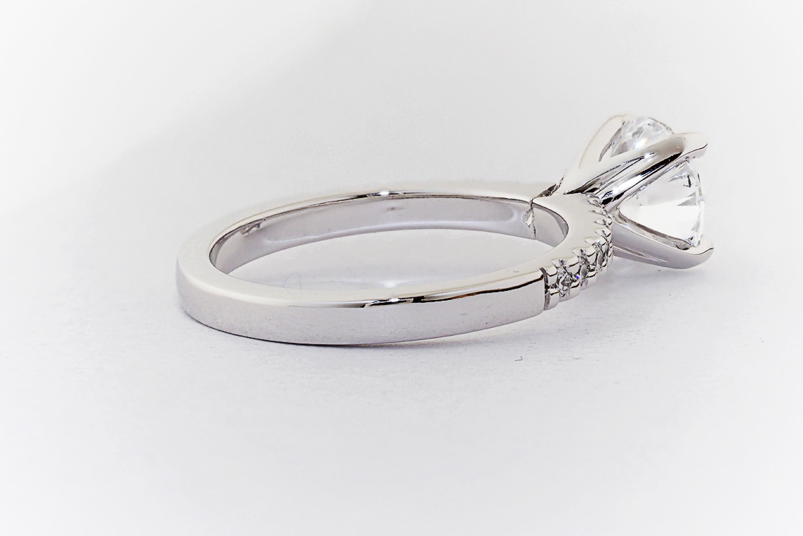 Yellow and white gold 6 claw engagement ring with tapered shoulders