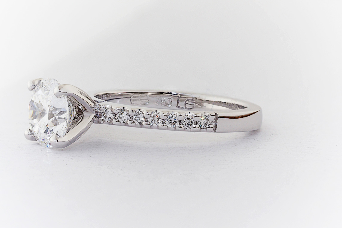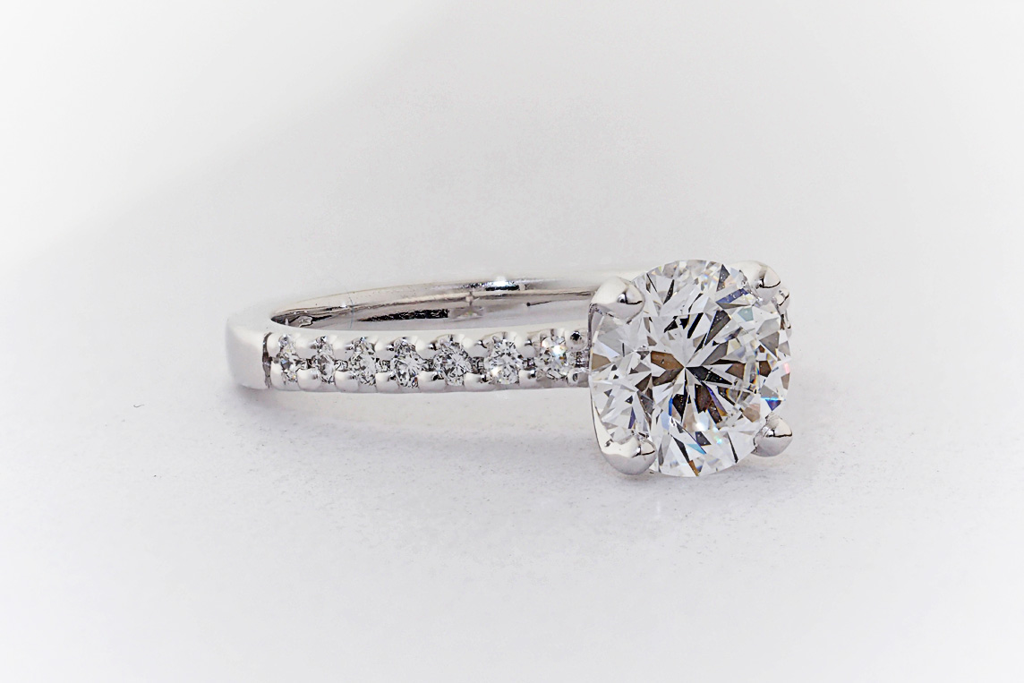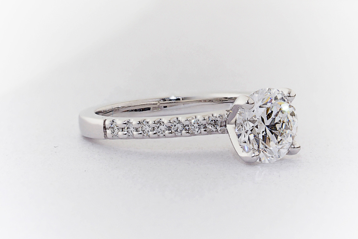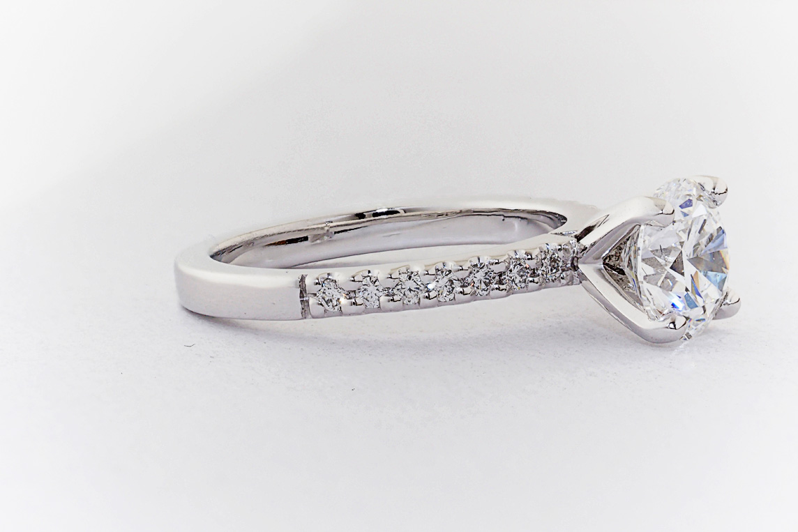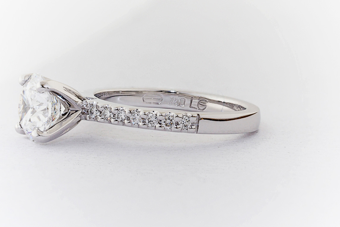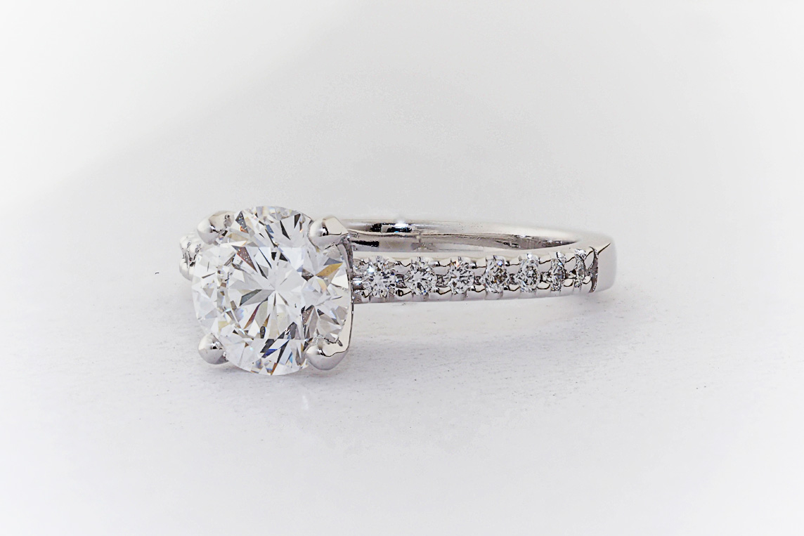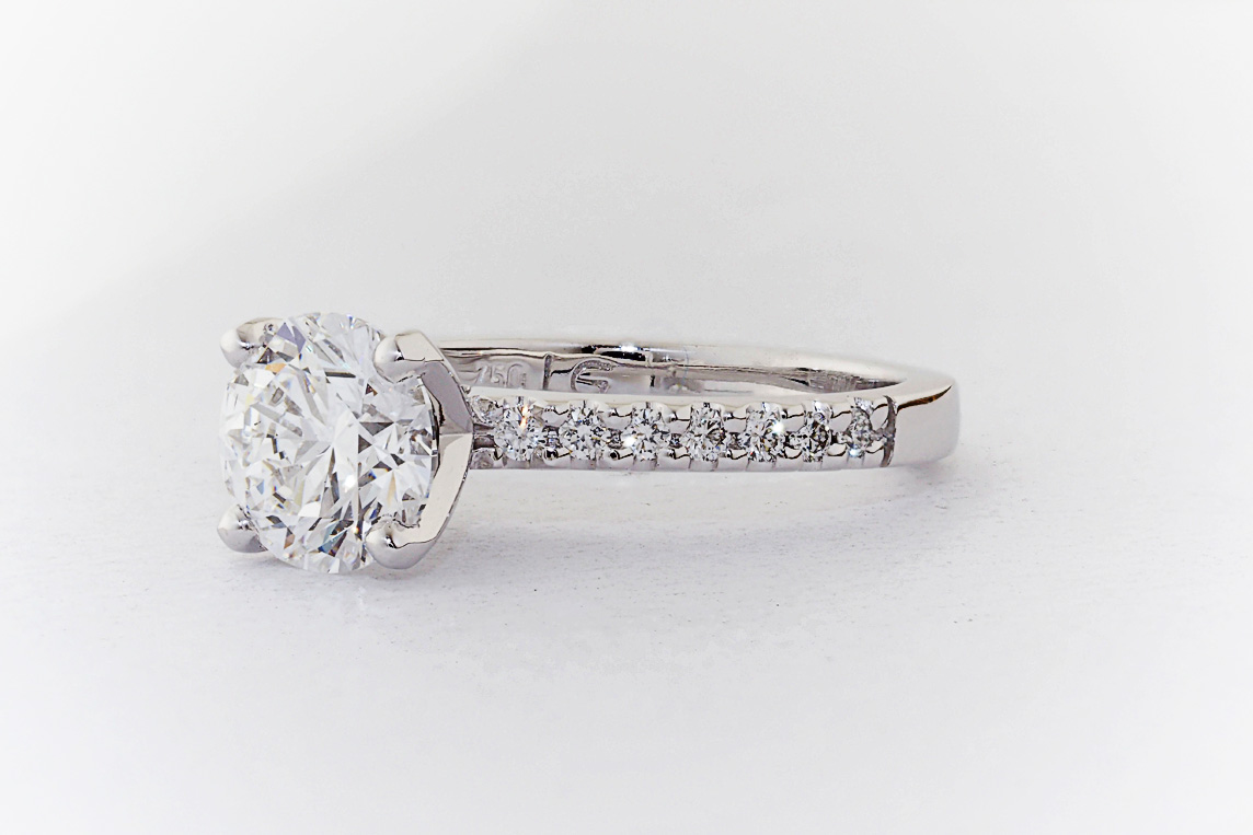 Yellow and white gold 6 claw engagement ring with tapered shoulders