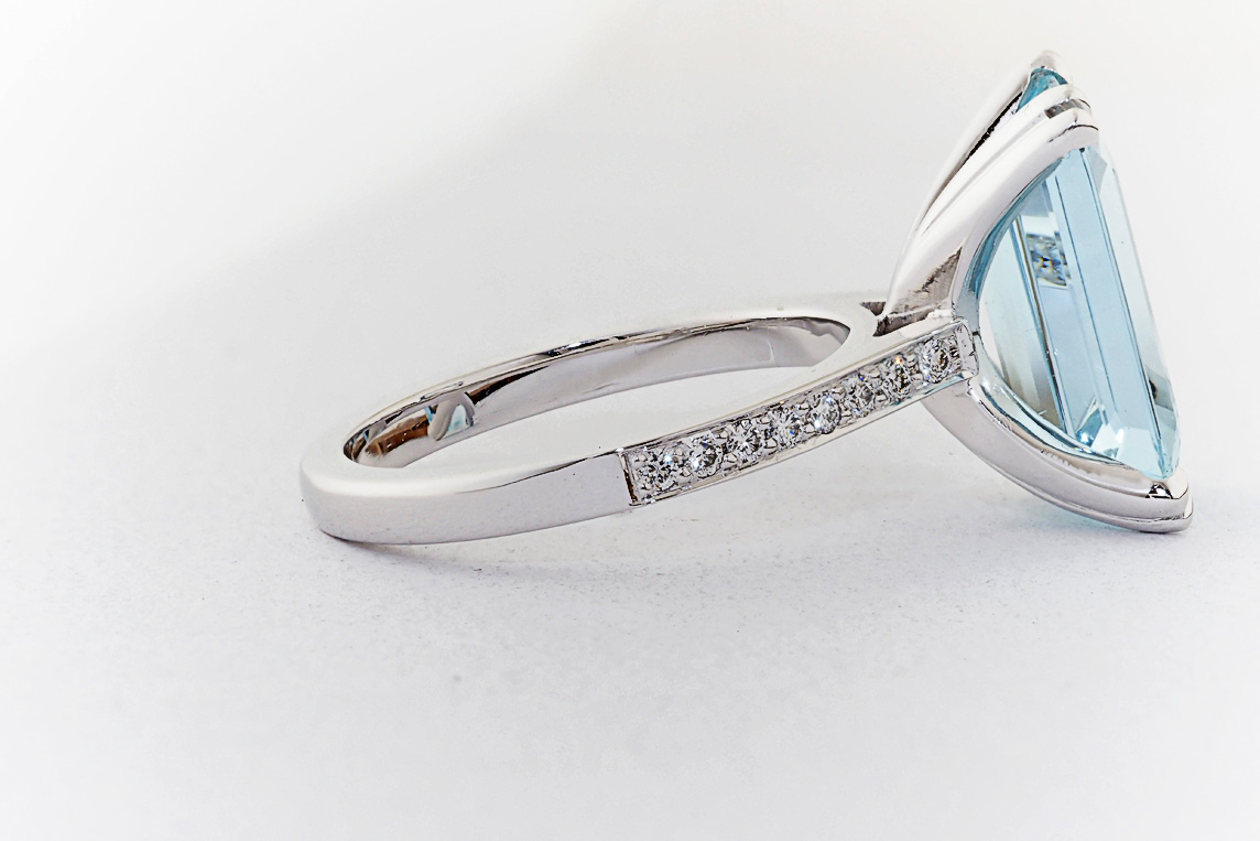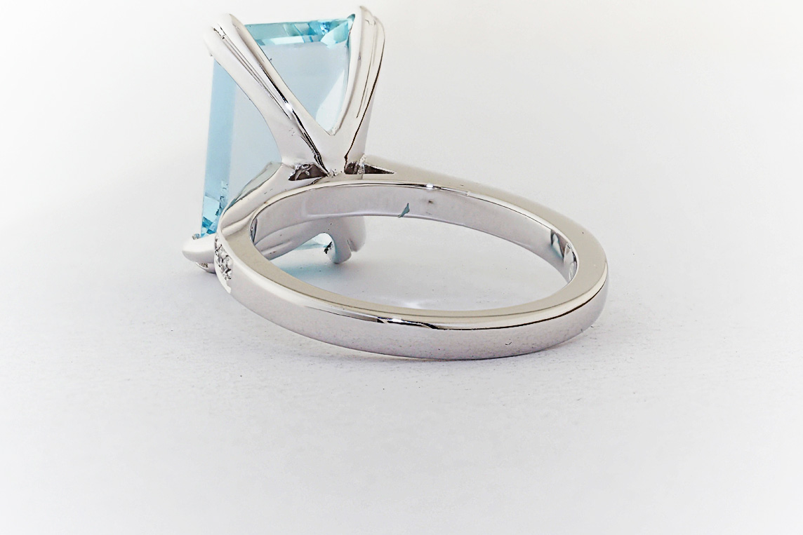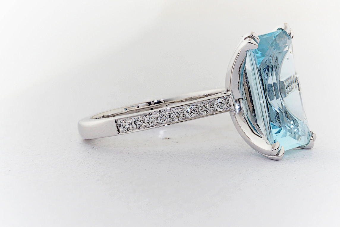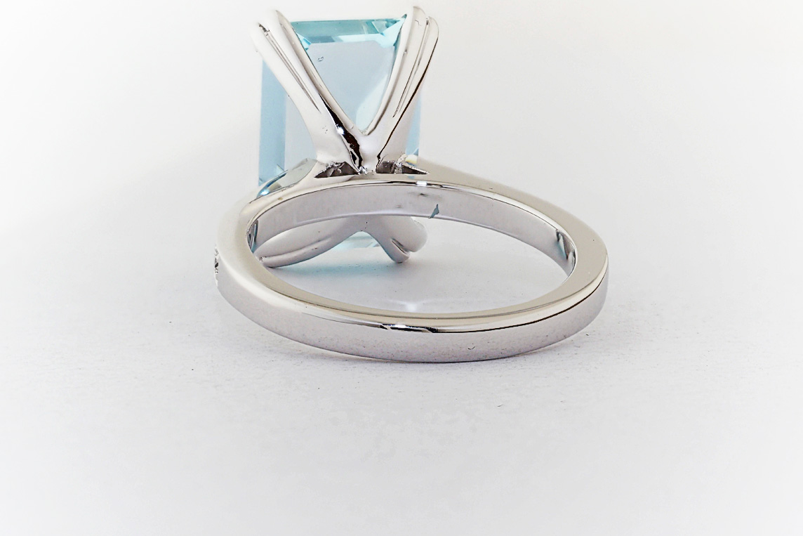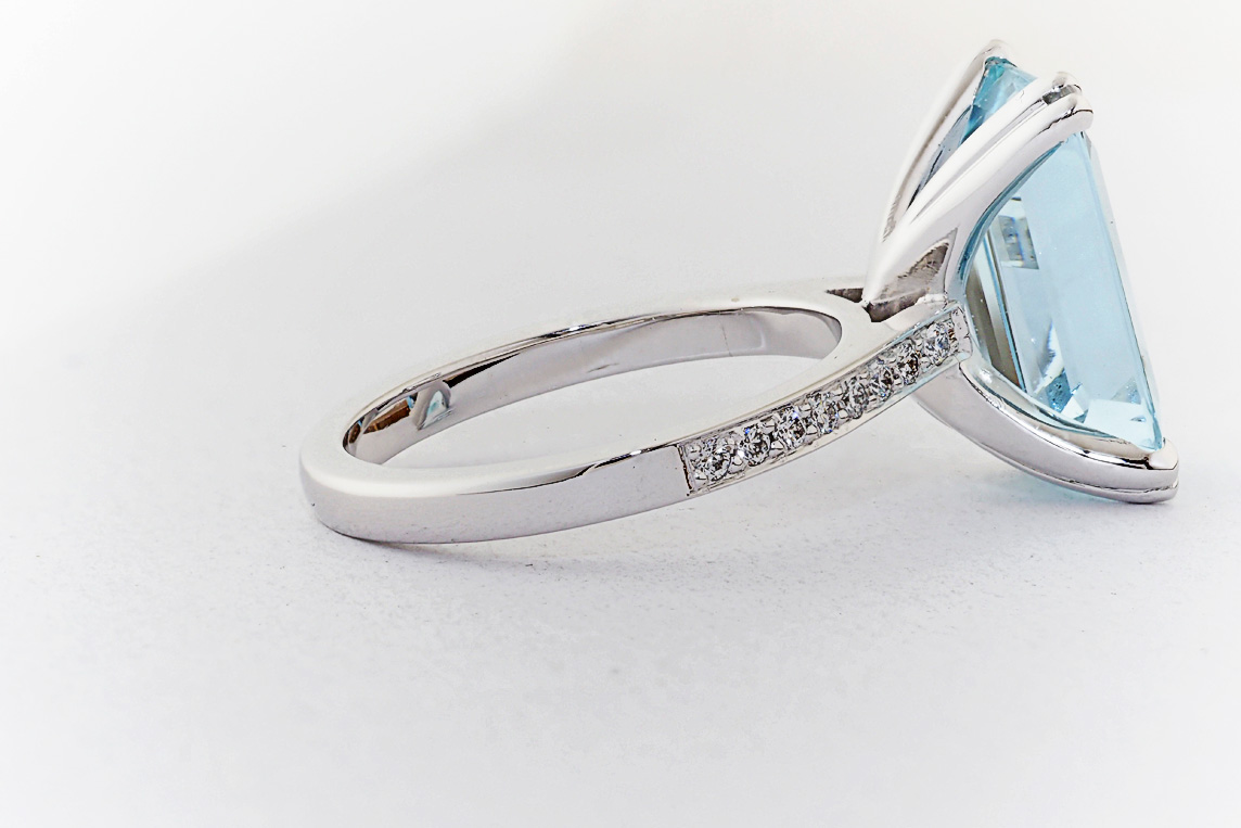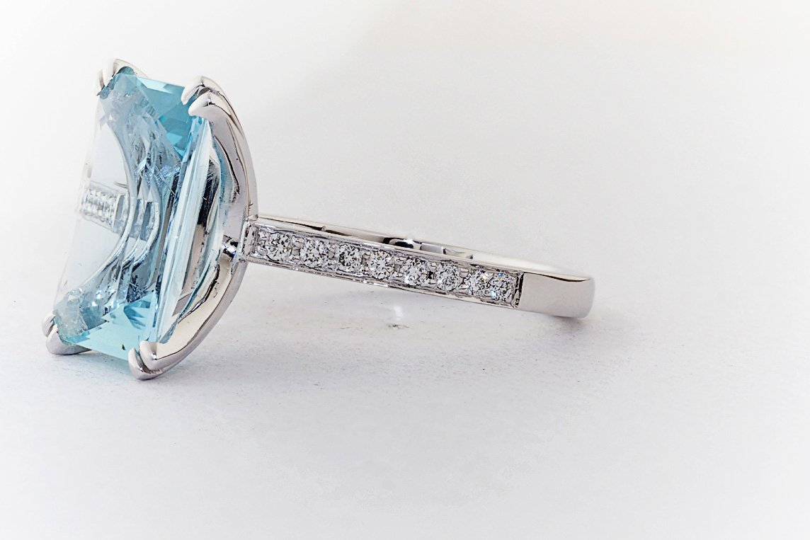 Handmade emerald cut aquamarine and diamond ring