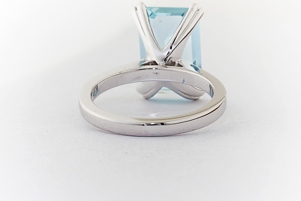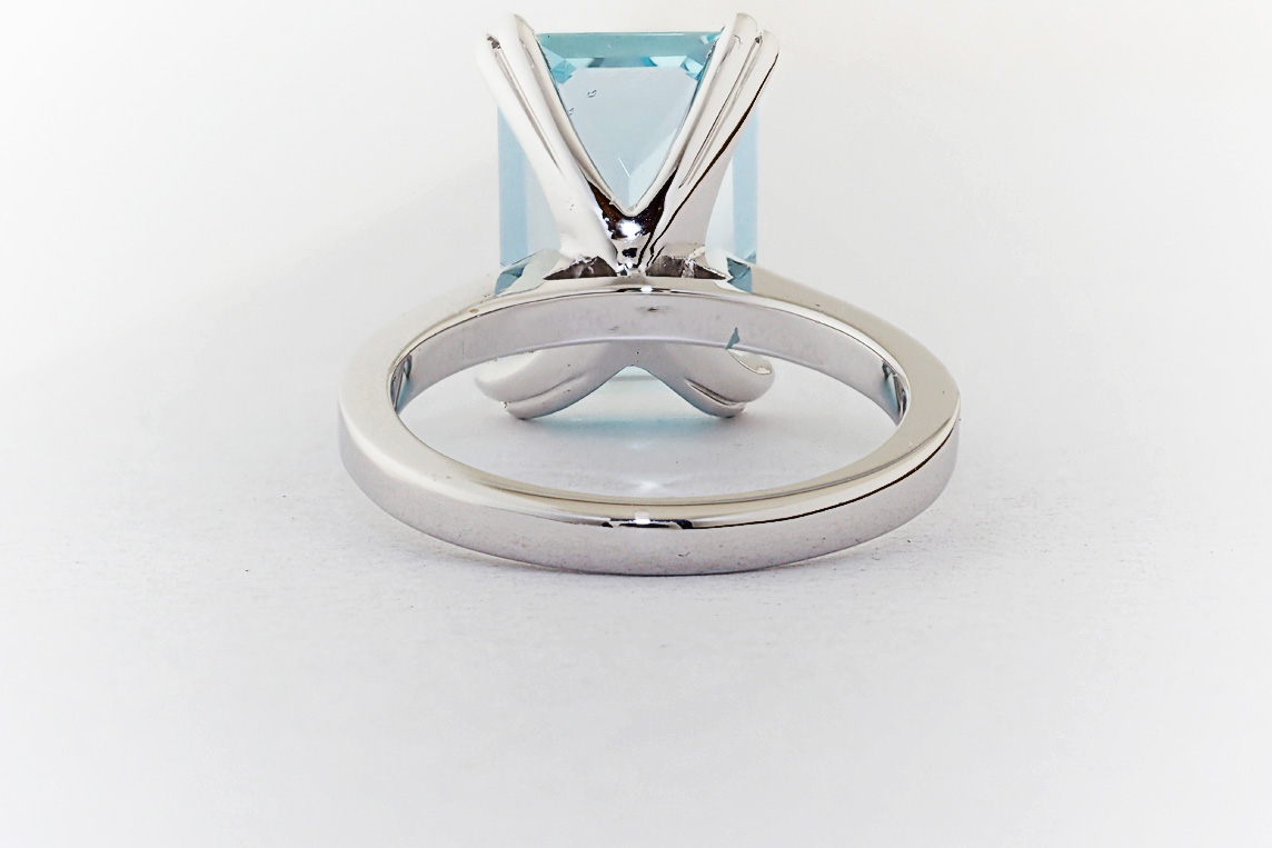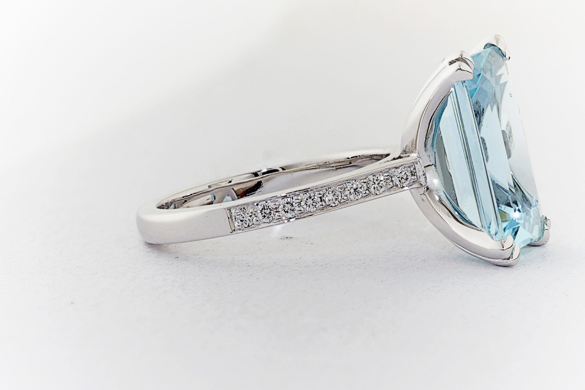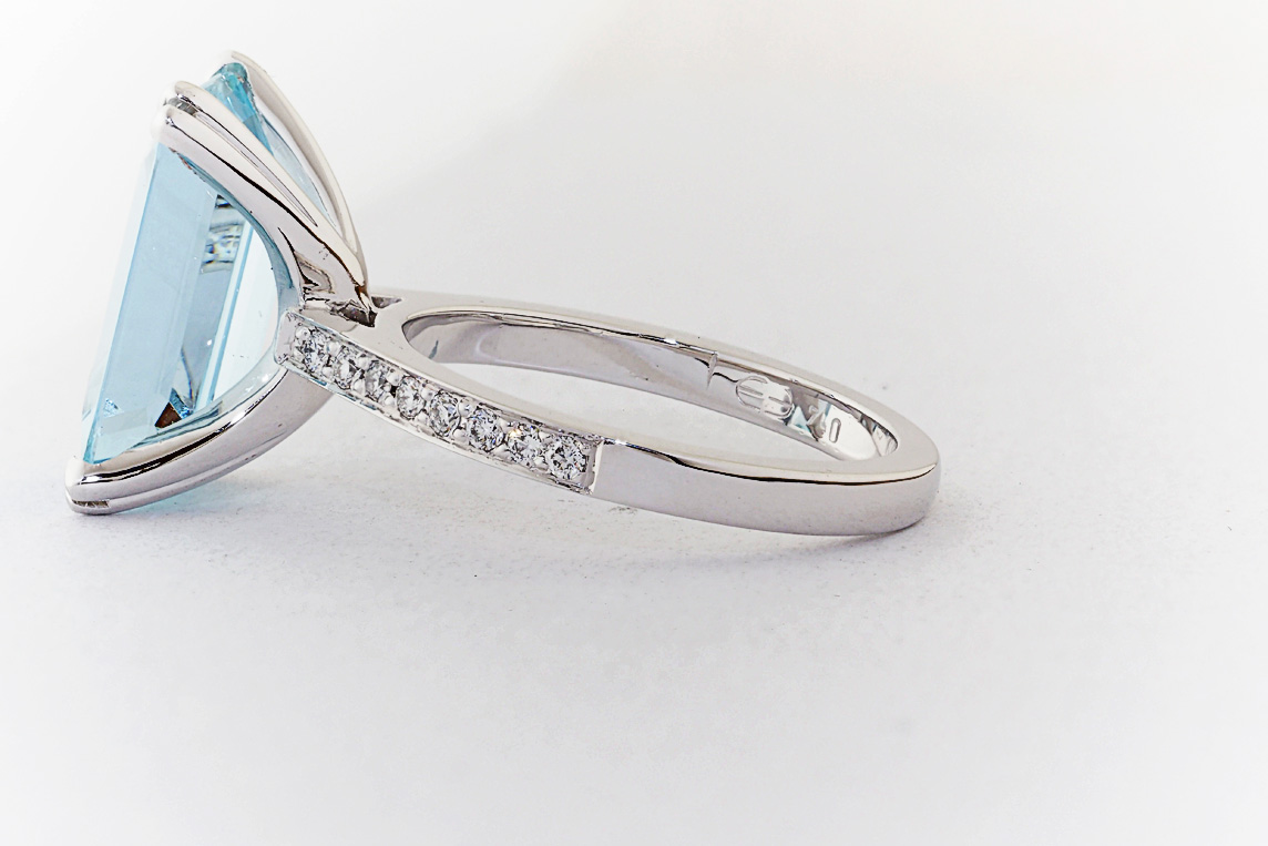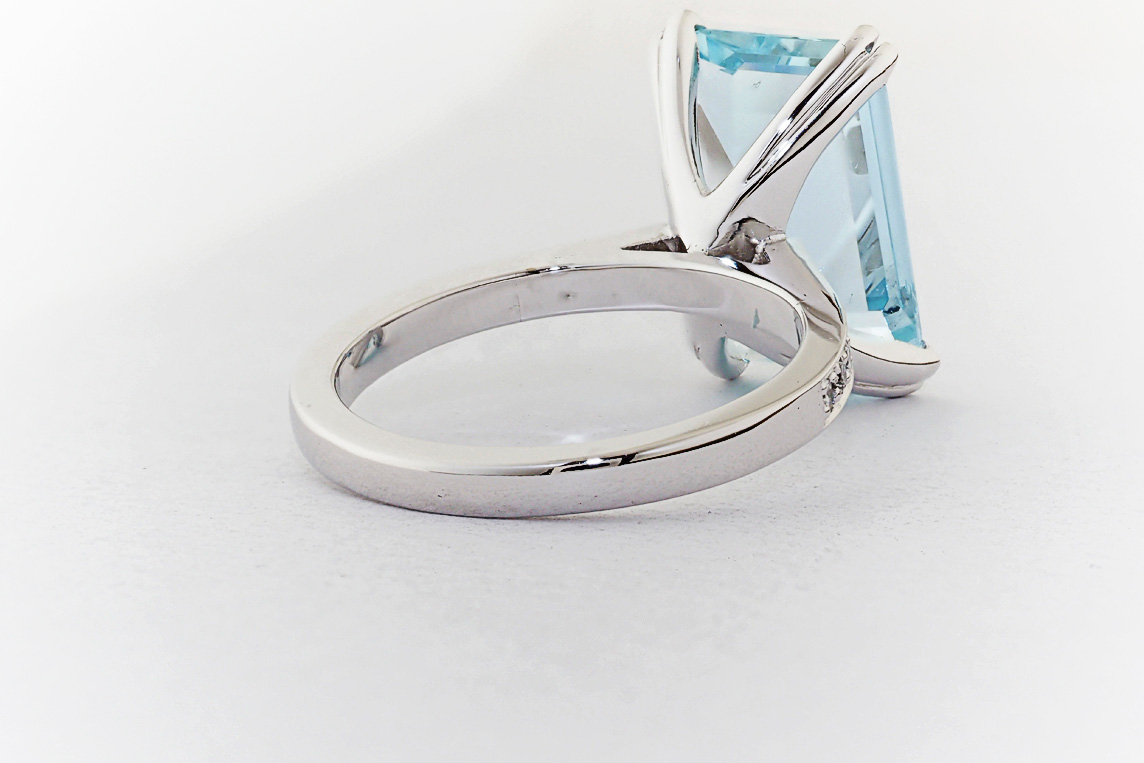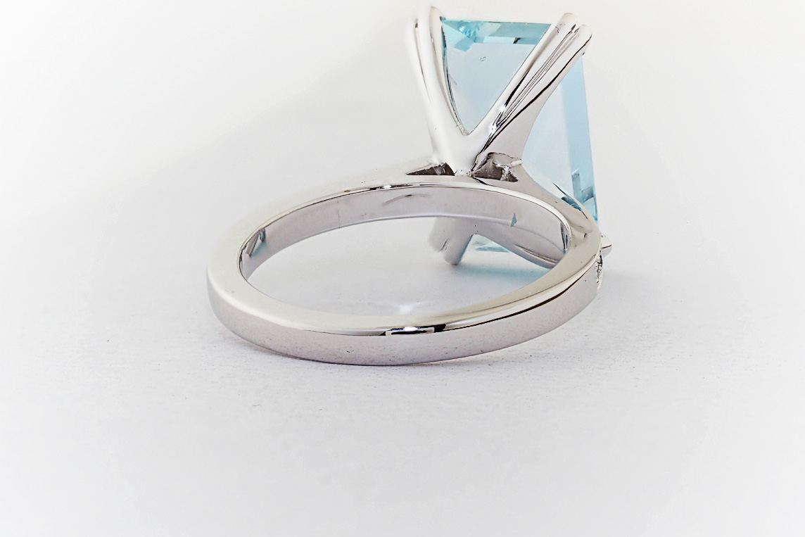 Handmade emerald cut aquamarine and diamond ring