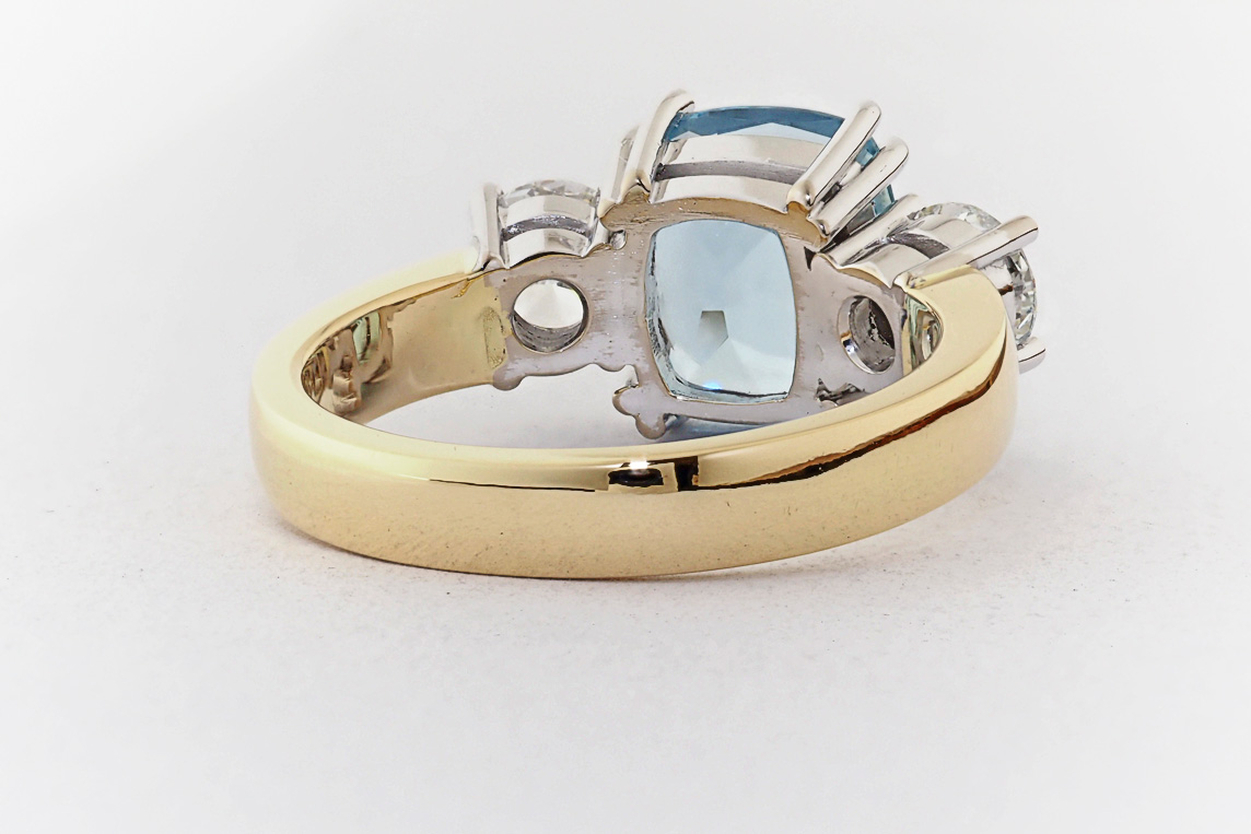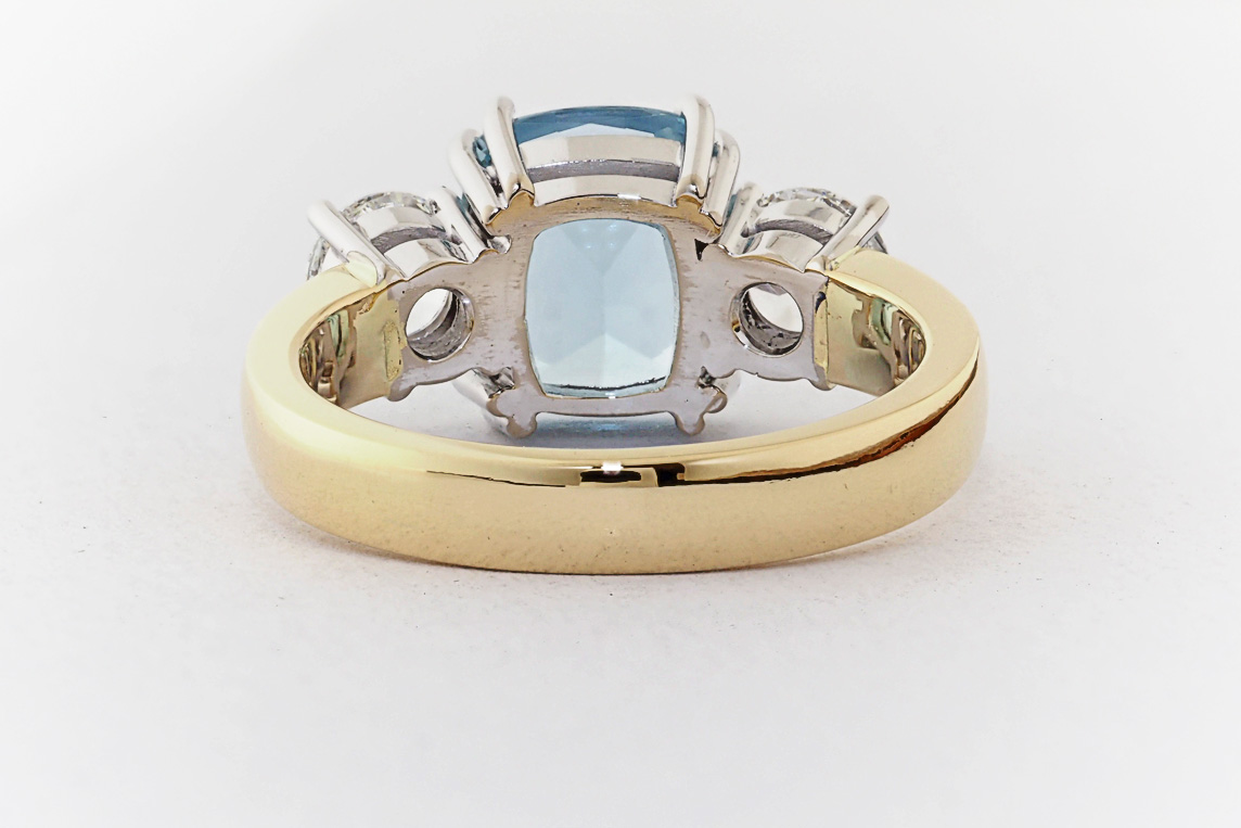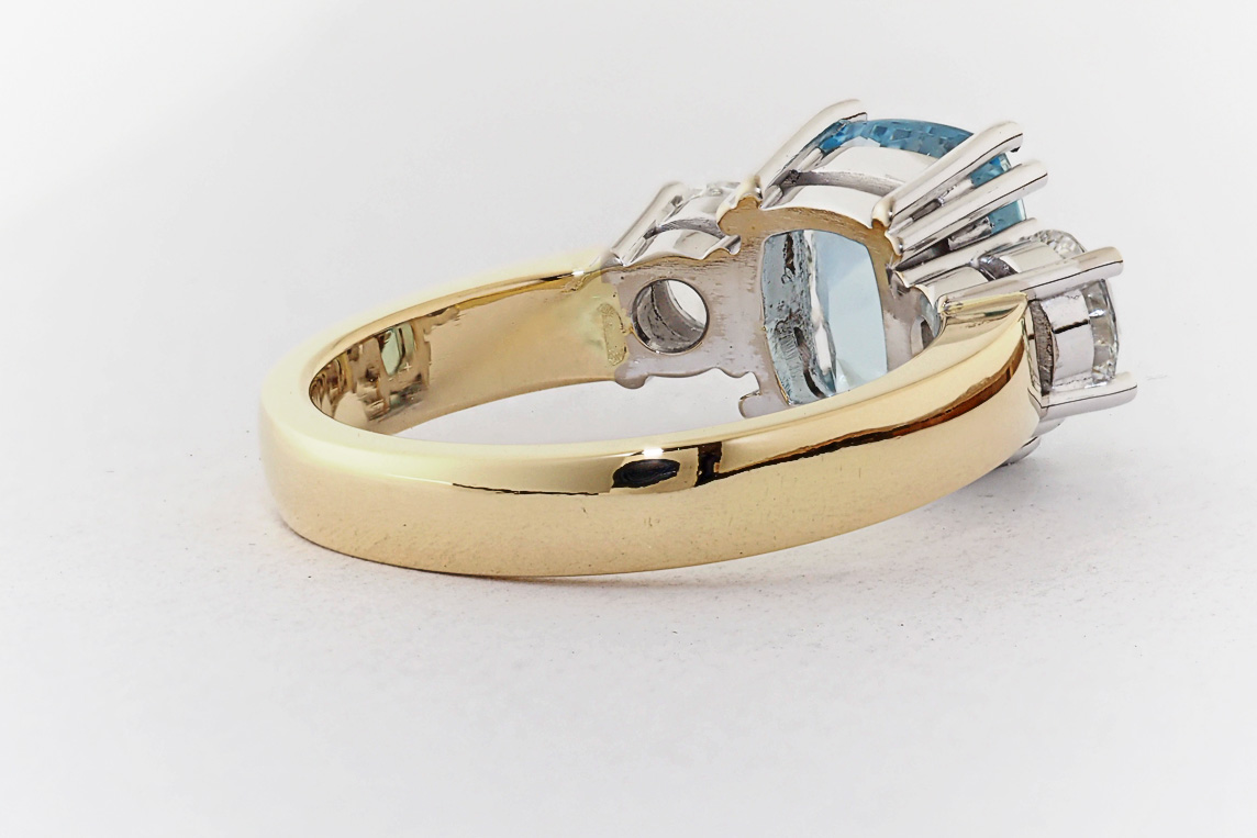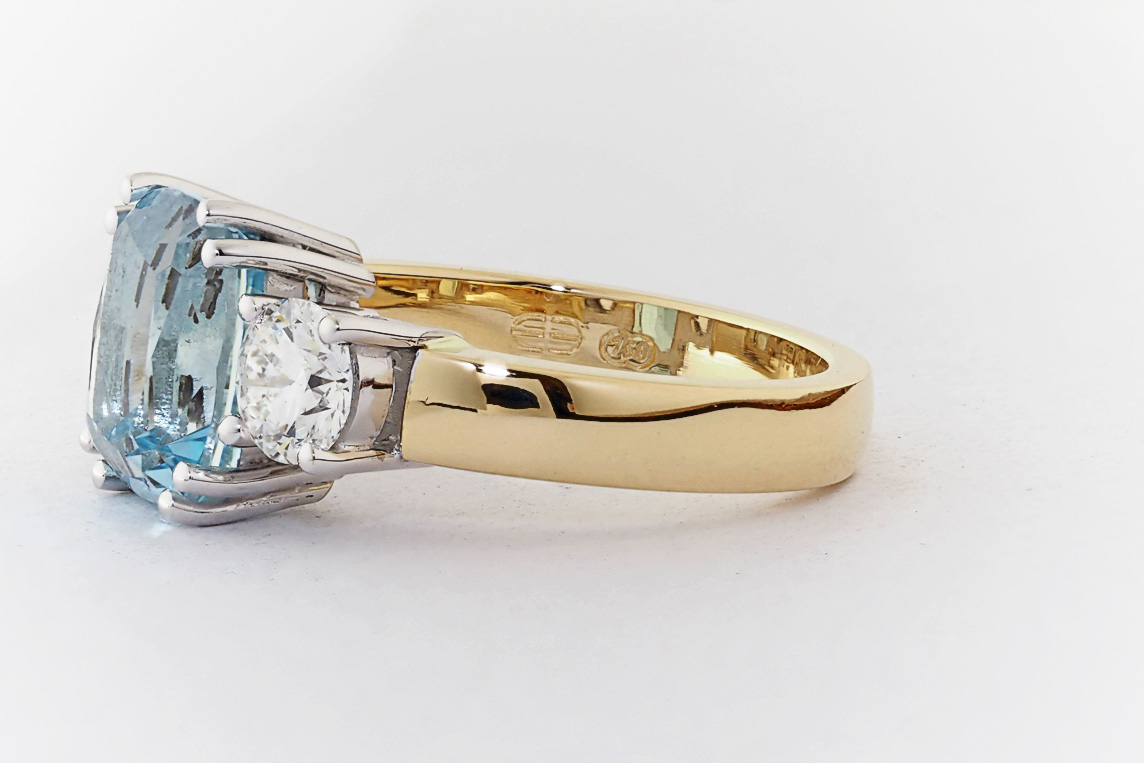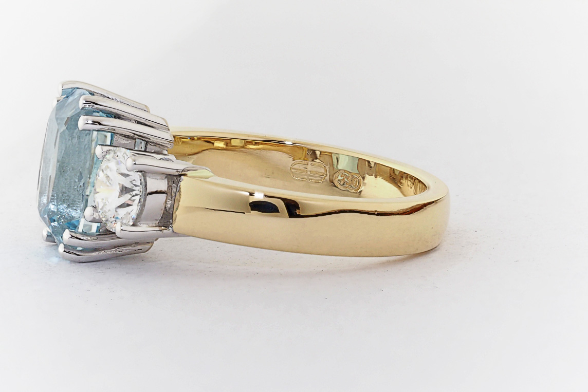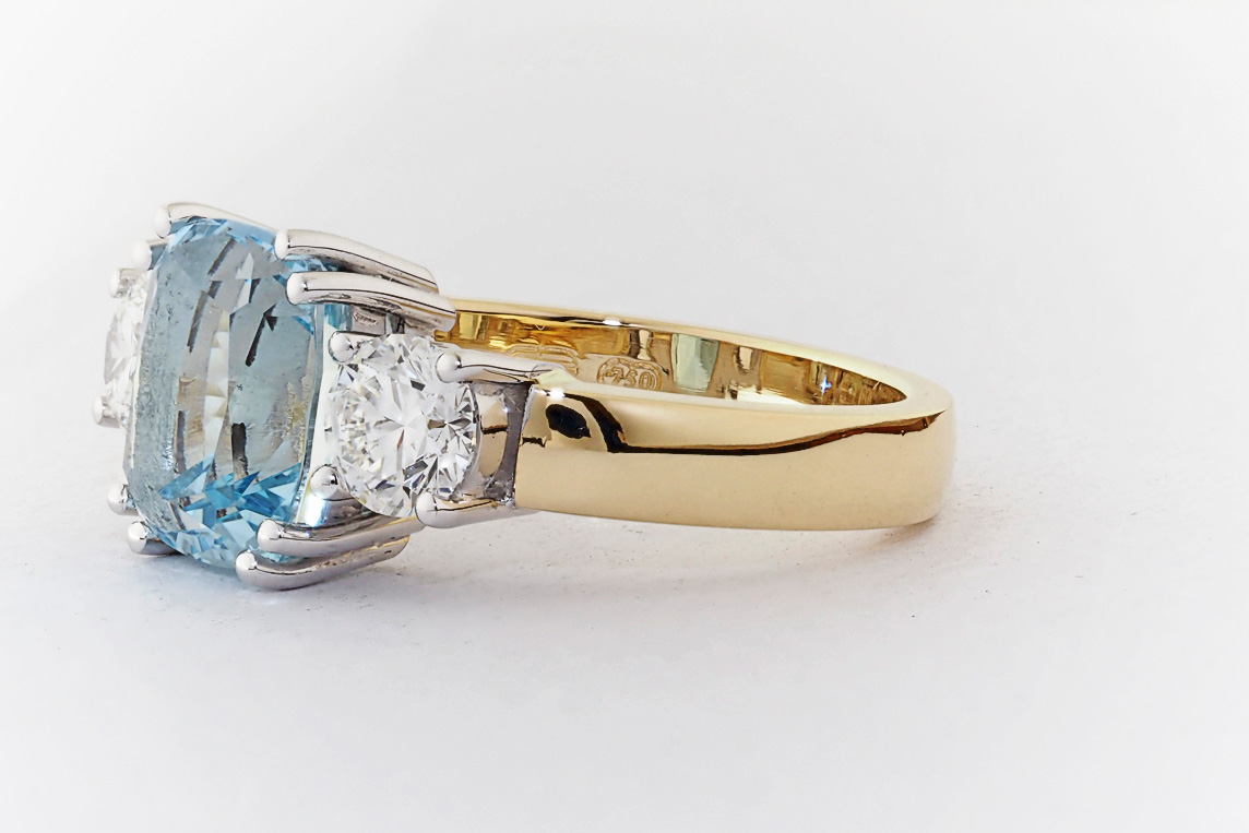Yellow and white gold handmade ladies aquamarine and diamond eternity ring