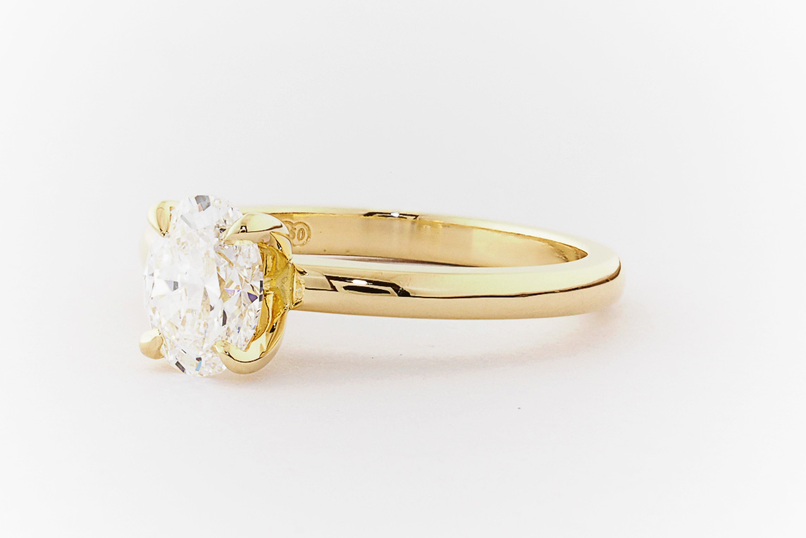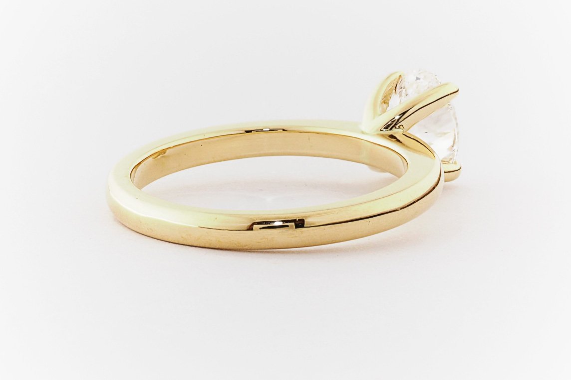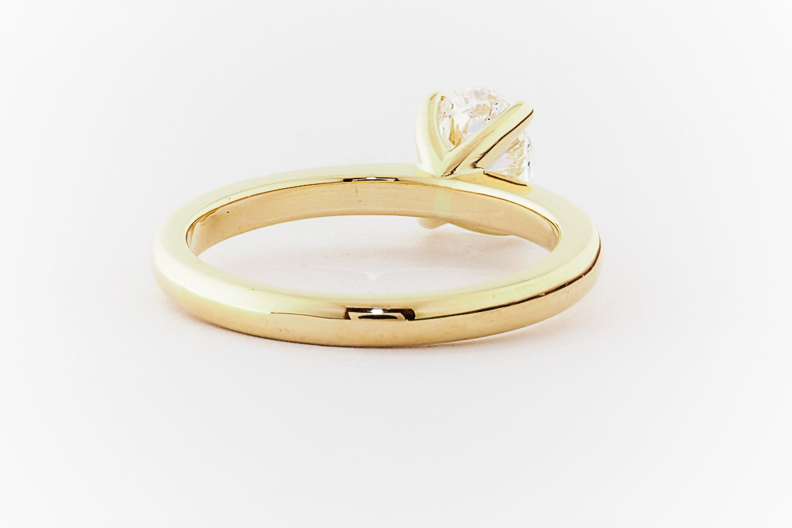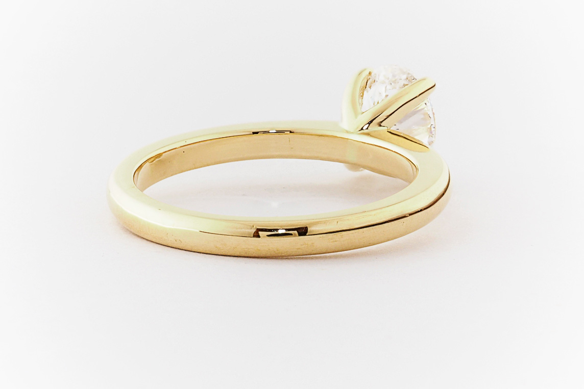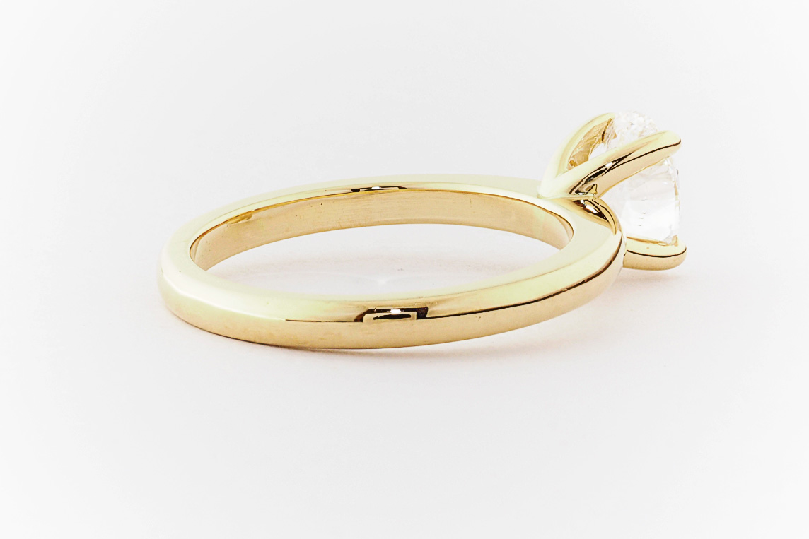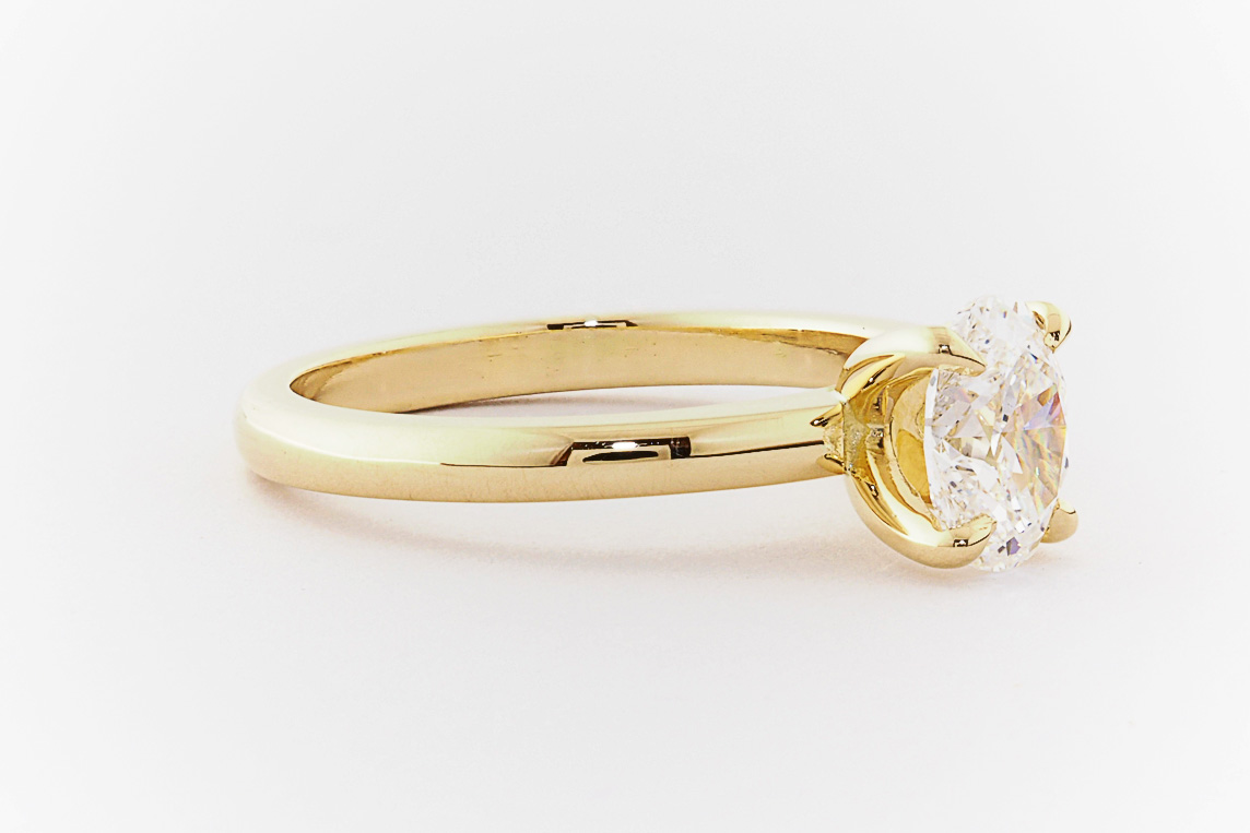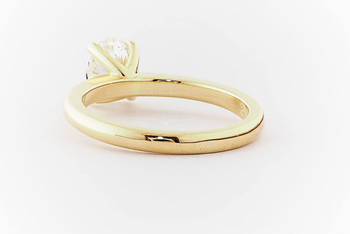 SKU: 20535 Category: Custom Engagement Rings Tags: 1.0ct, 4 claw, flame claw, high dome, oval diamond, solitaire, yellow gold