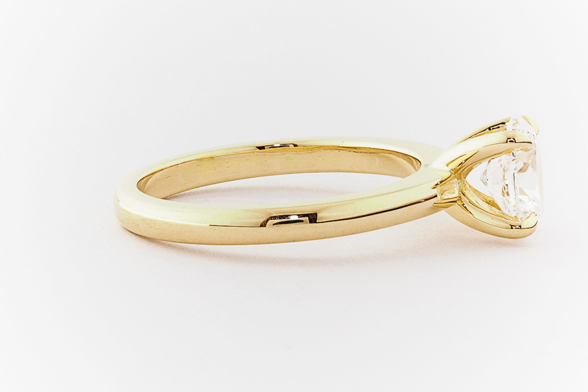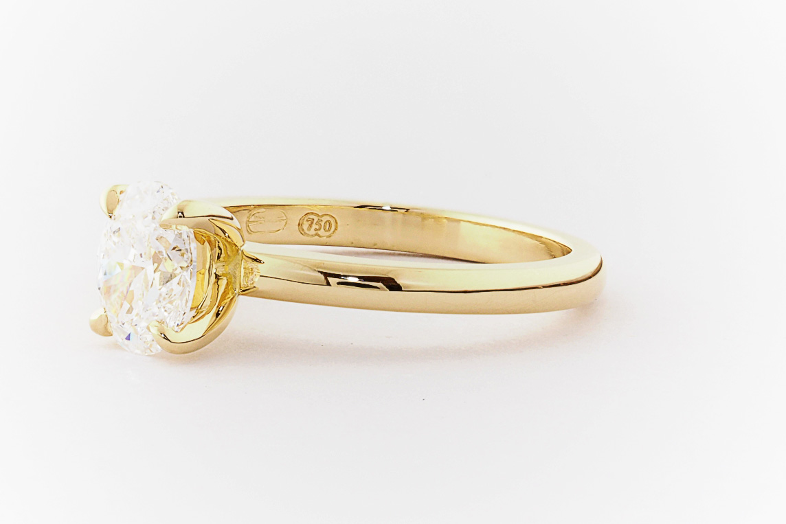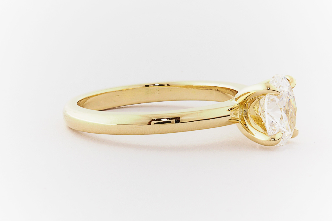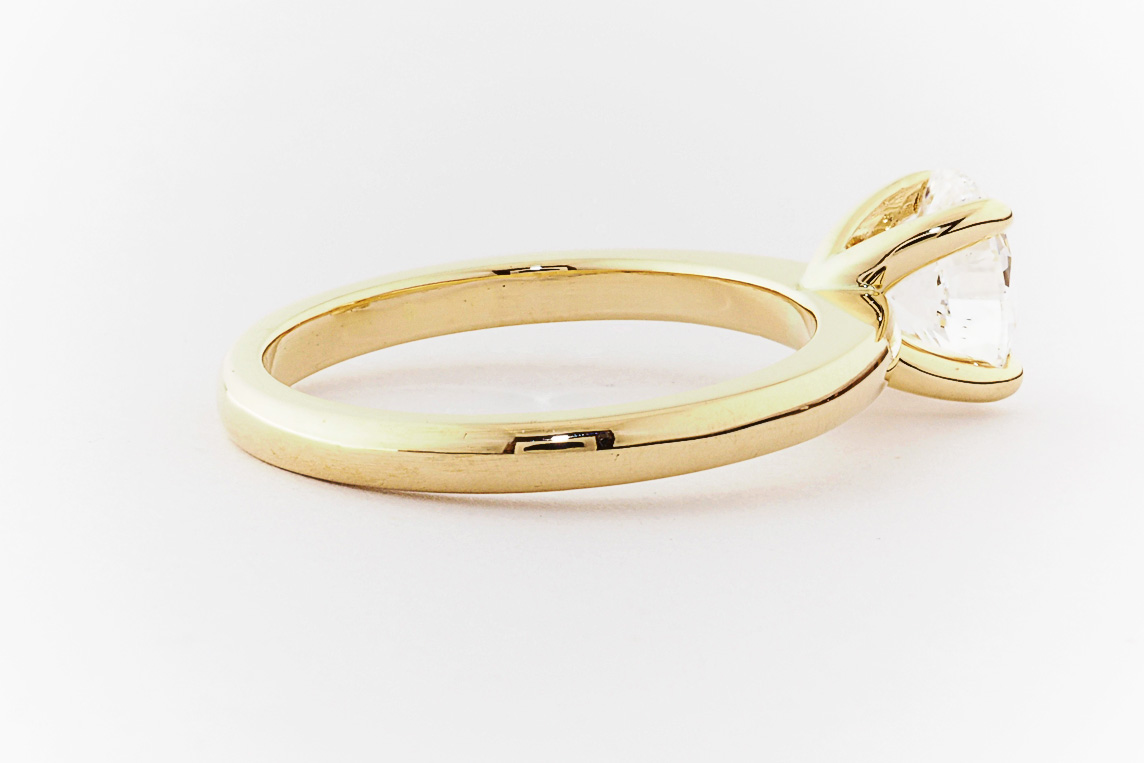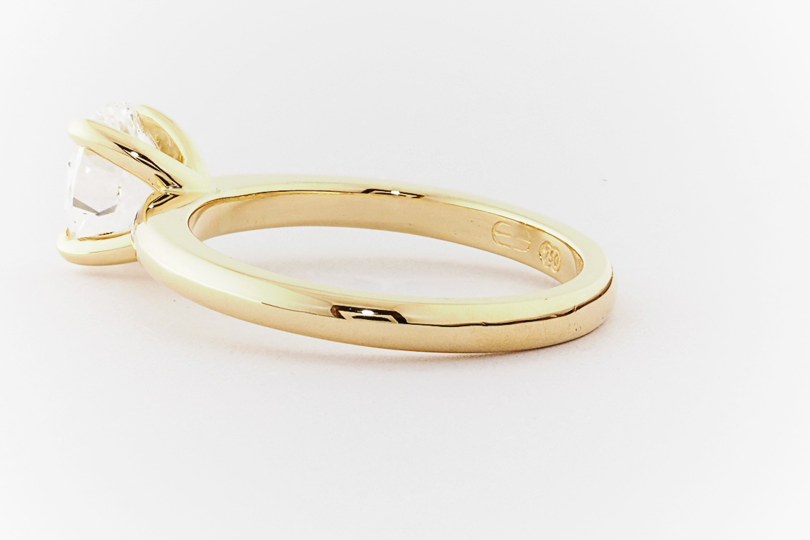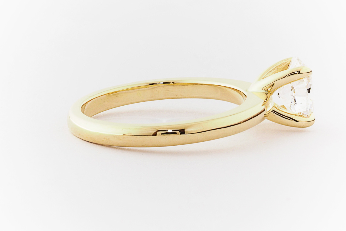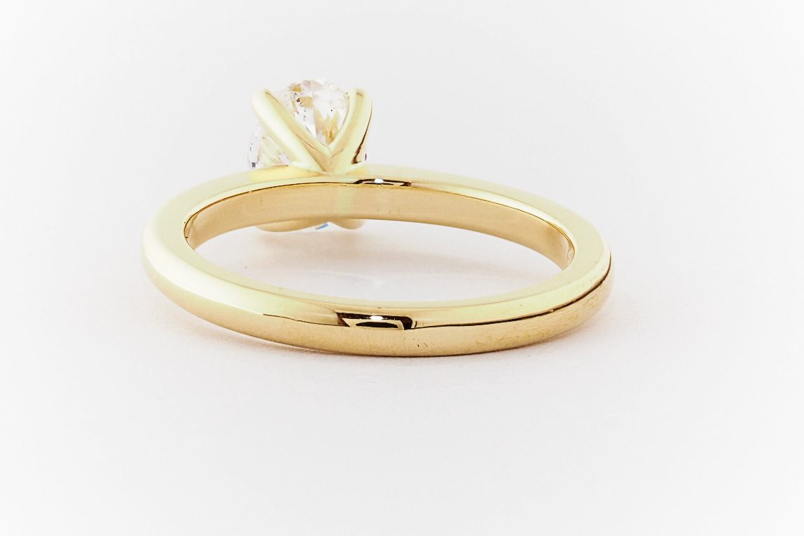 SKU: 20535 Category: Custom Engagement Rings Tags: 1.0ct, 4 claw, flame claw, high dome, oval diamond, solitaire, yellow gold