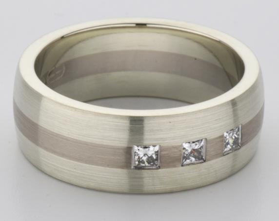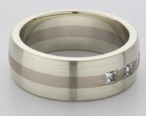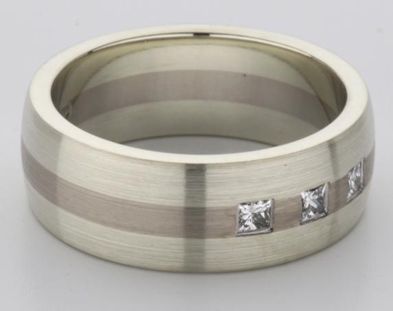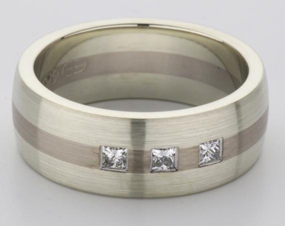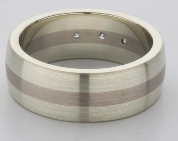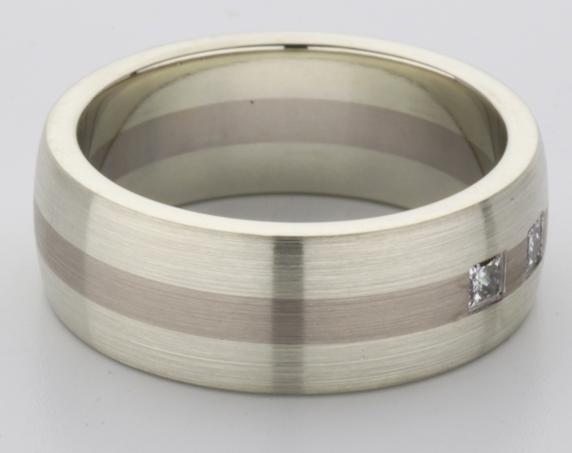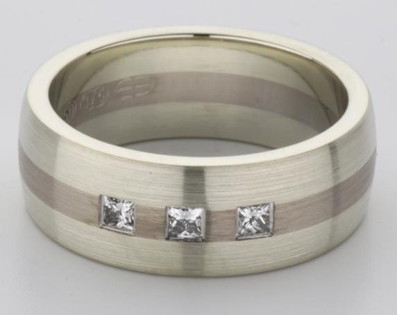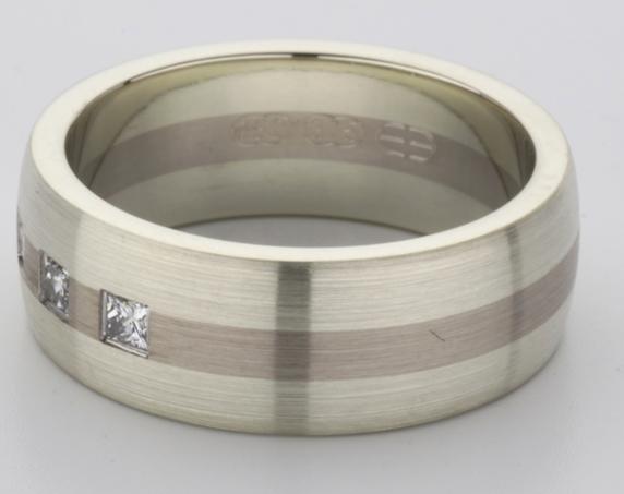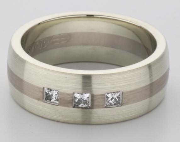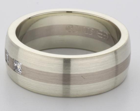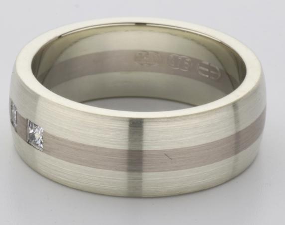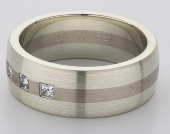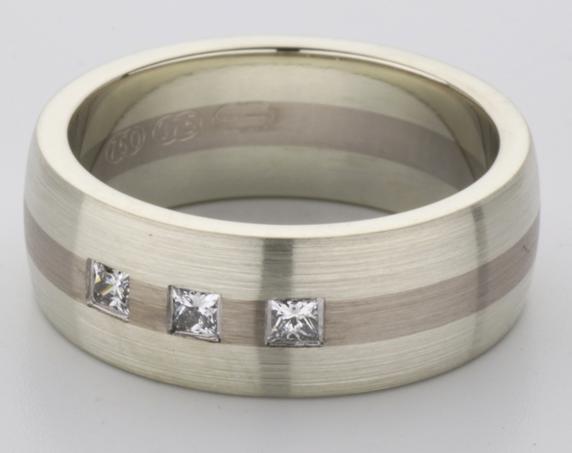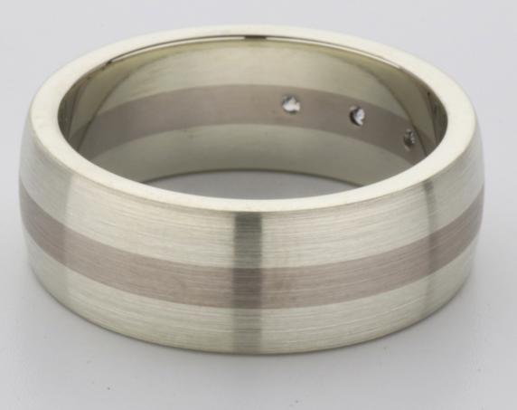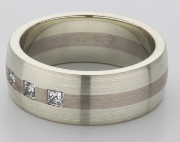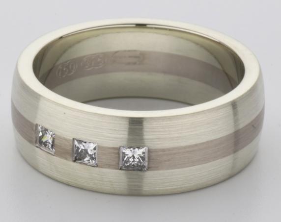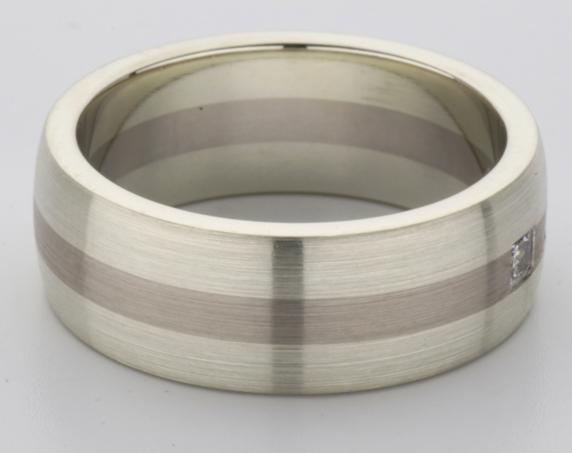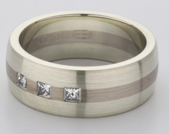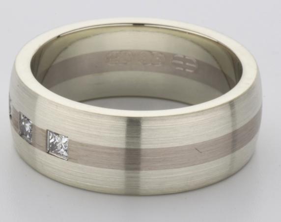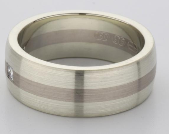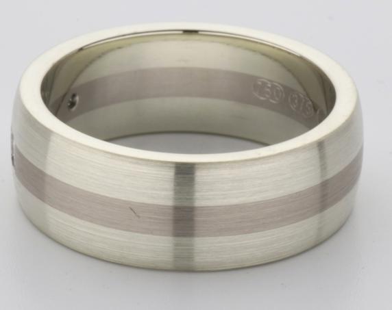 18ct and 9ct white gold TV style mens wedding ring