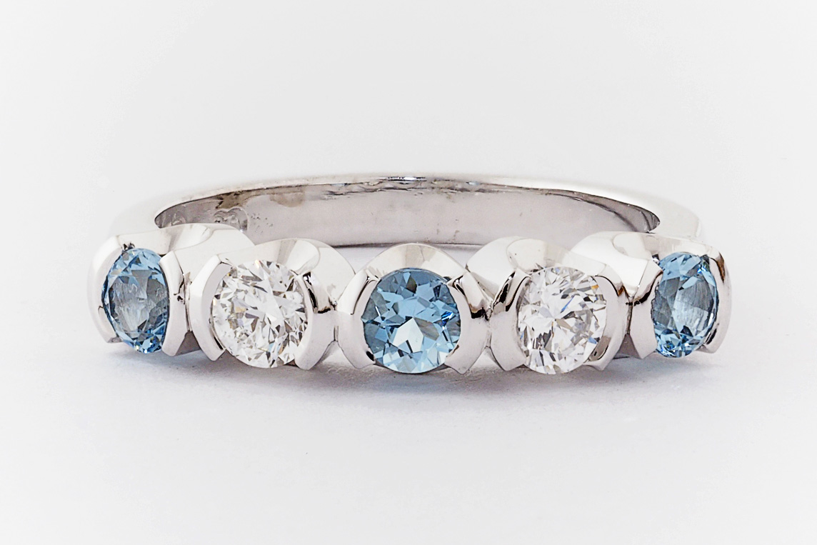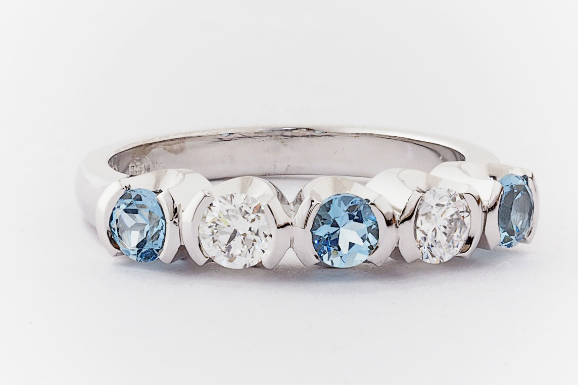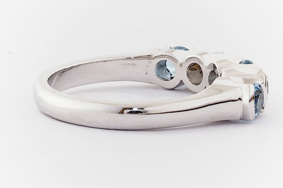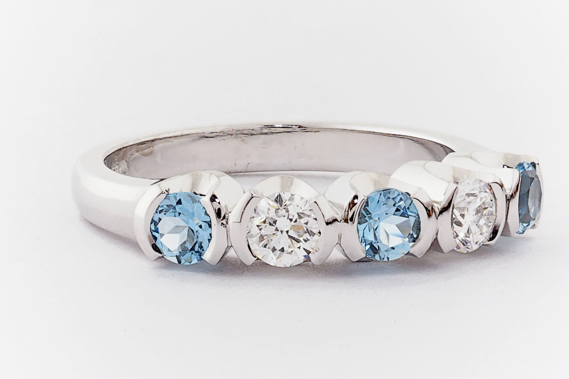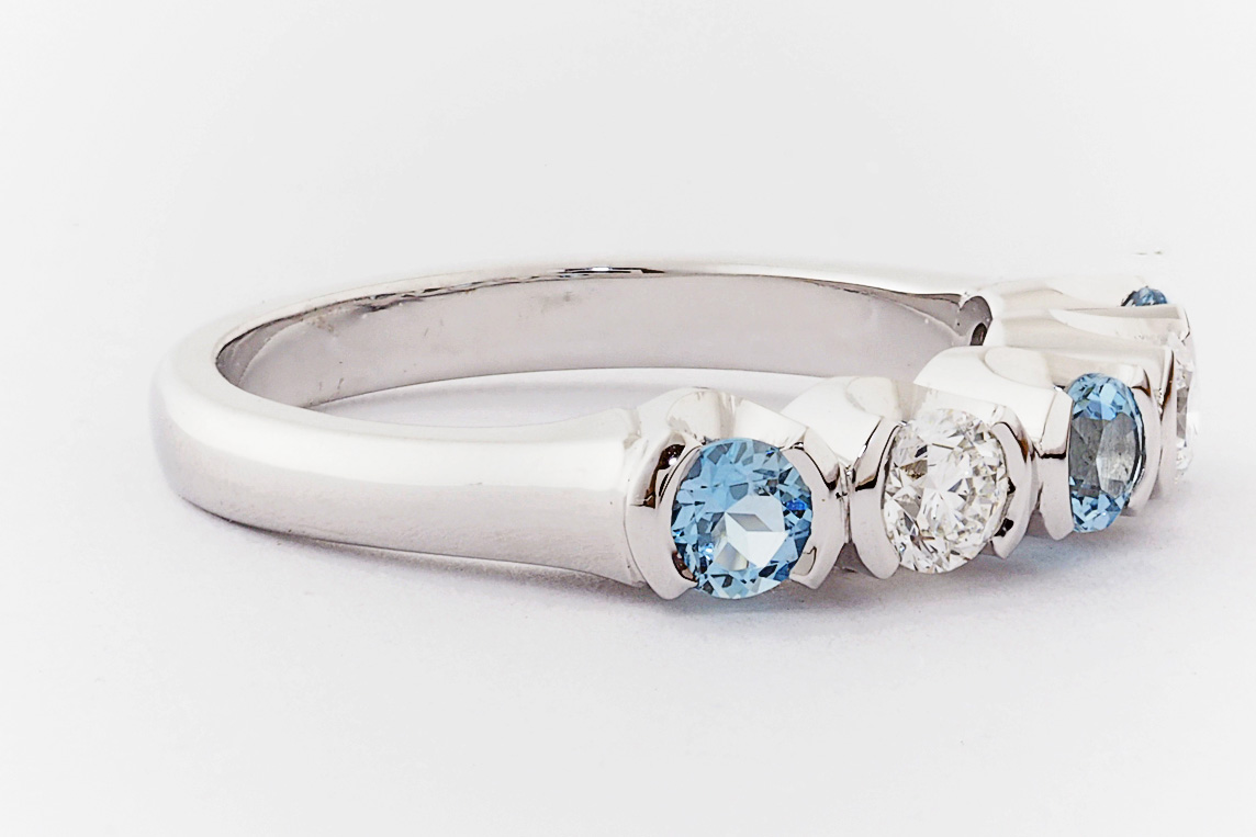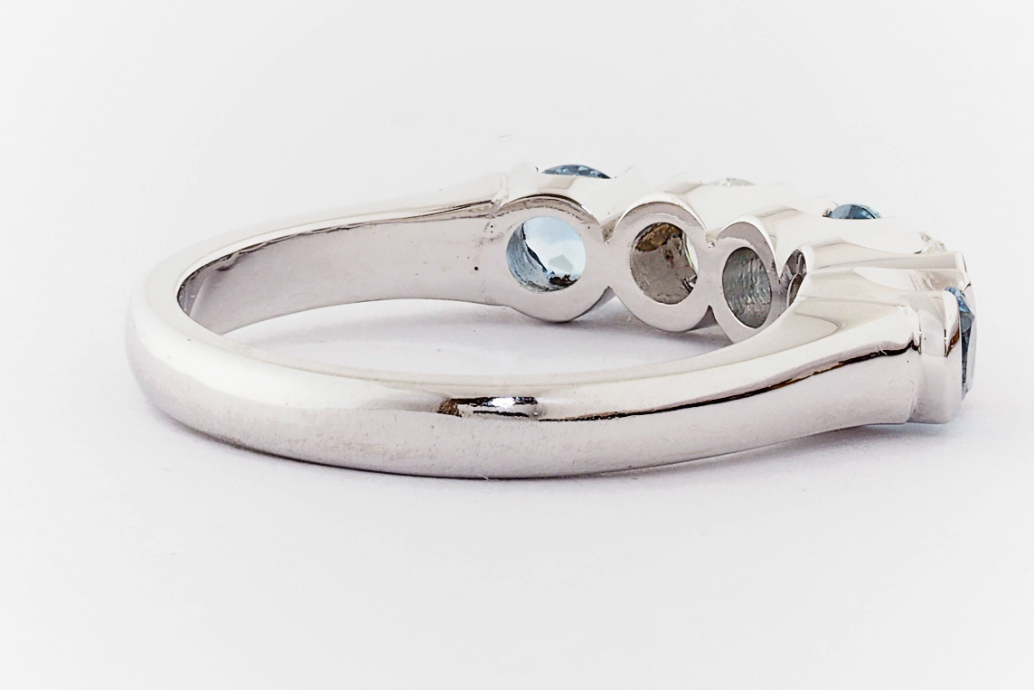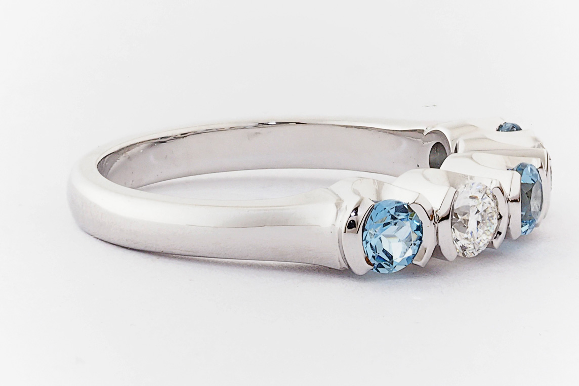 3 x 3.50mm round aquamarines in semi-bezel settings