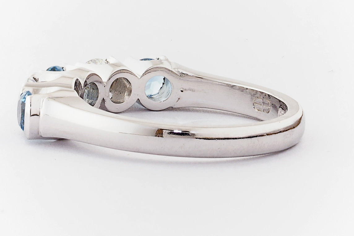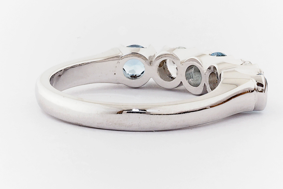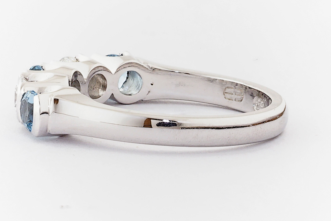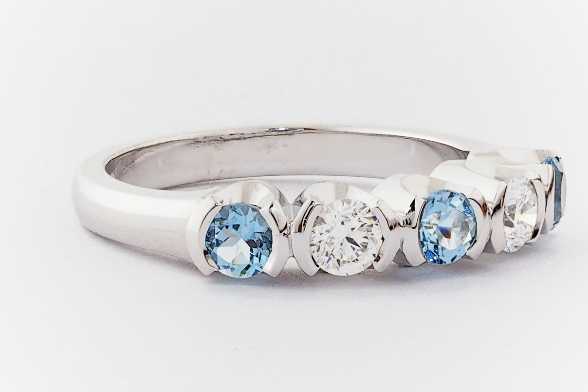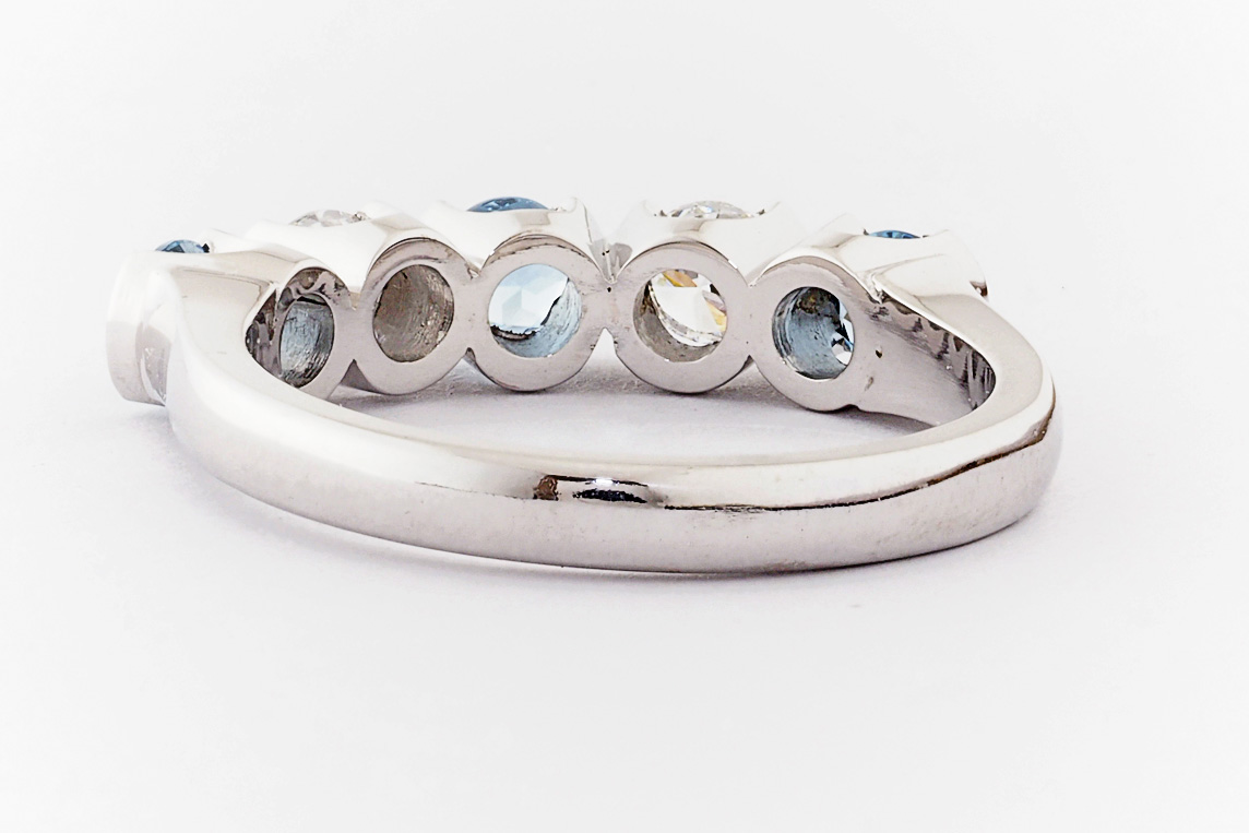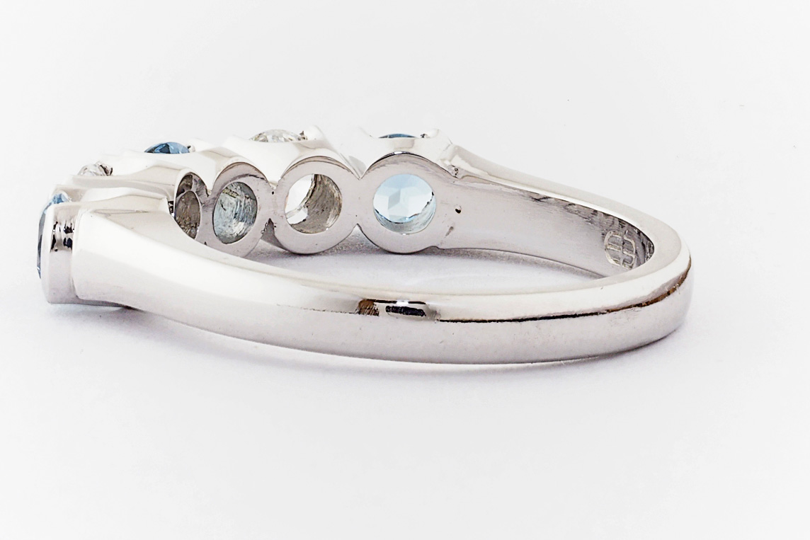 3 x 3.50mm round aquamarines in semi-bezel settings