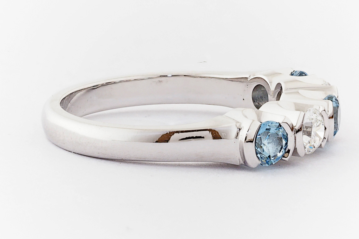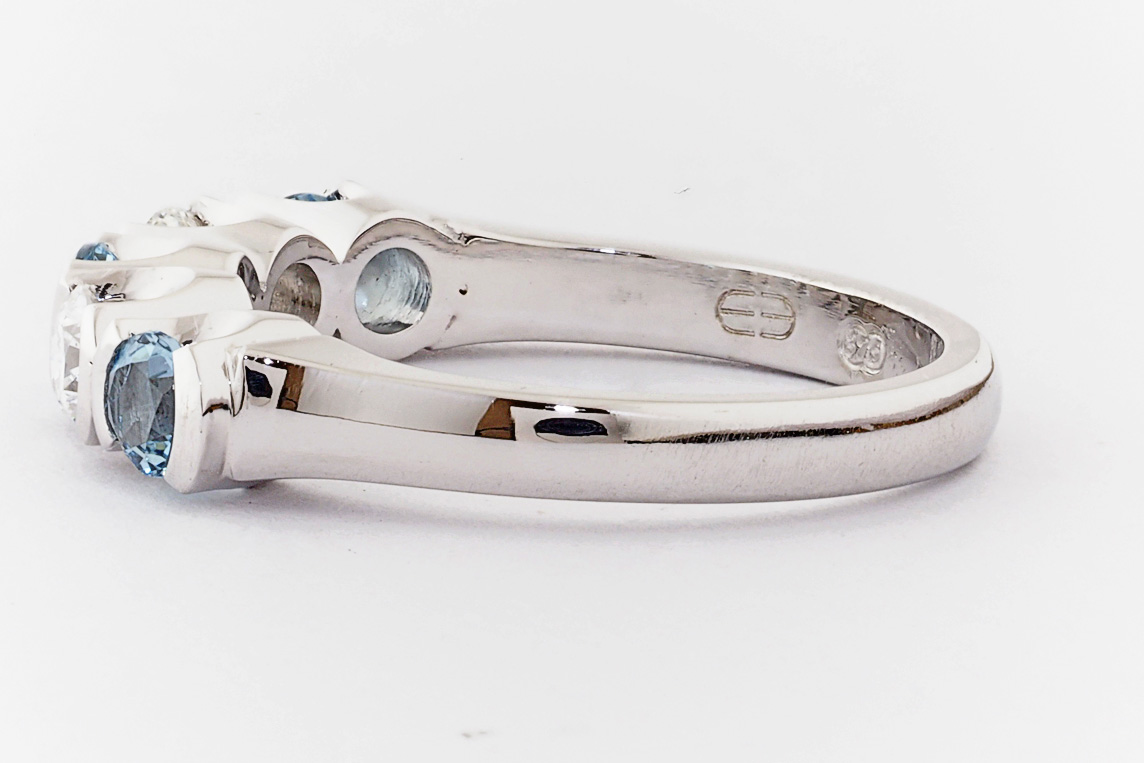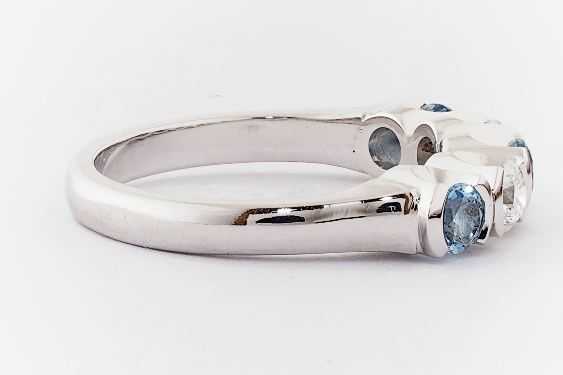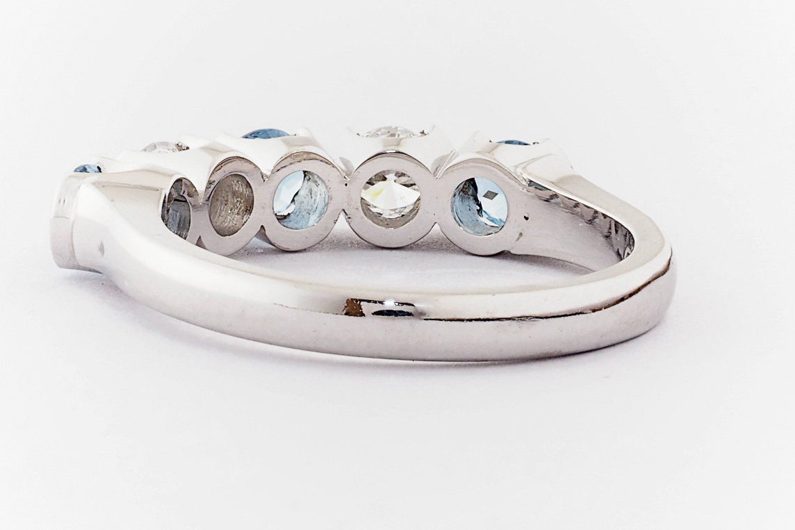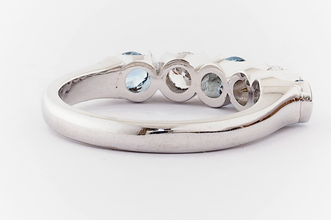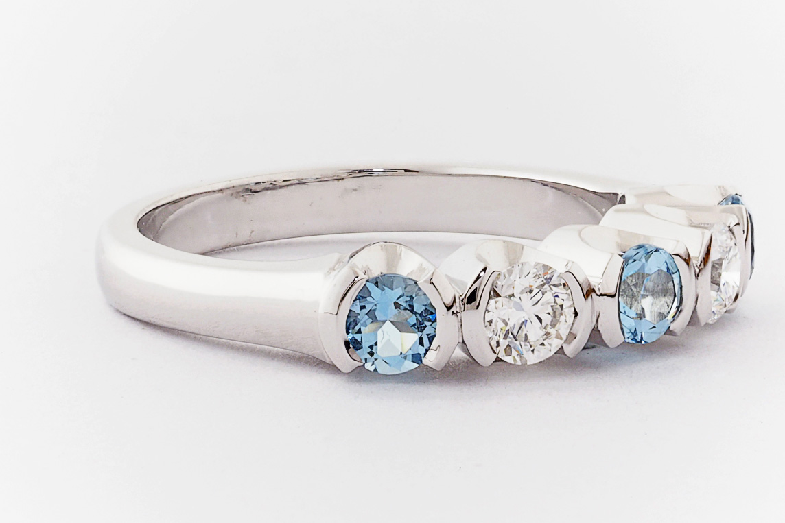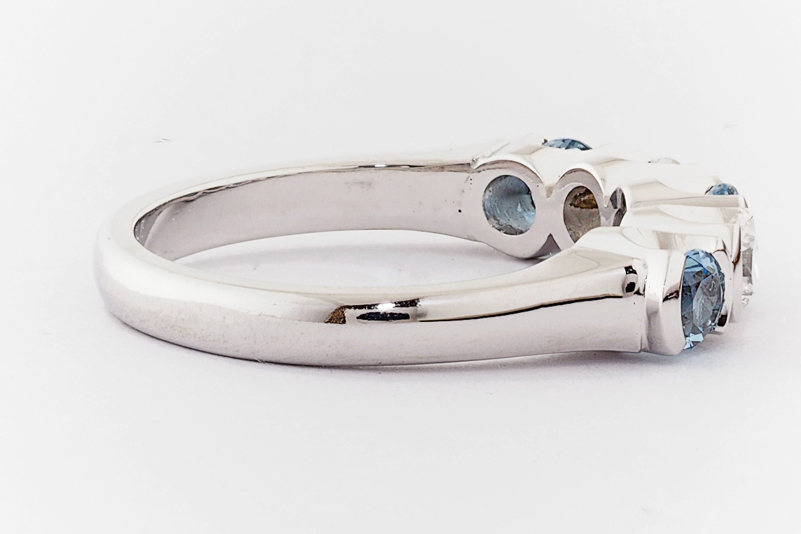 3 x 3.50mm round aquamarines in semi-bezel settings