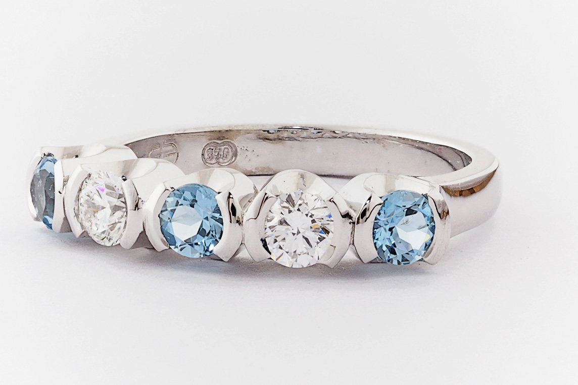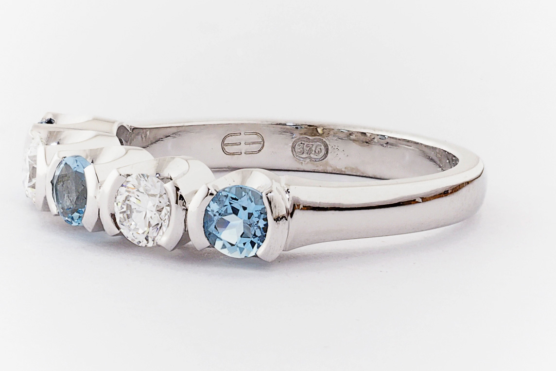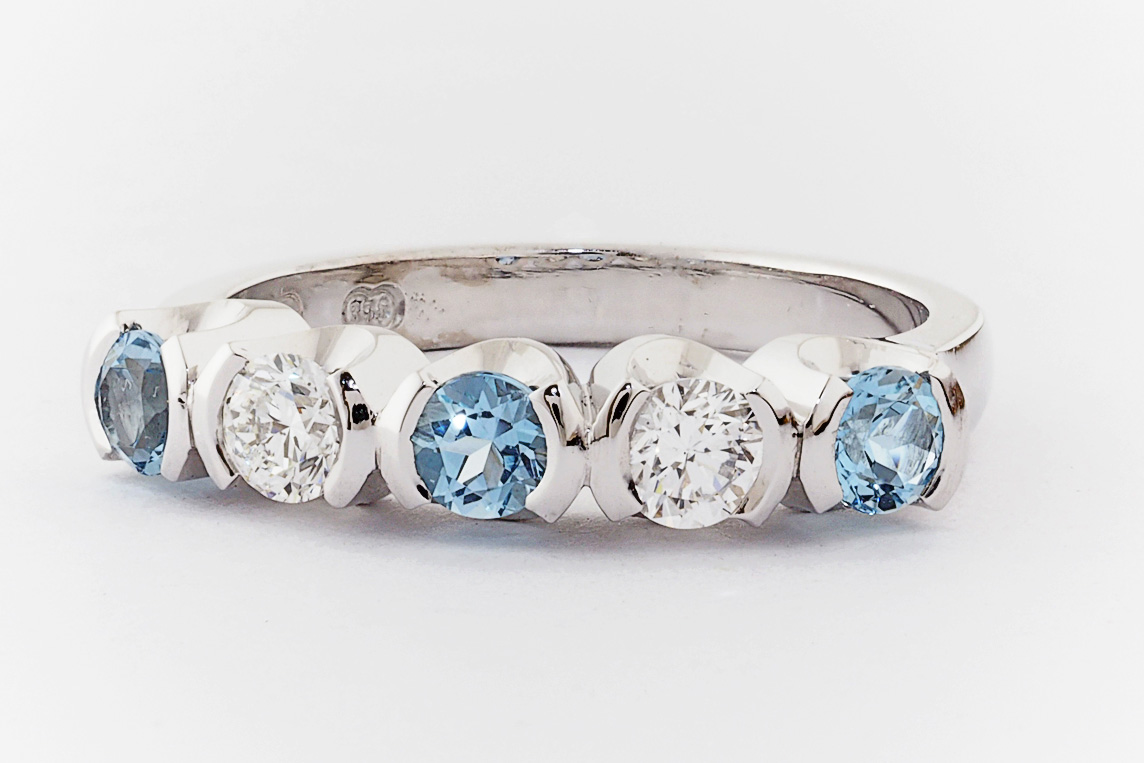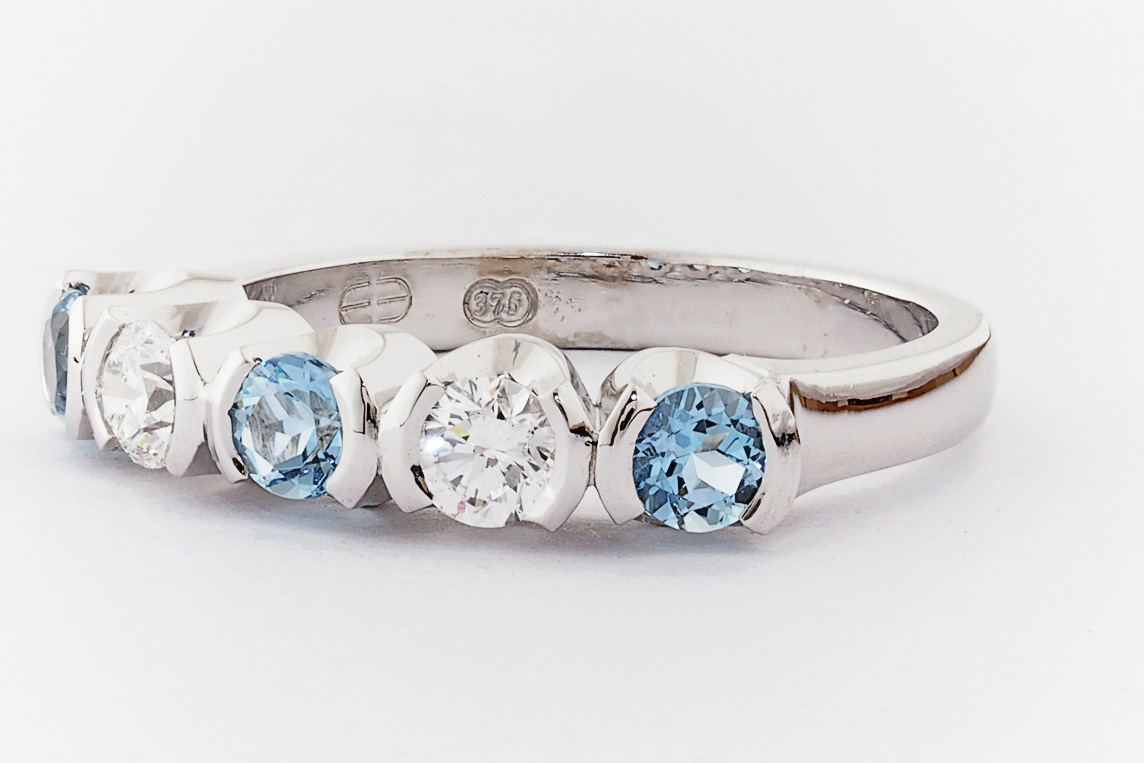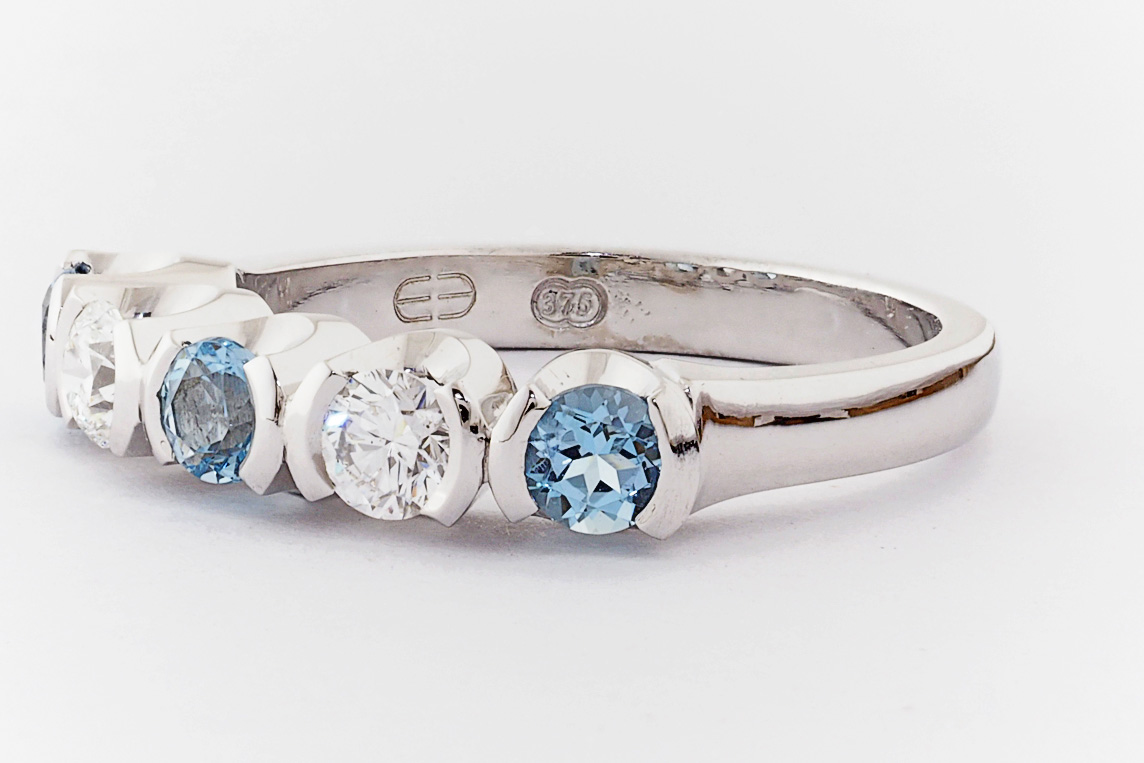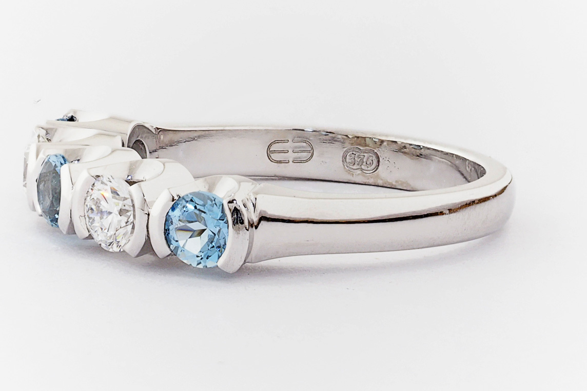 9ct white gold, diamond and aquamarine handmade ladies ring