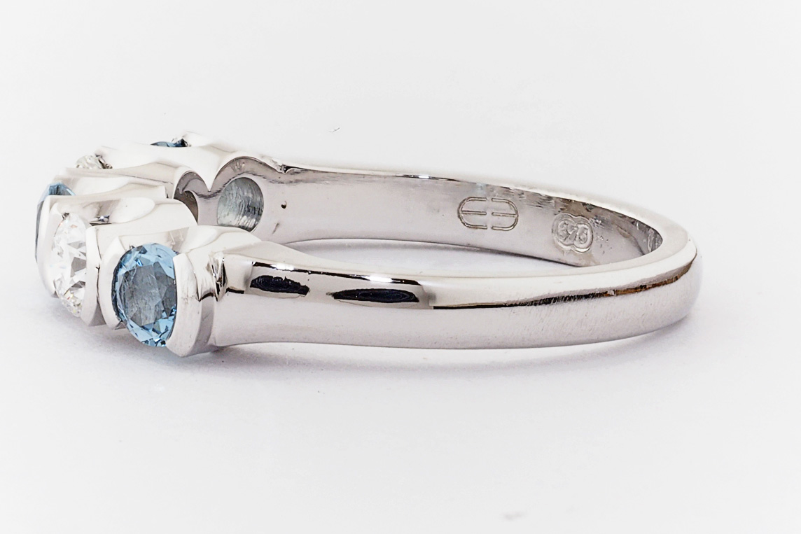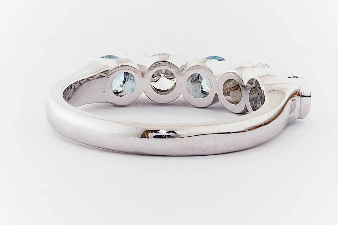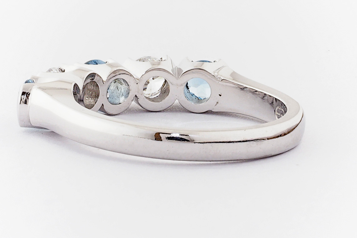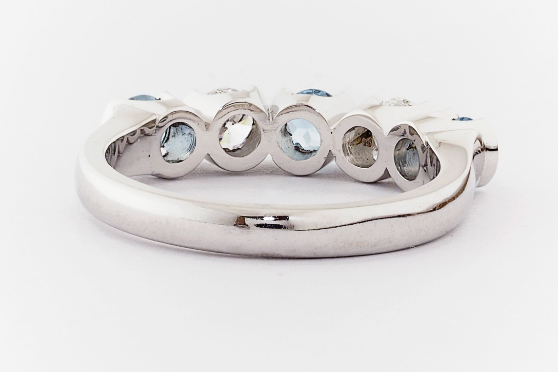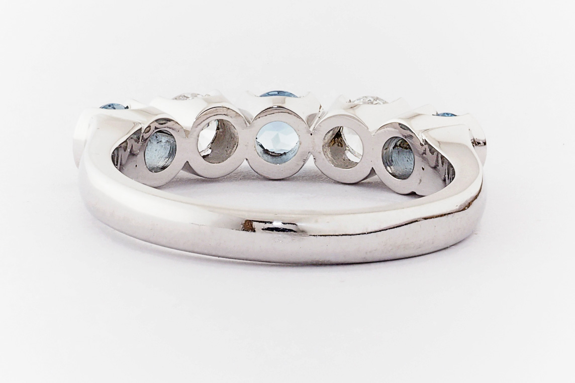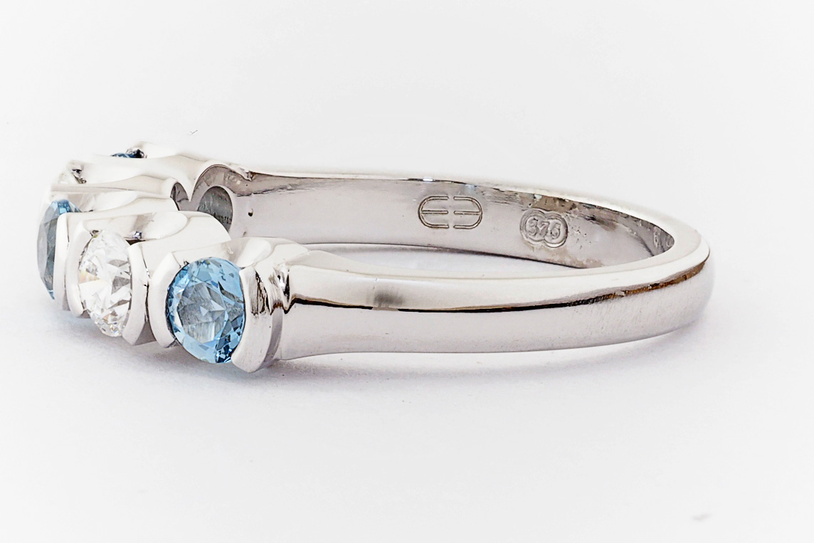 9ct white gold, diamond and aquamarine handmade ladies ring