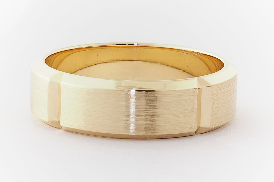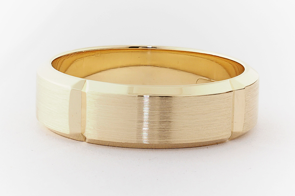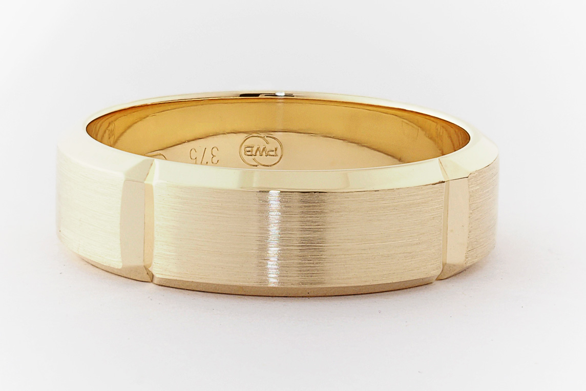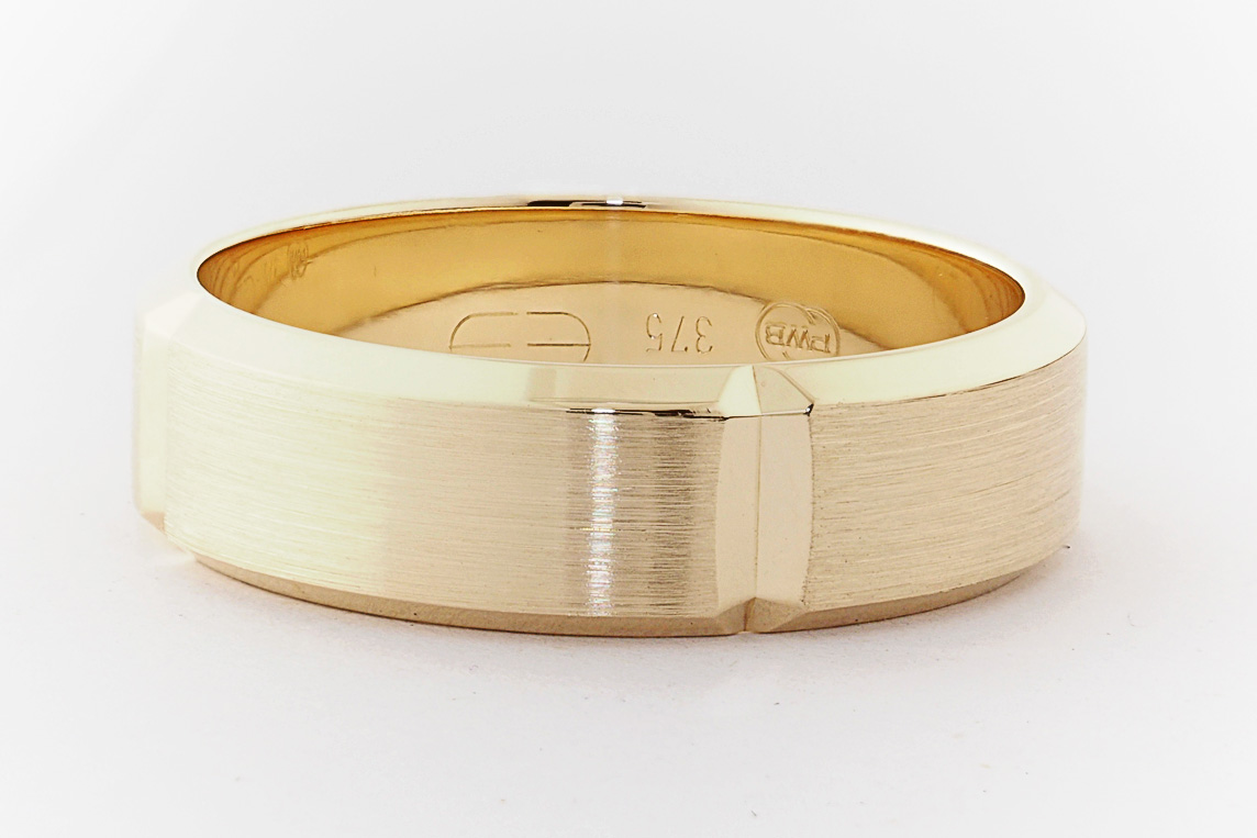 9ct yellow gold bevel edge mens wedding ring