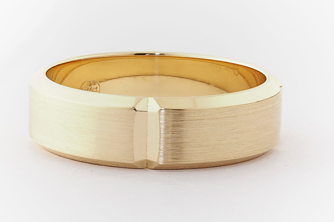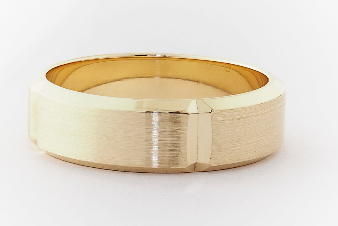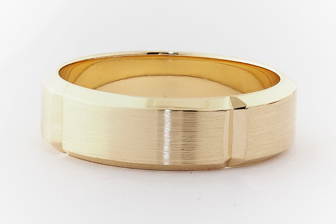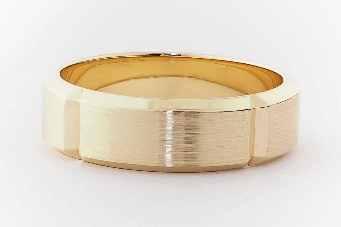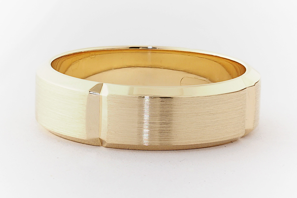 9ct yellow gold bevel edge mens wedding ring
