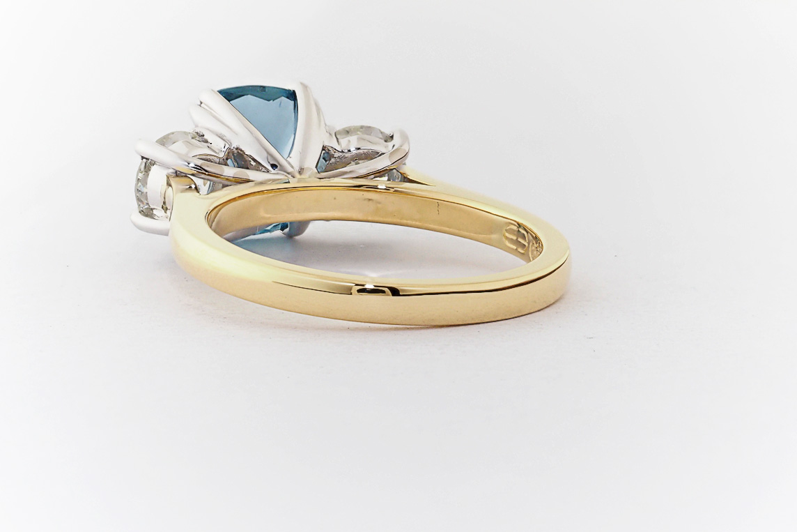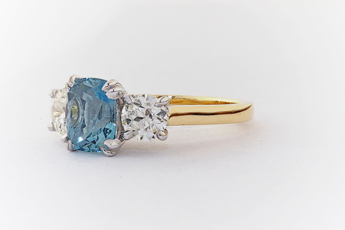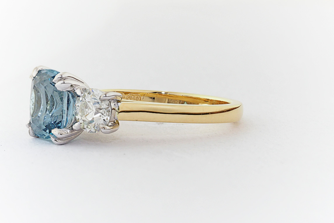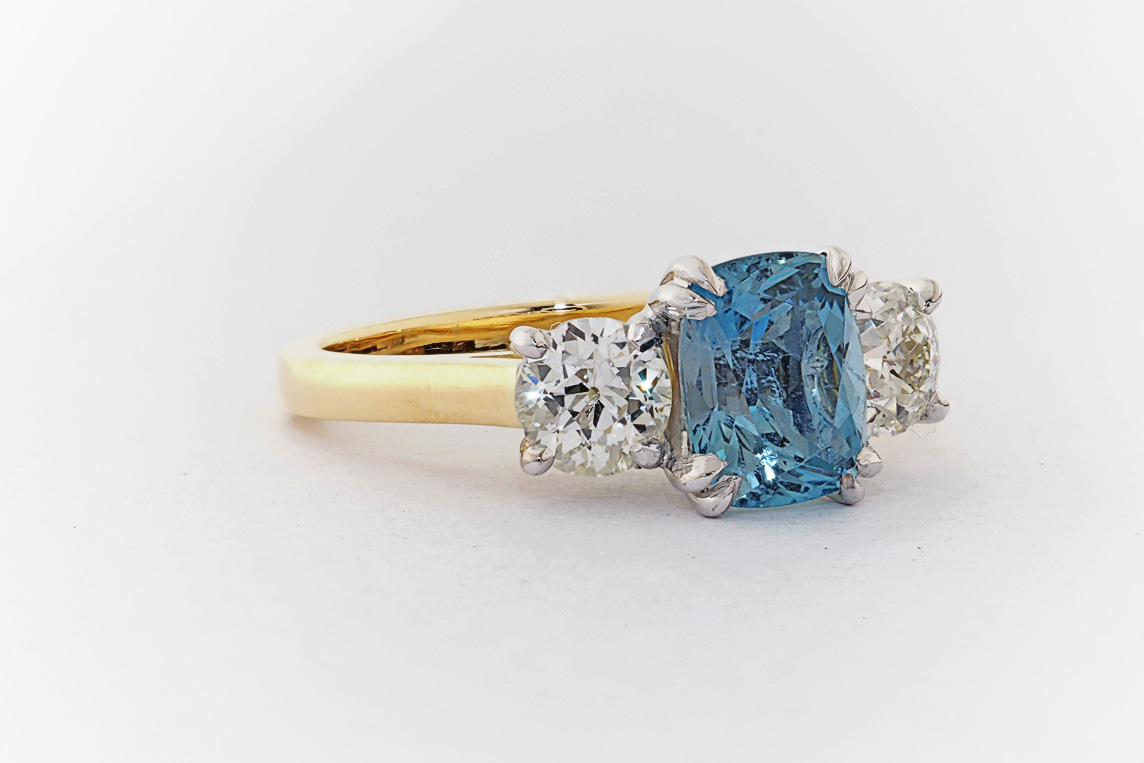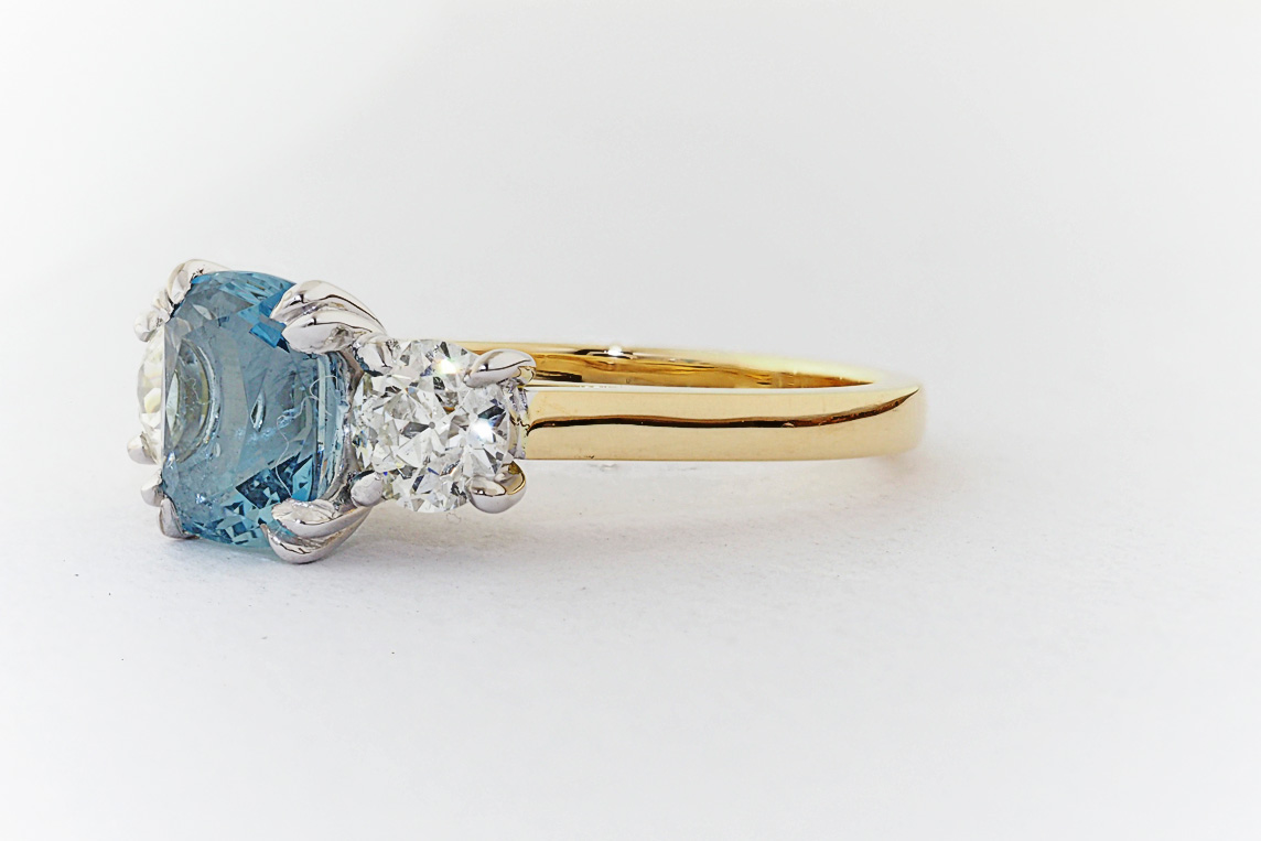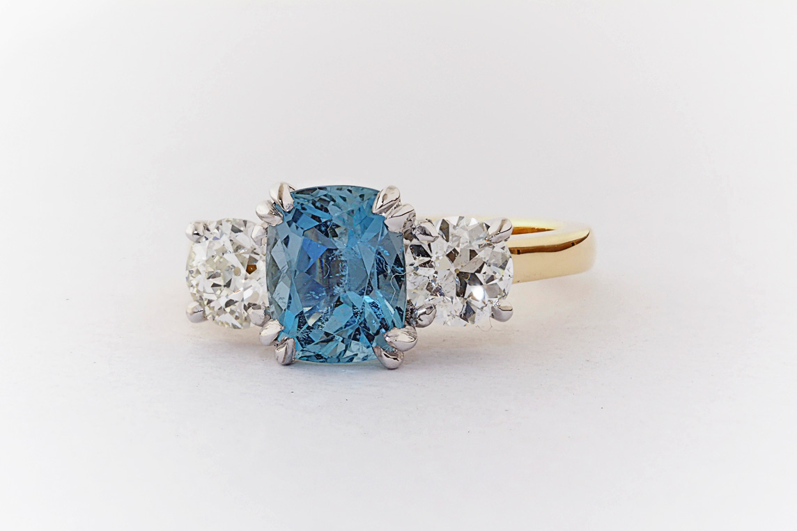 Aquamarine and diamond handmade ladies trilogy engagement ring