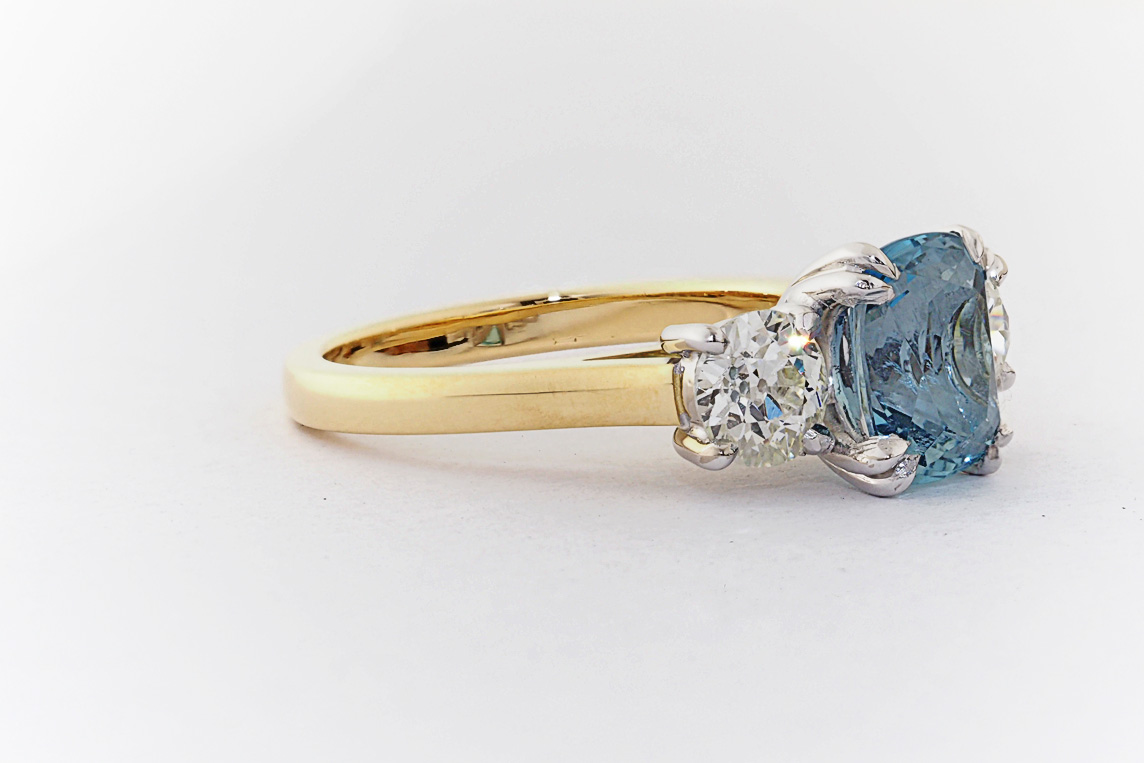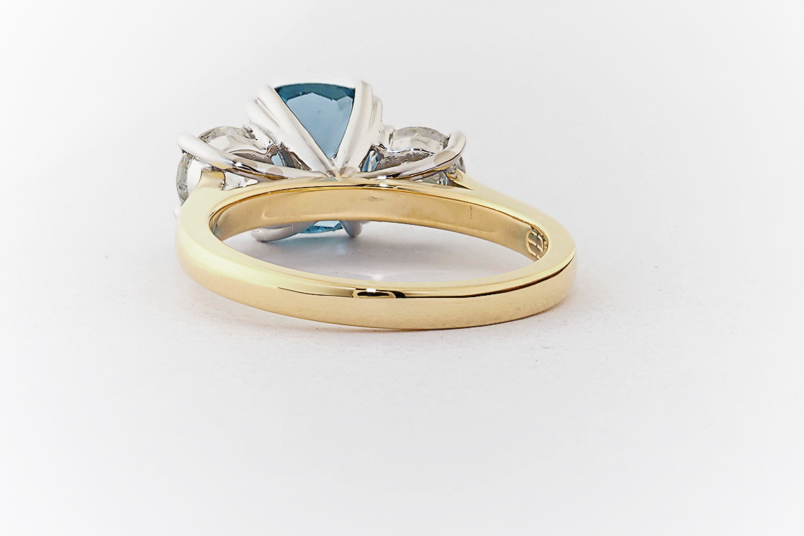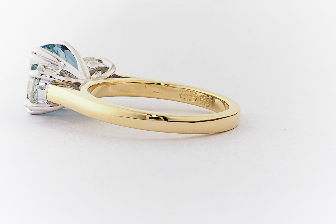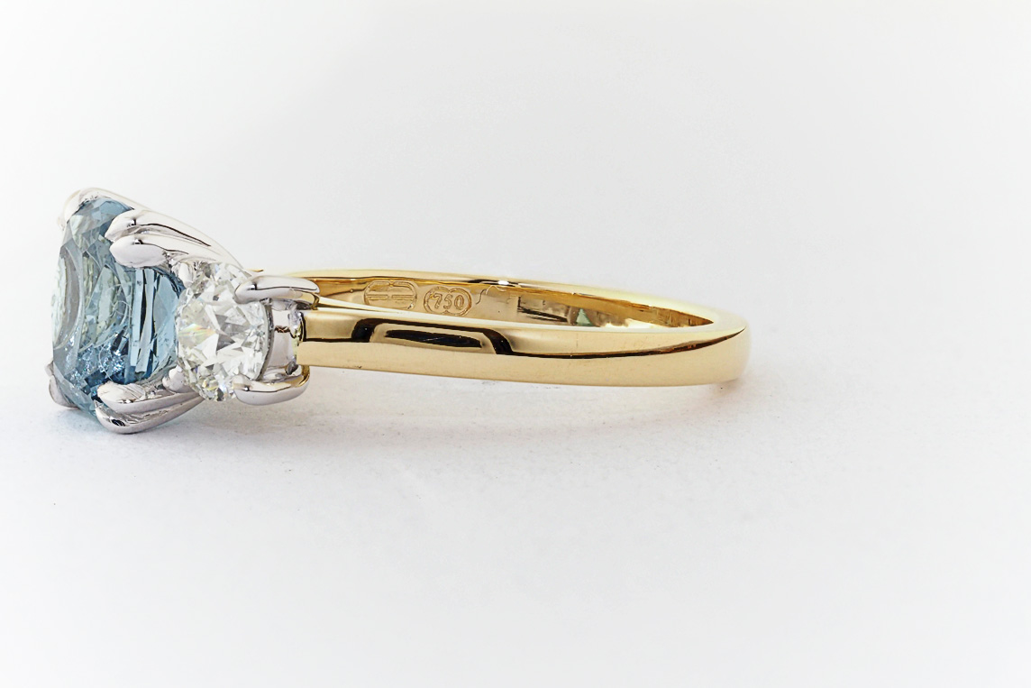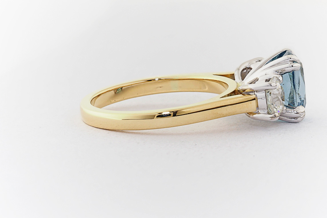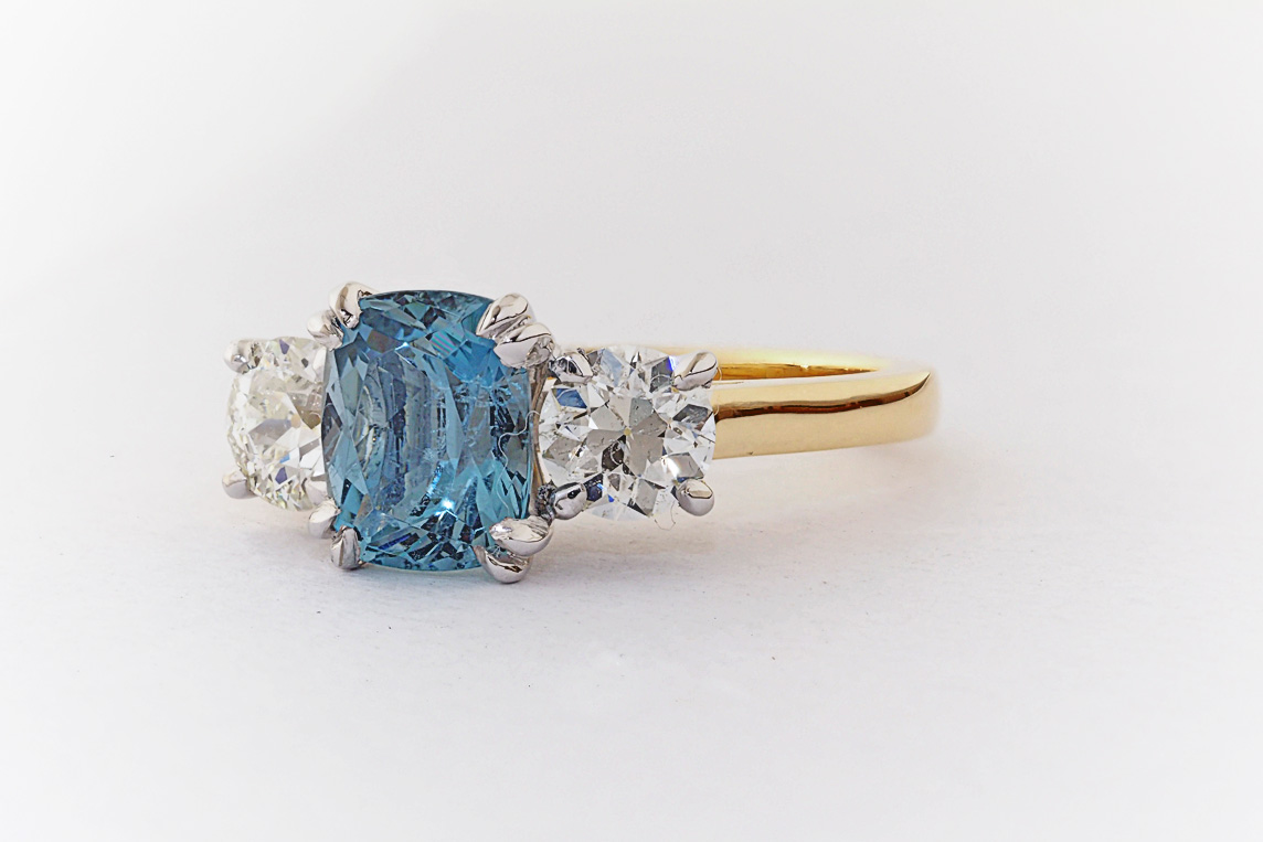 Aquamarine and diamond handmade ladies trilogy engagement ring