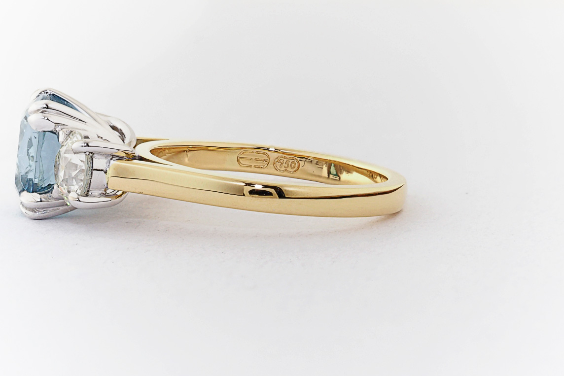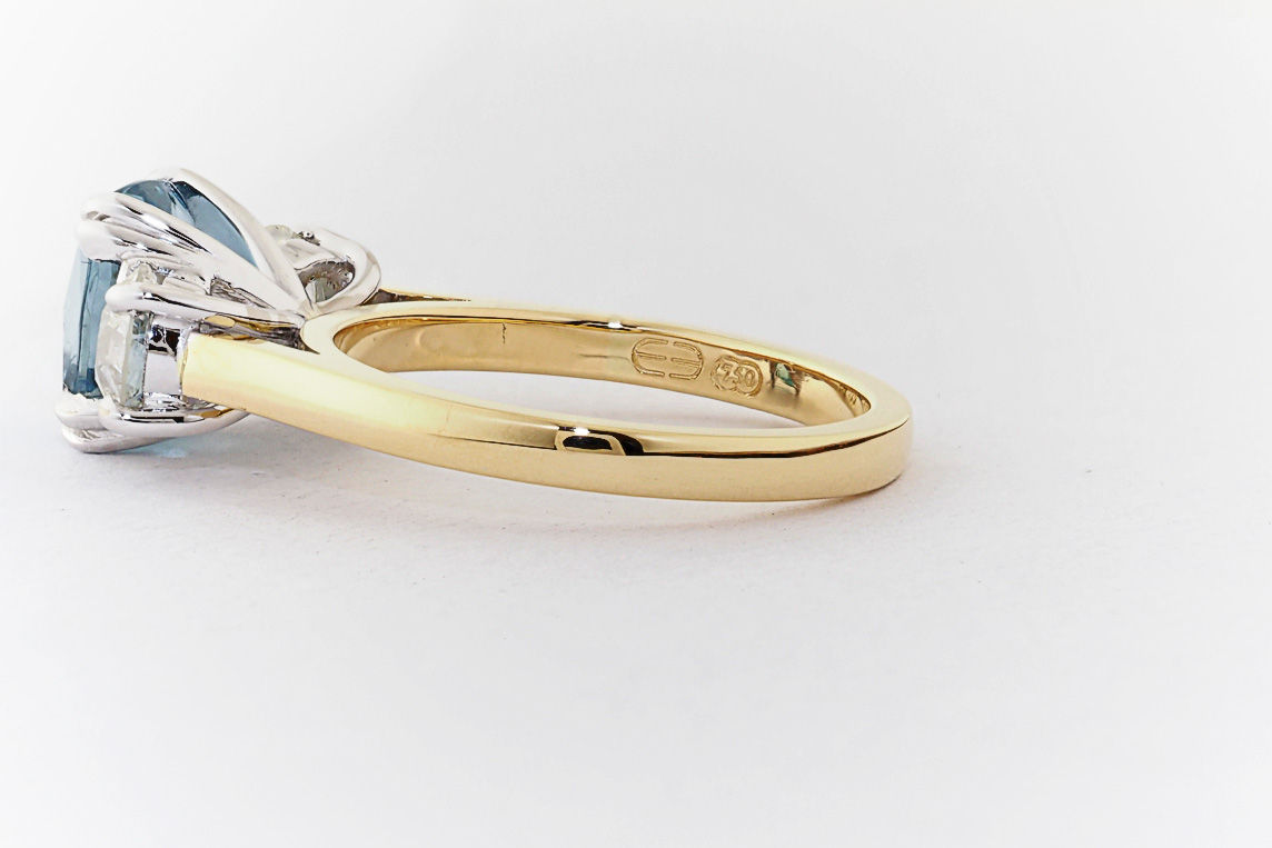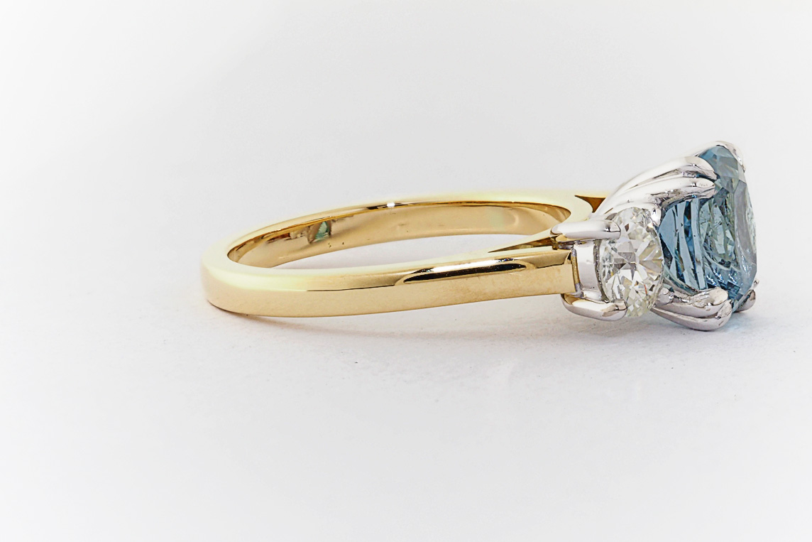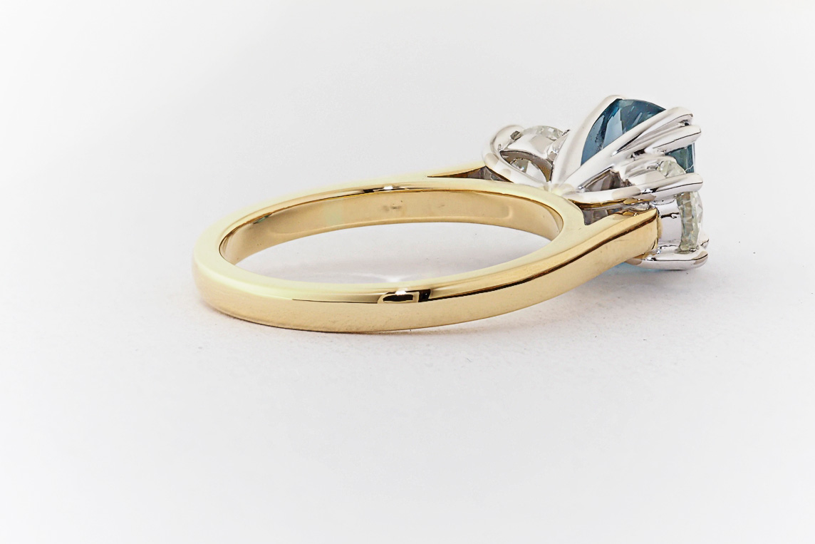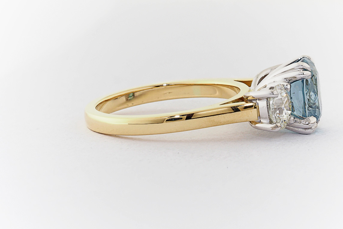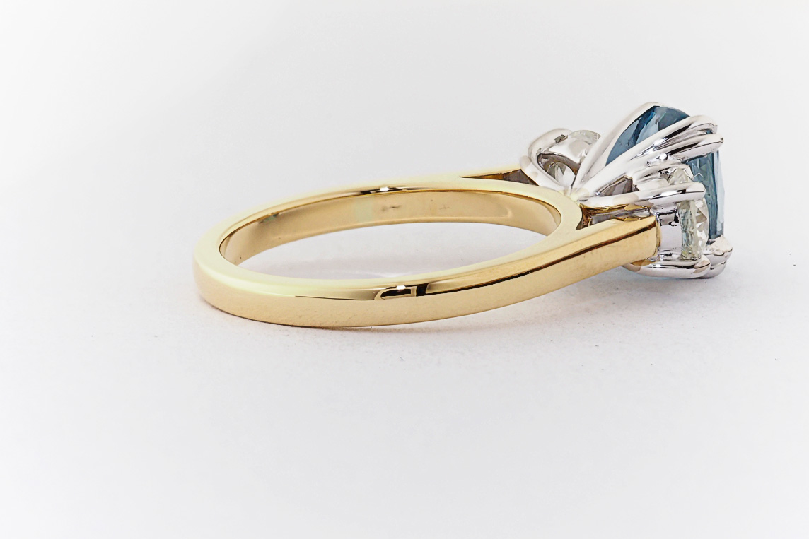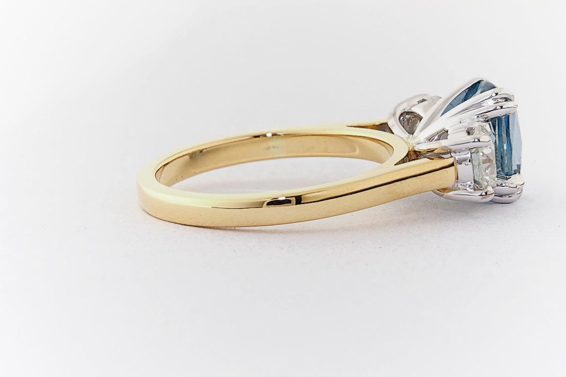 Aquamarine and diamond handmade ladies trilogy engagement ring