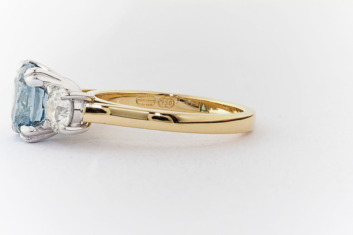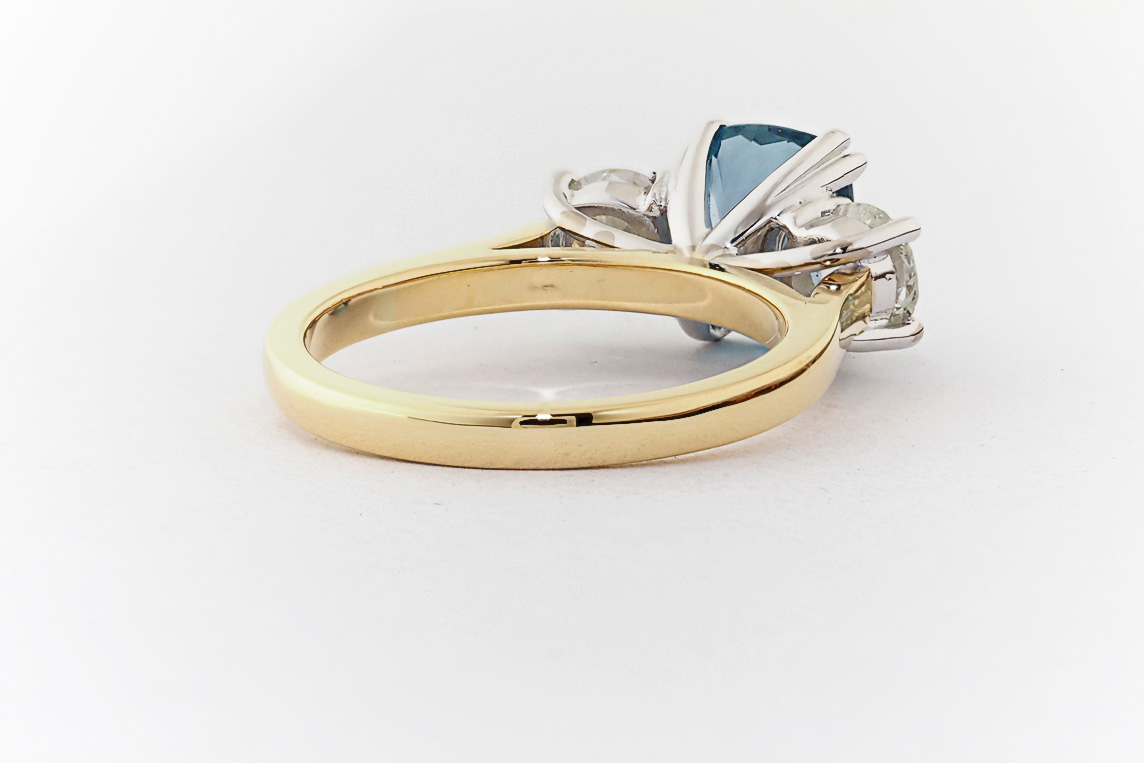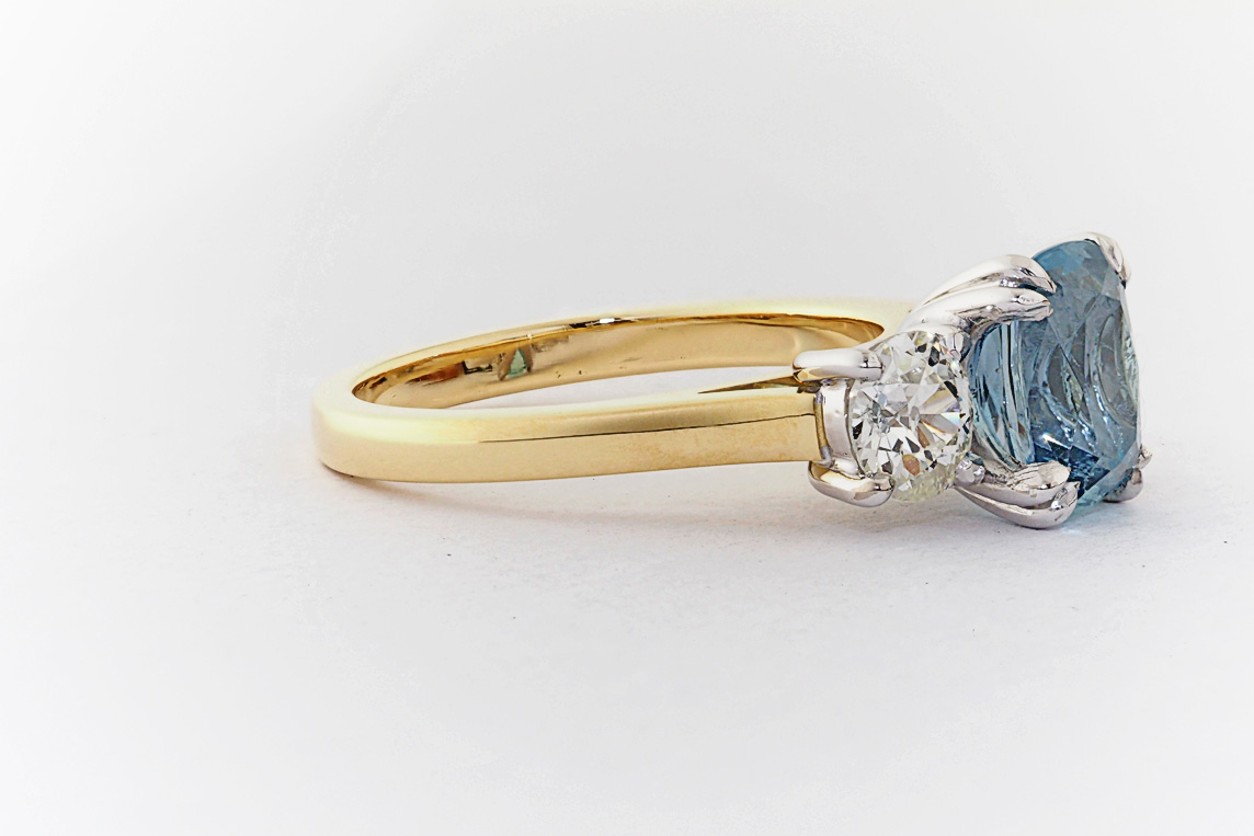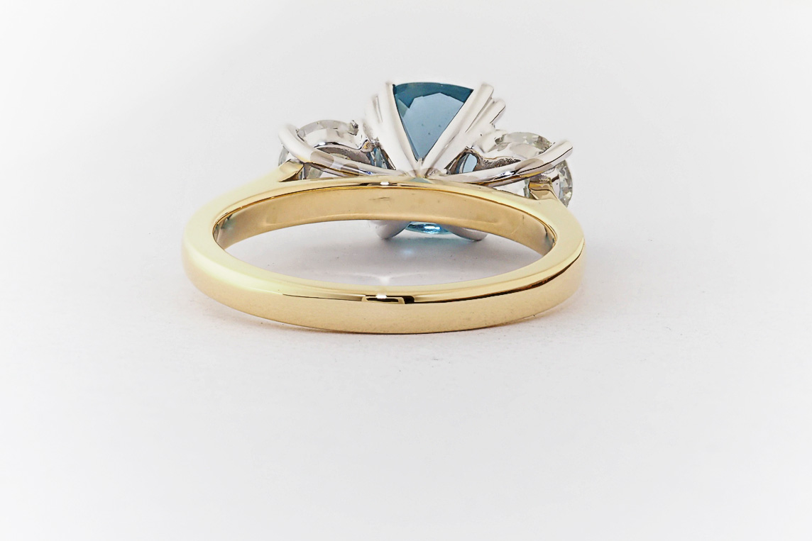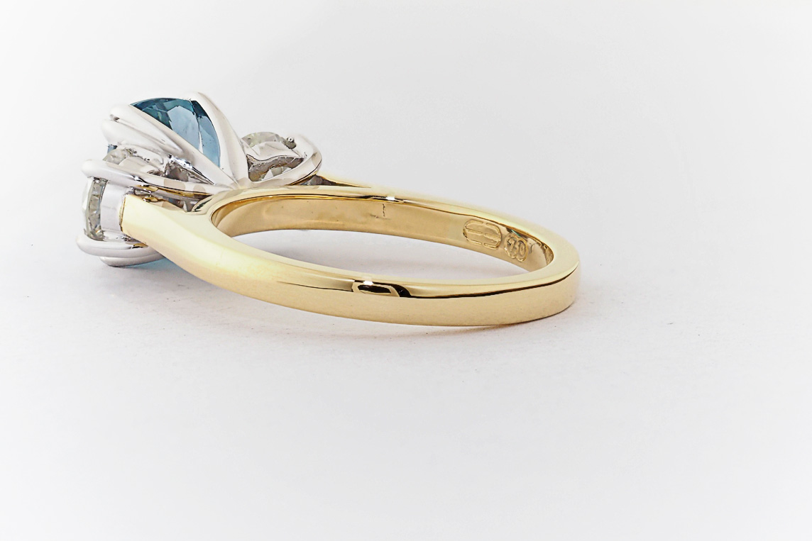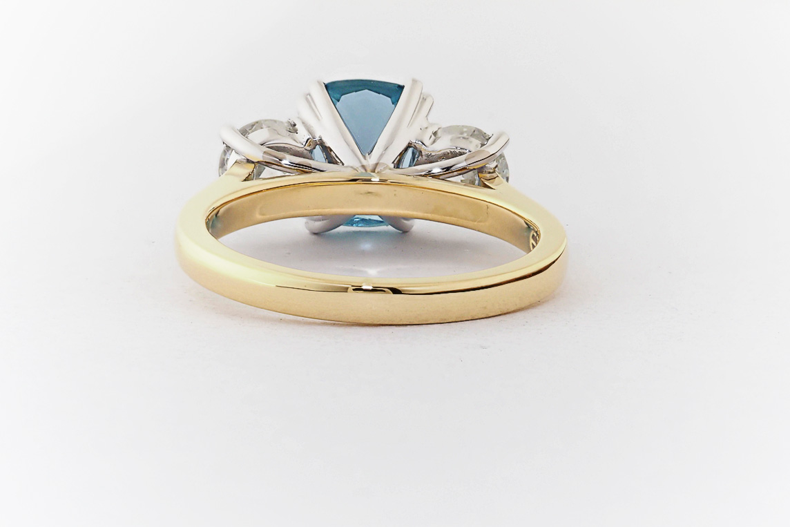 Aquamarine and diamond handmade ladies trilogy engagement ring