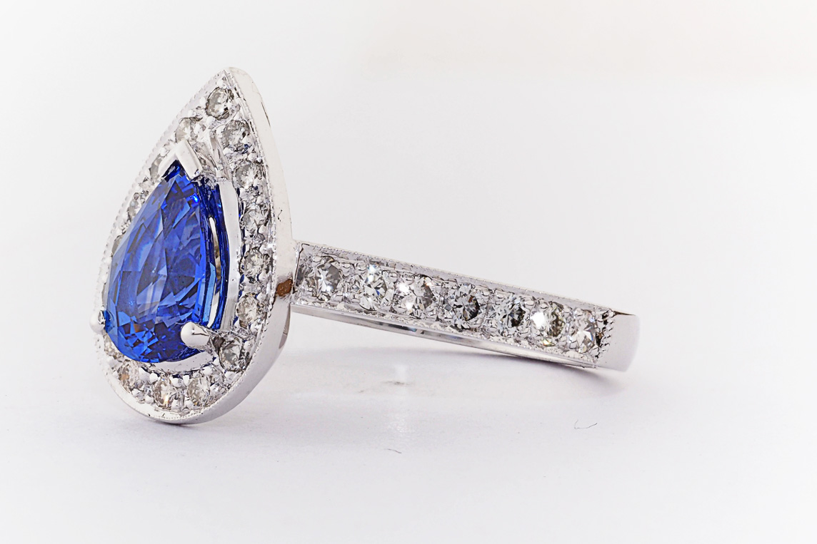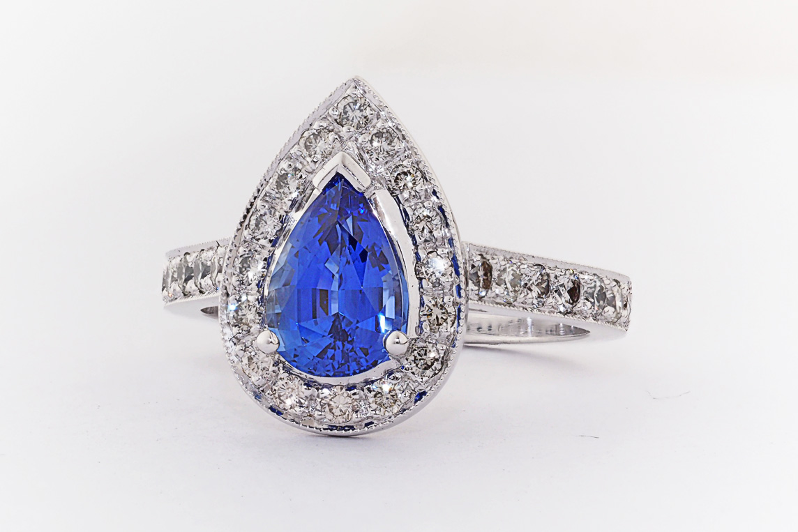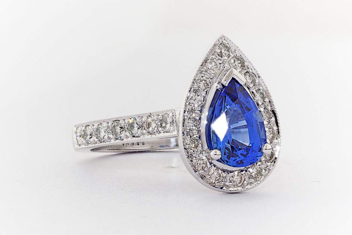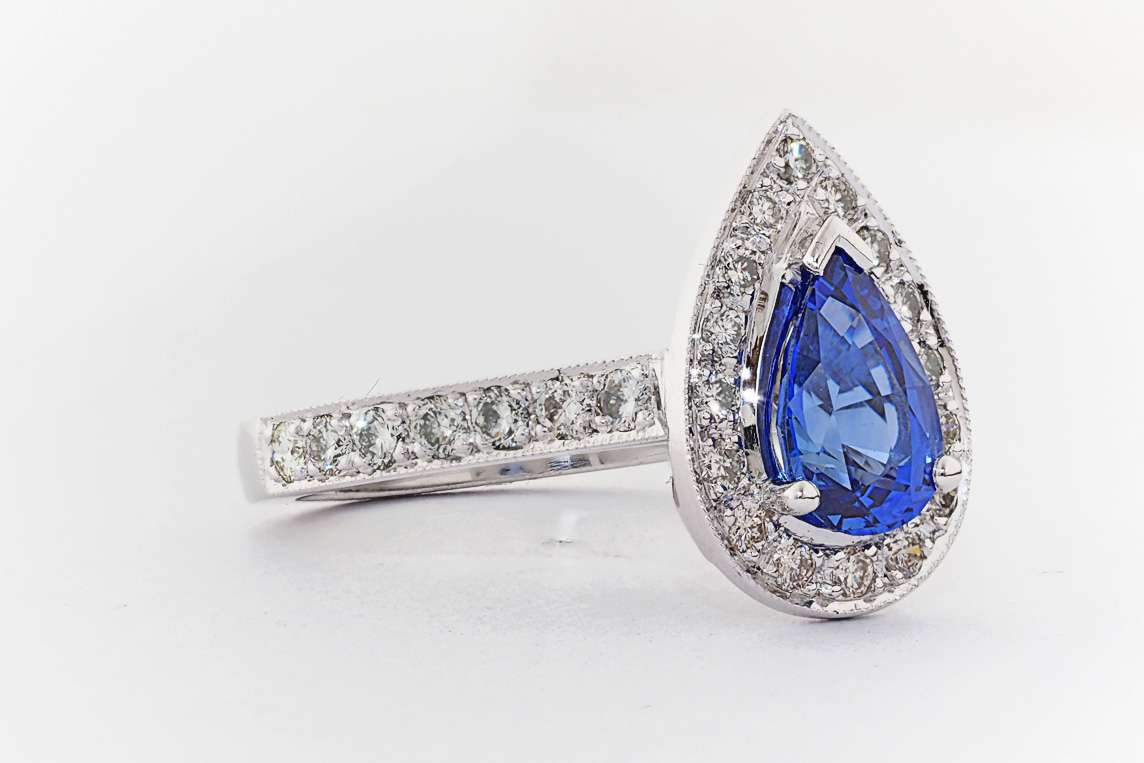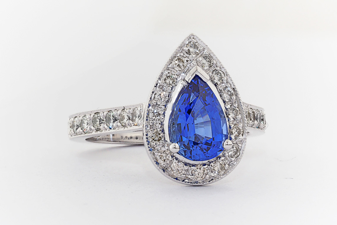 - 1 x 1.42ct pear cut Ceylon sapphire