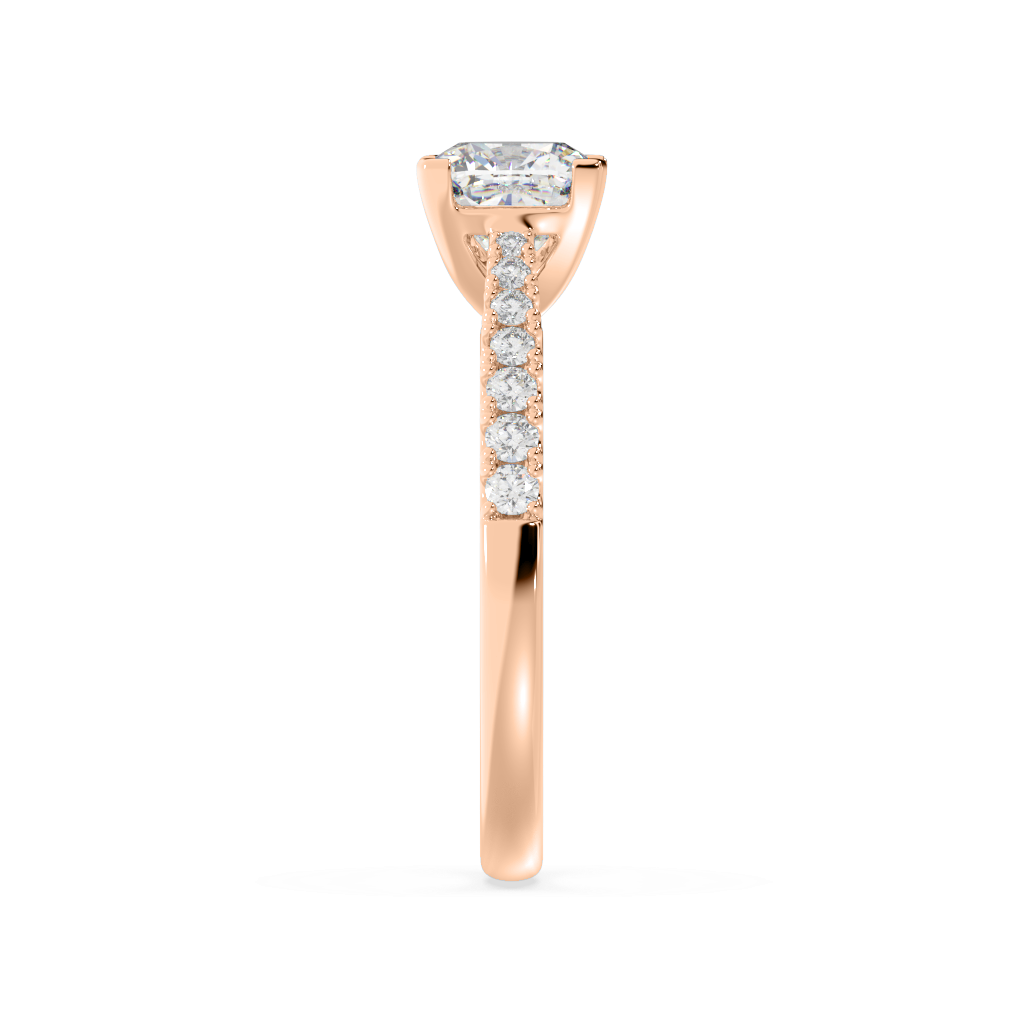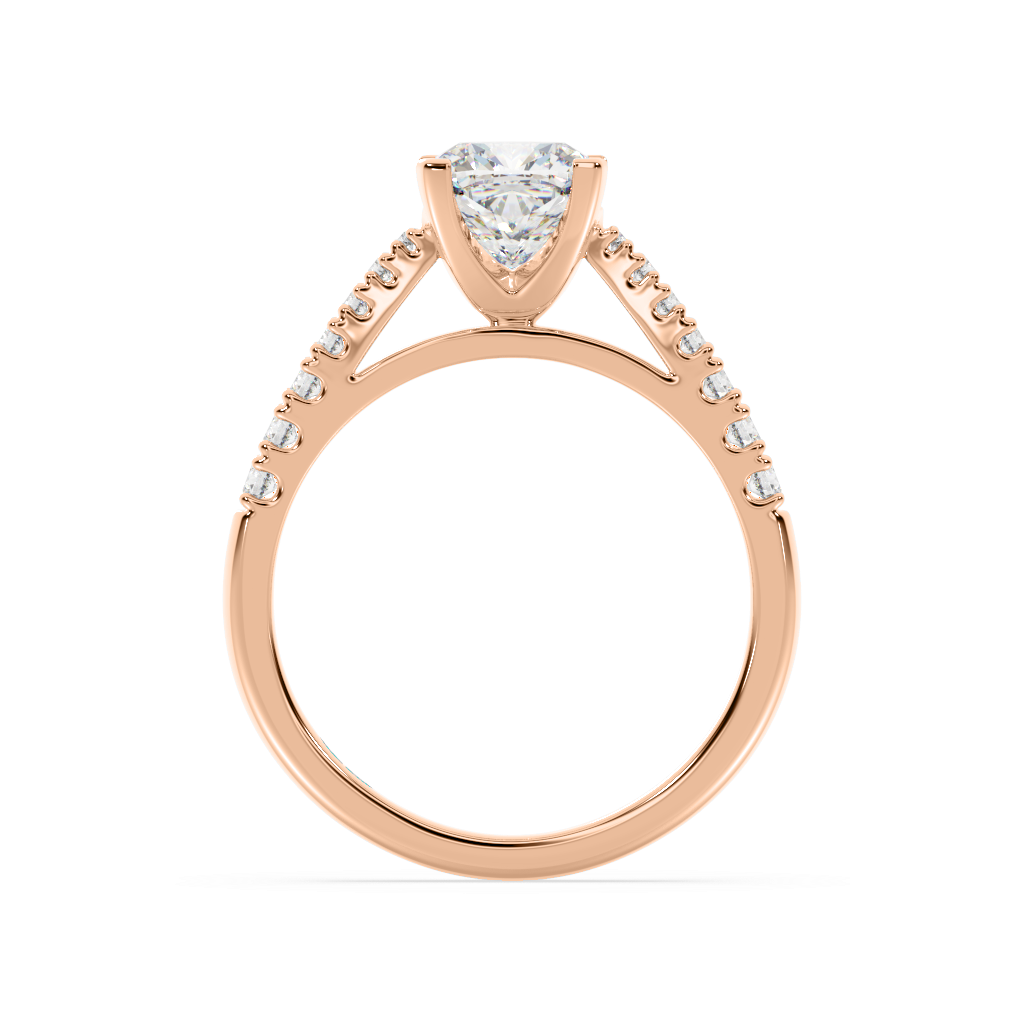 Cushion diamond engagement ring with tapered split shared claw shoulders