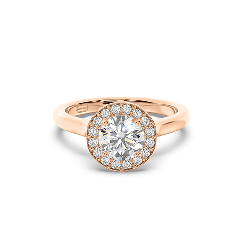 \n Cushion cut centre diamond (1.00ct shown)\n 4 claw setting\n 14 x 0.015ct round brilliant cut diamonds\n Split shared claw set into halo\n Tapering in size, TDW approx. 0.21ct\n Under rail style band\n High dome band profile\n 2.20mm wide band\n