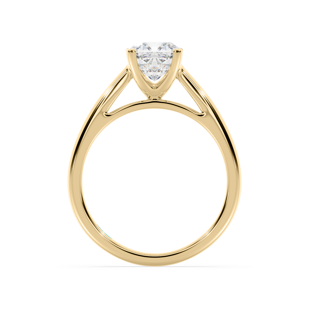 \n Cushion cut centre diamond (1.00ct shown)\n 4 claw setting\n Under rail style band\n High dome band profile\n 2.20mm wide band\n