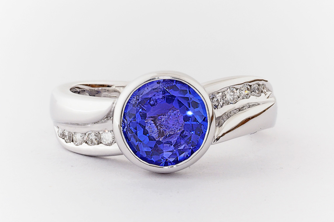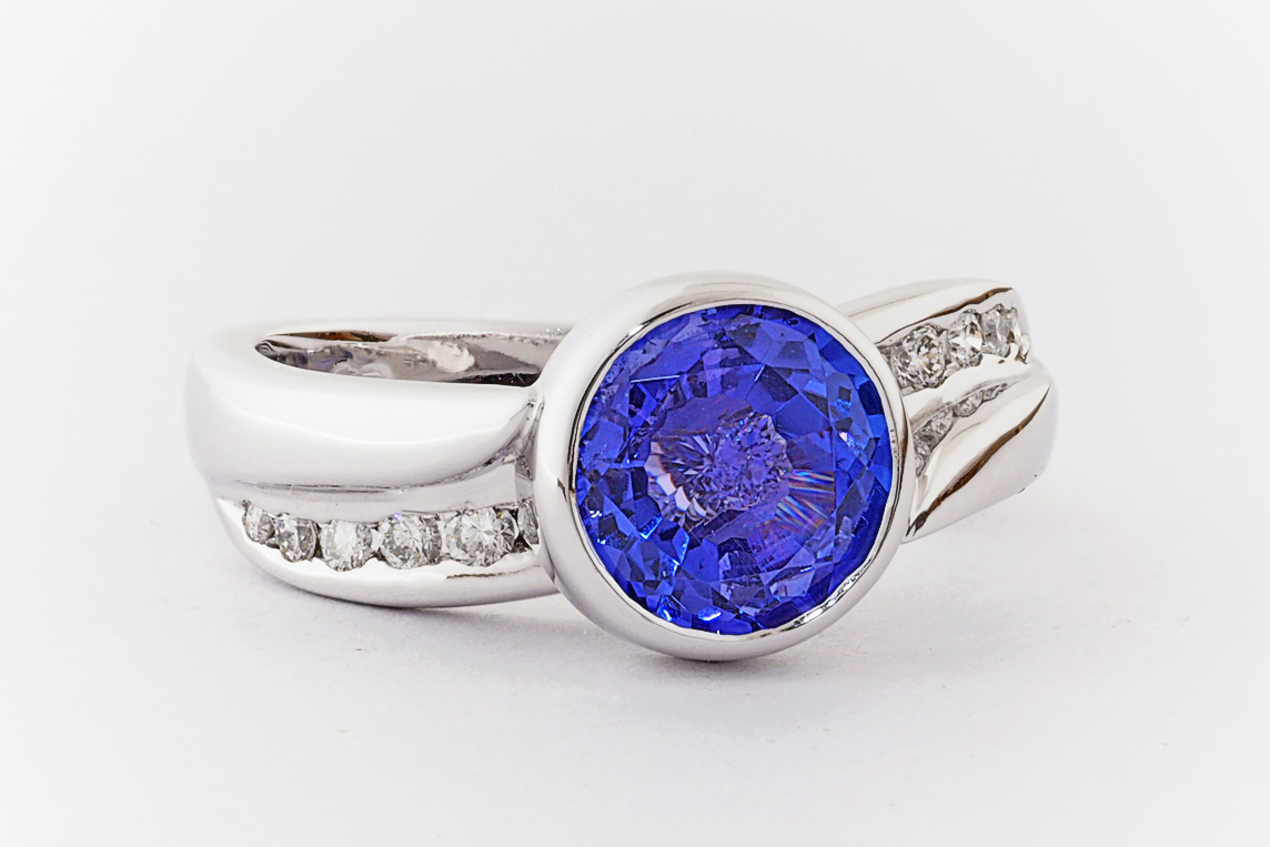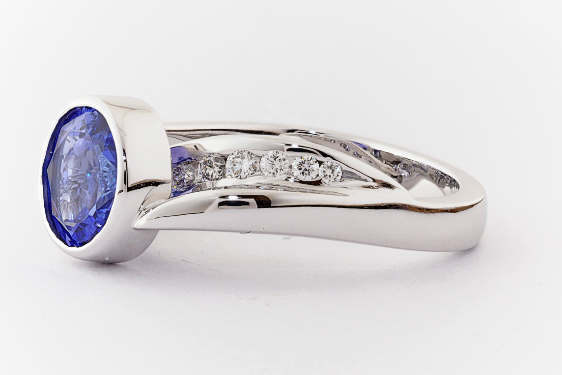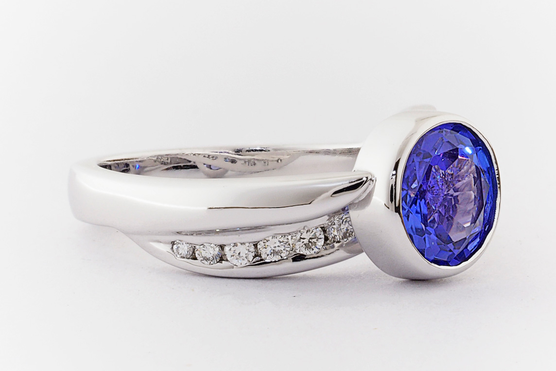 18ct white gold, tanzanite and diamond ladies ring quantity