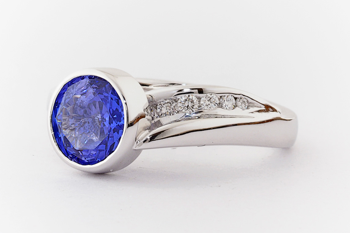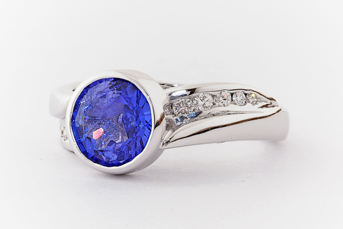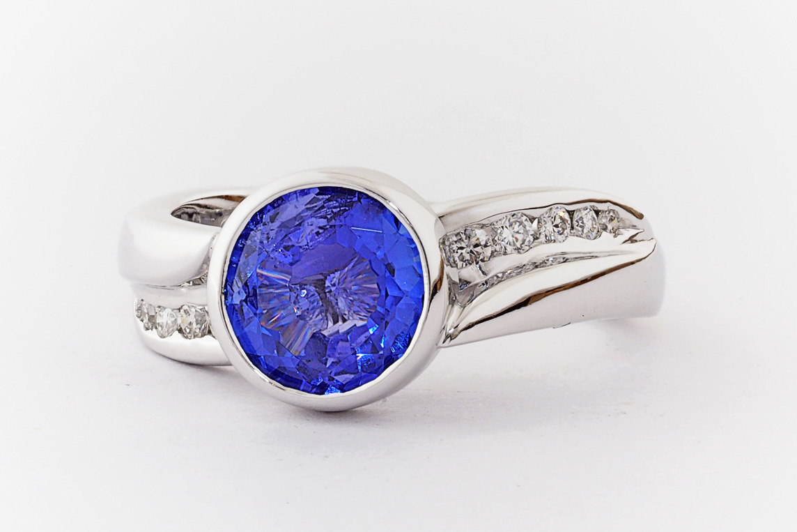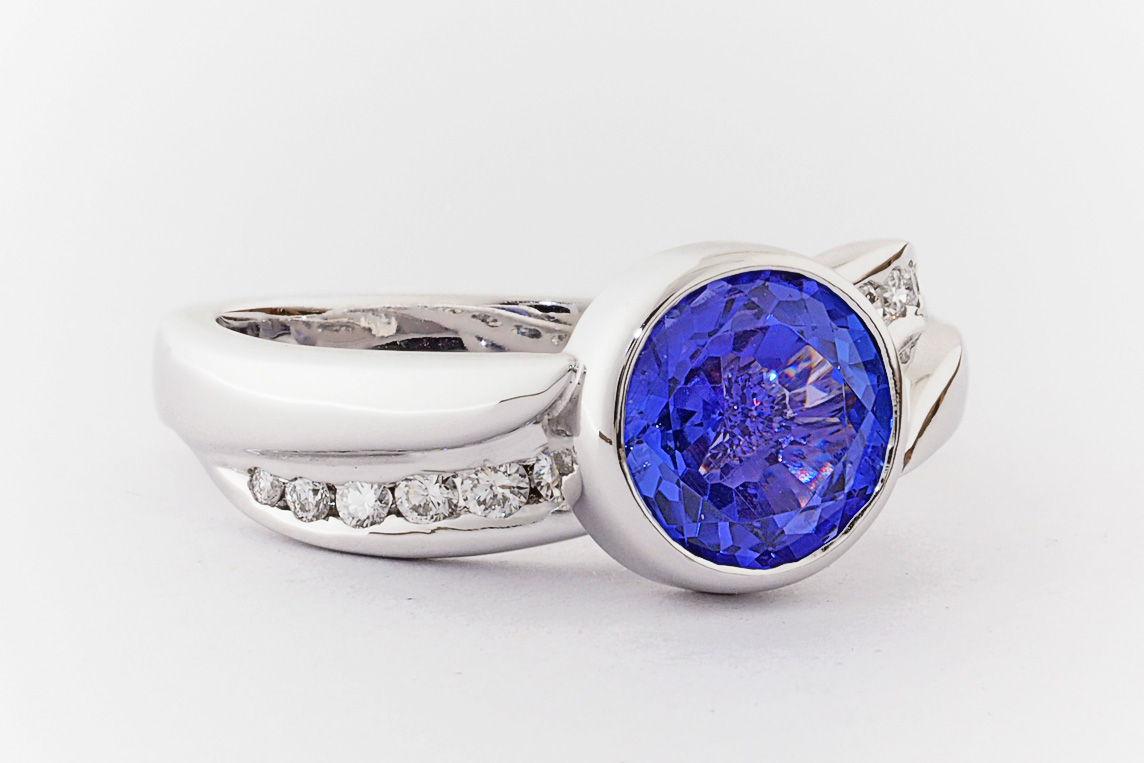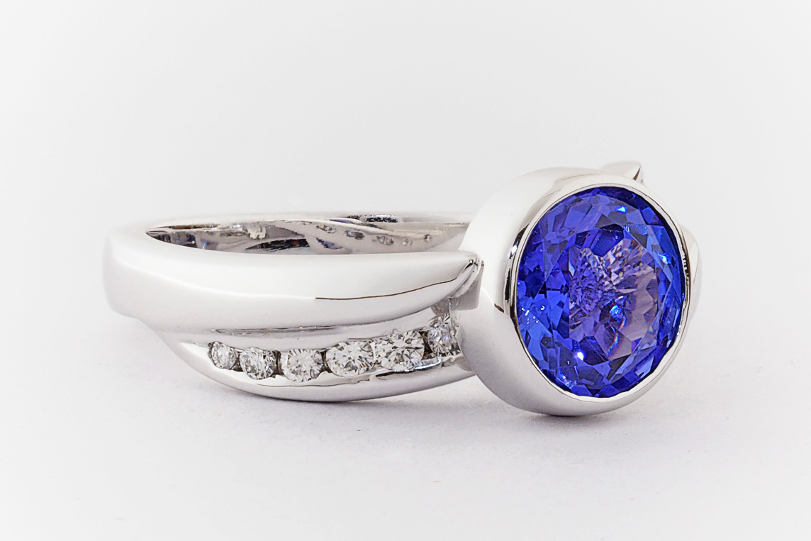 18ct white gold, tanzanite and diamond ladies ring quantity