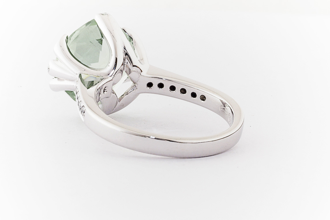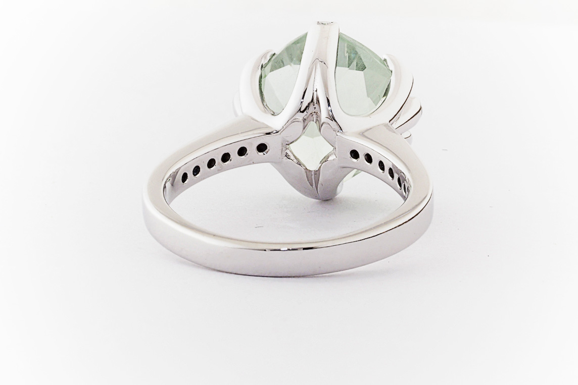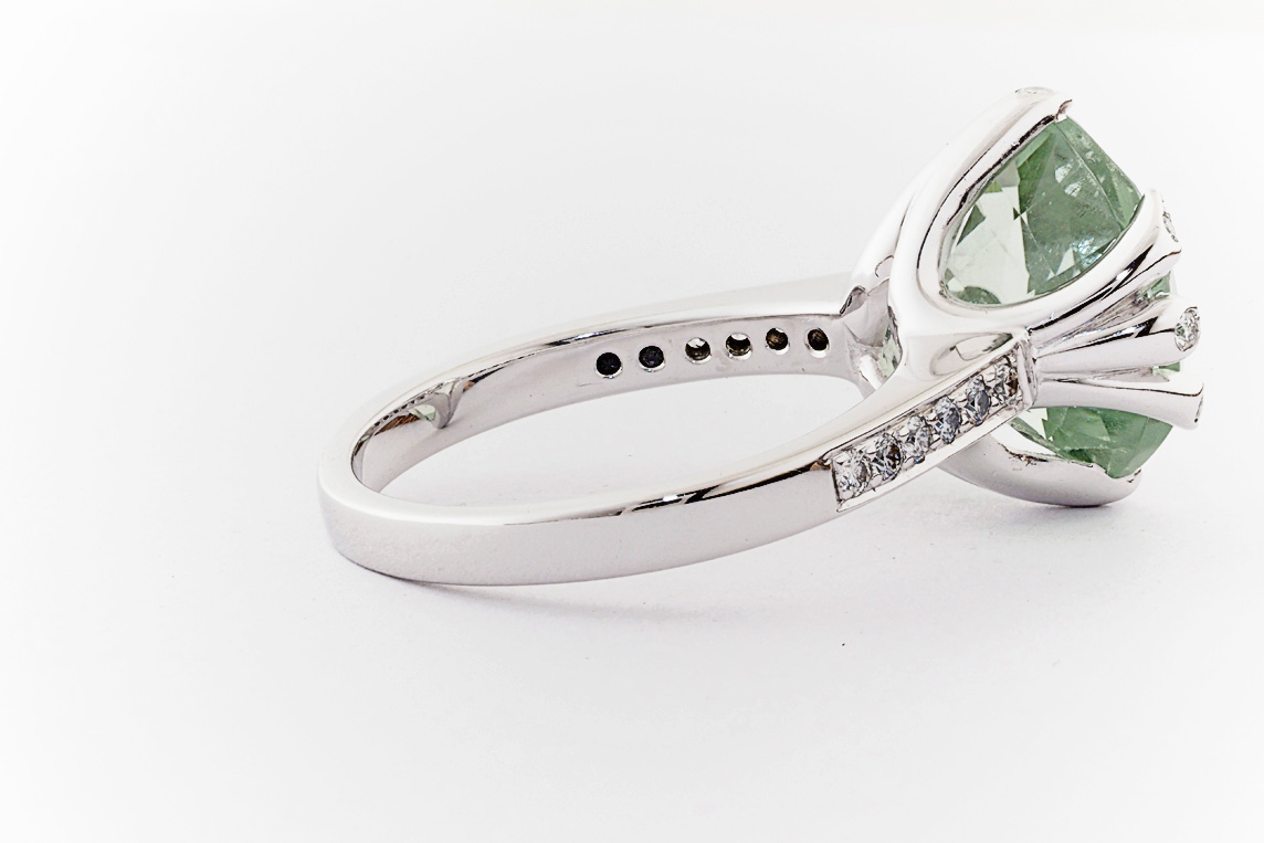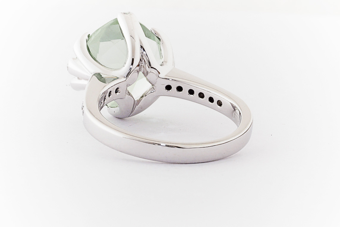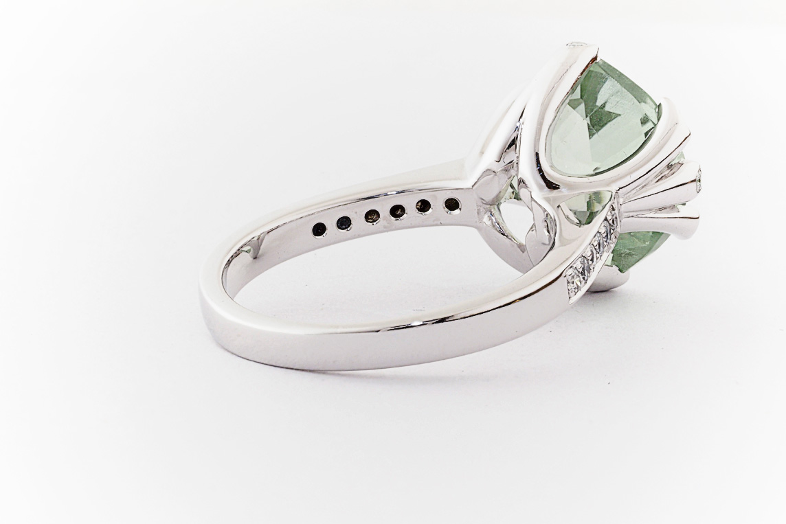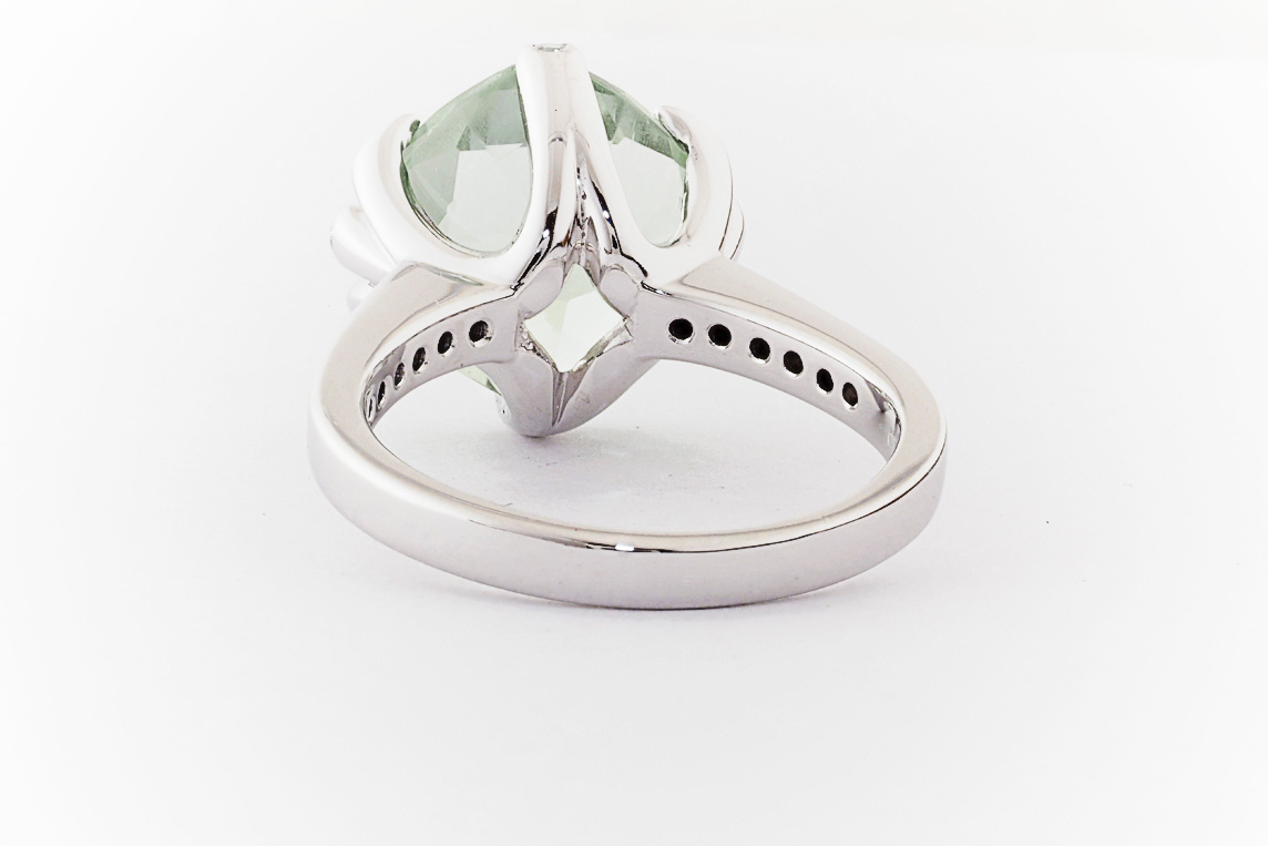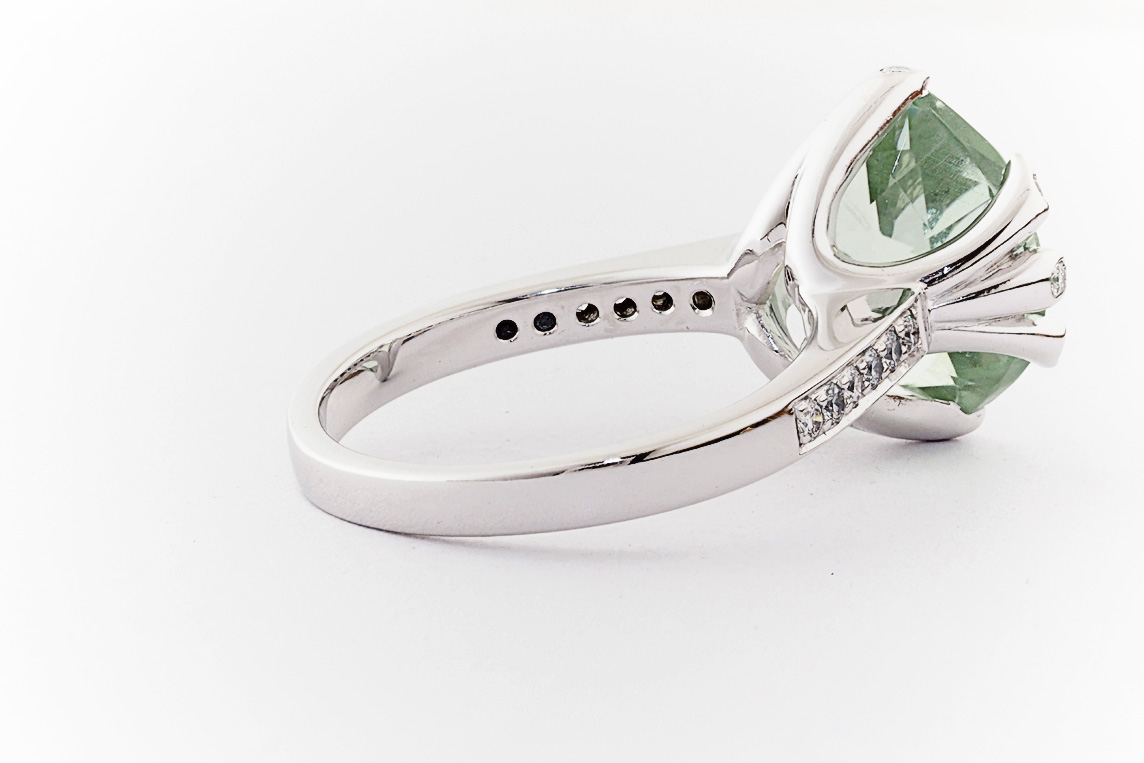 18ct white gold, green amethyst, and diamond handmade ring