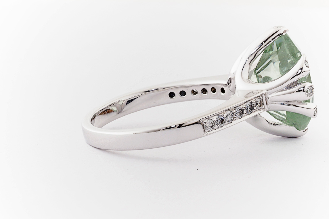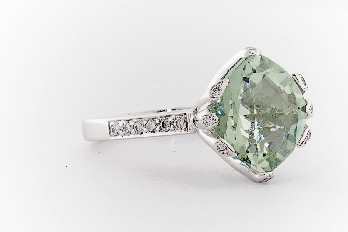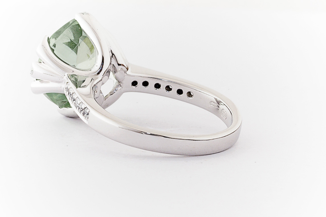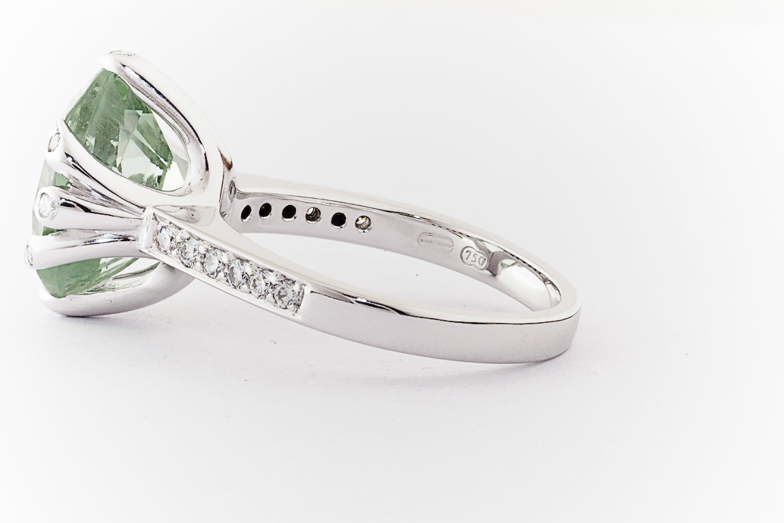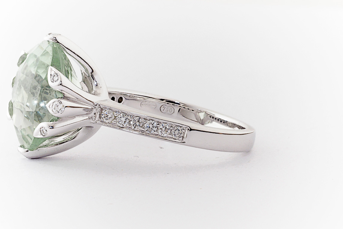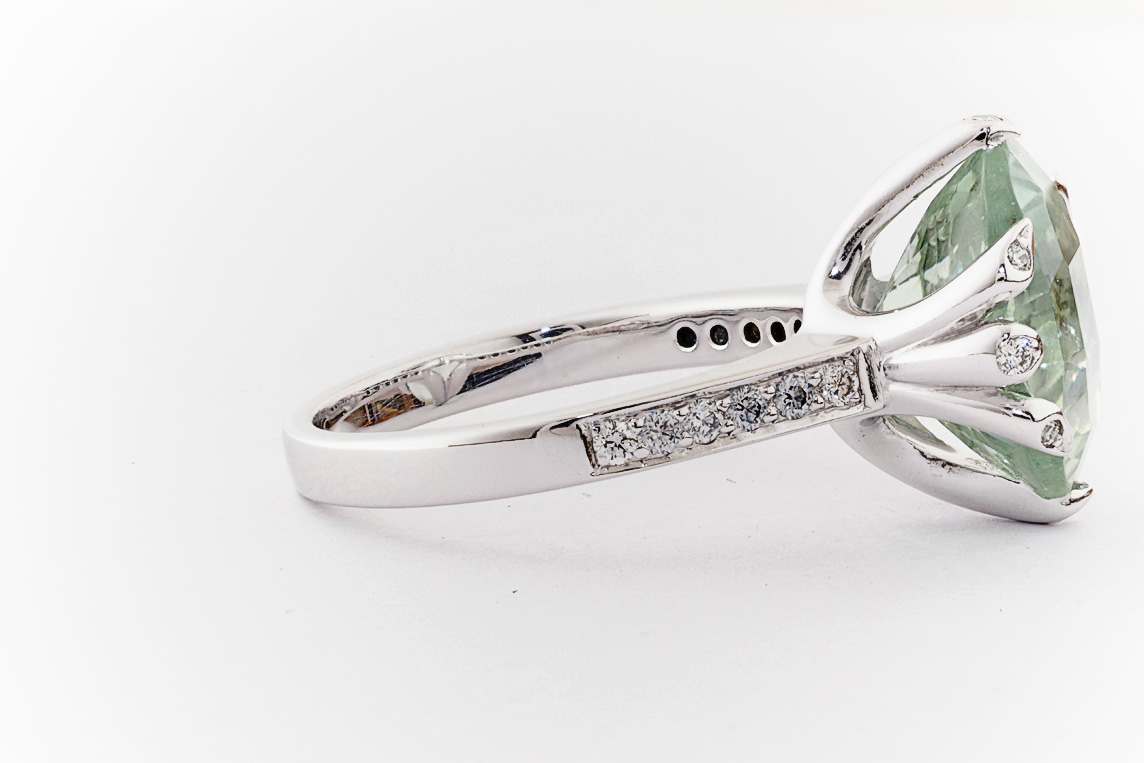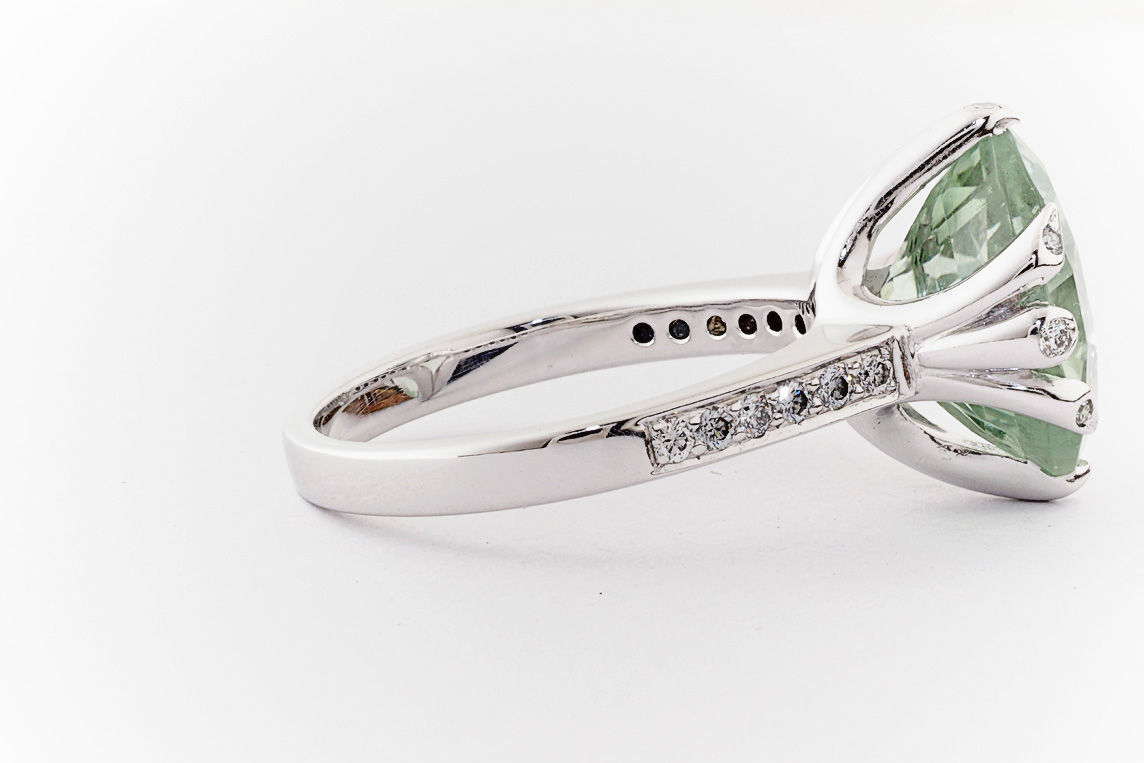 18ct white gold, green amethyst, and diamond handmade ring