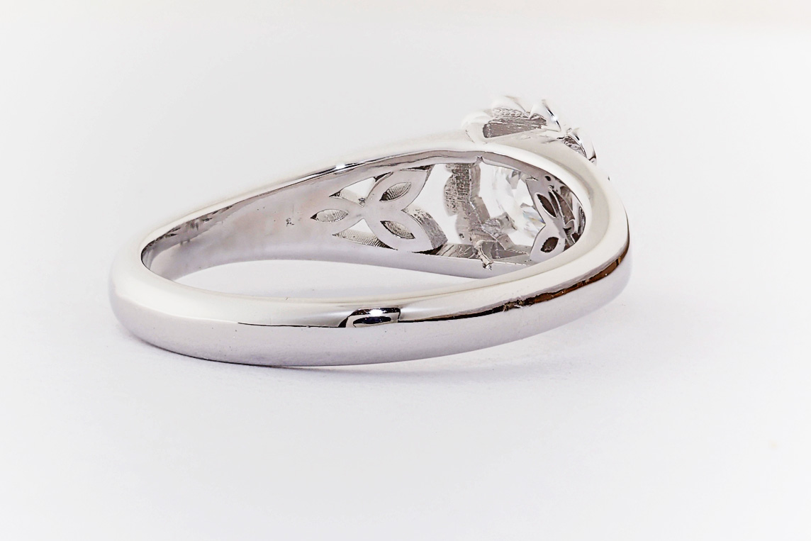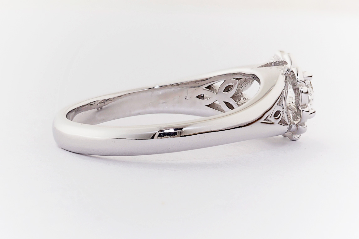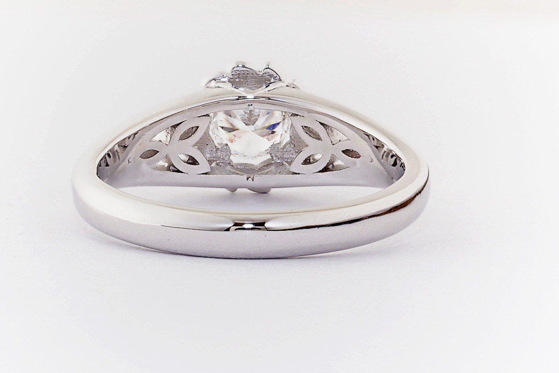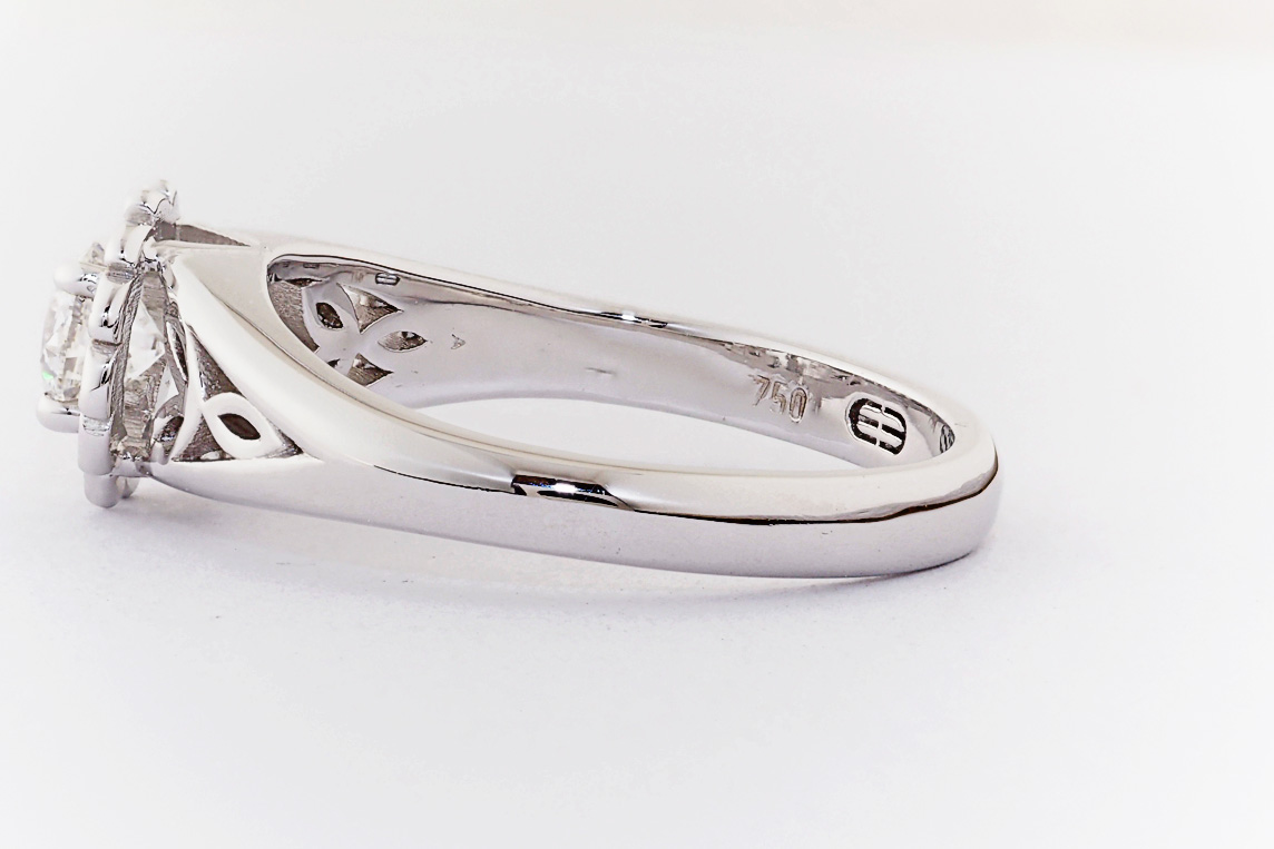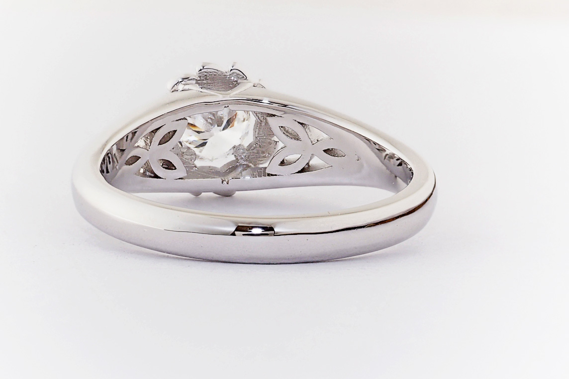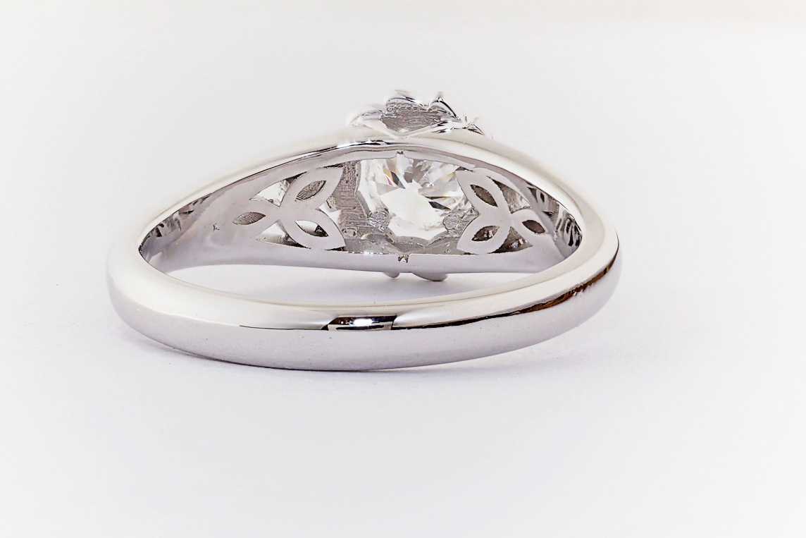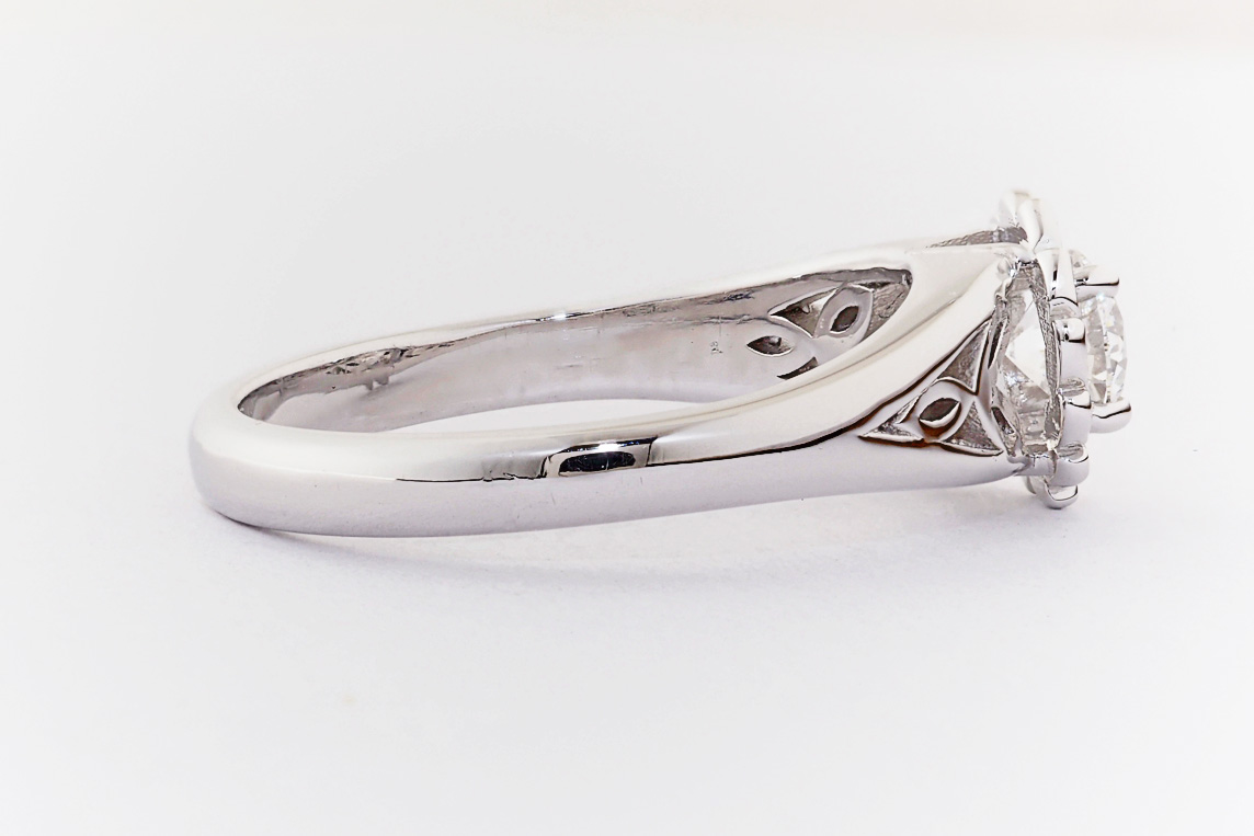 SKU: 22529 Category: Custom Engagement Rings Tags: 0.50ct, 0.53ct, 0.55ct, Celtic, halo, leaf, pattern, white gold
