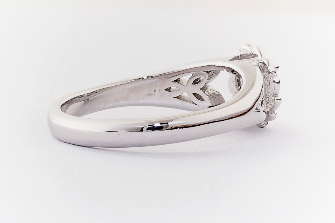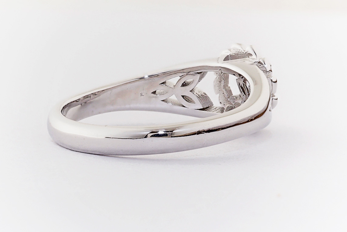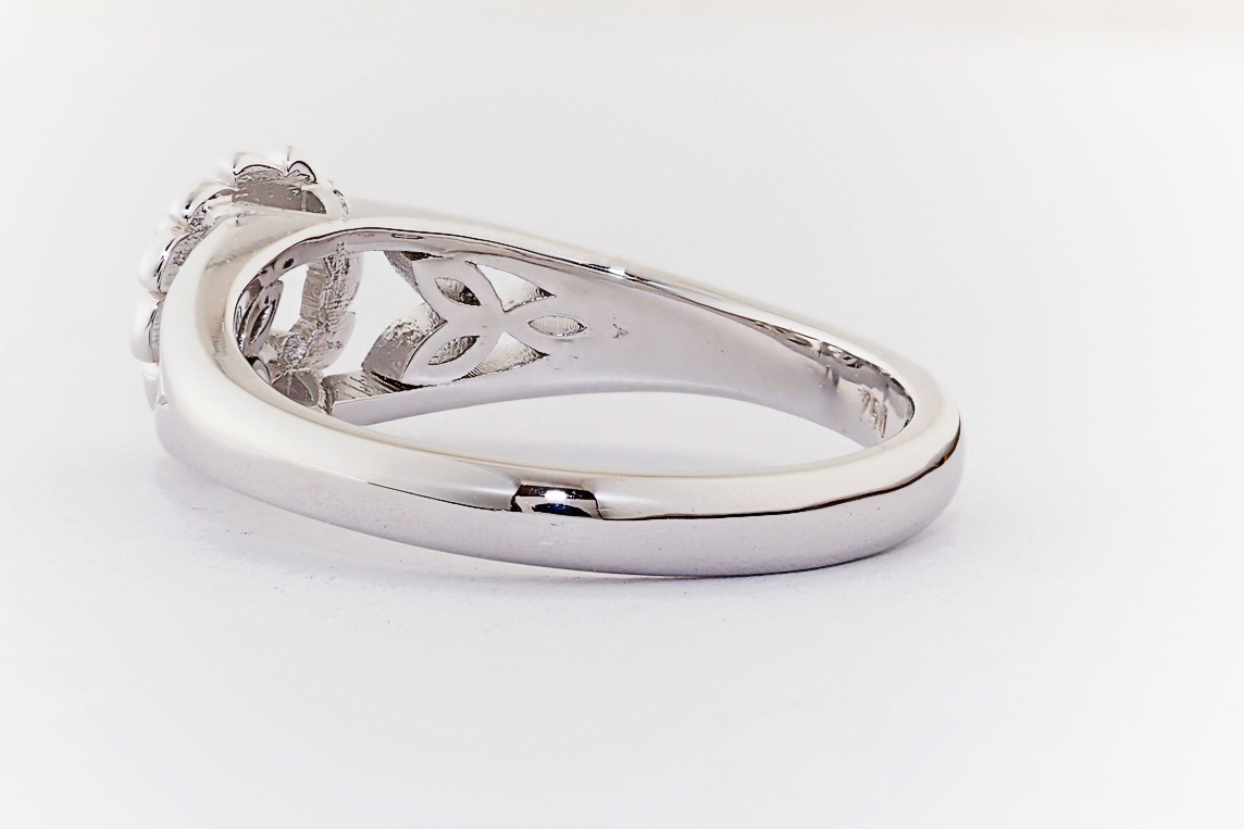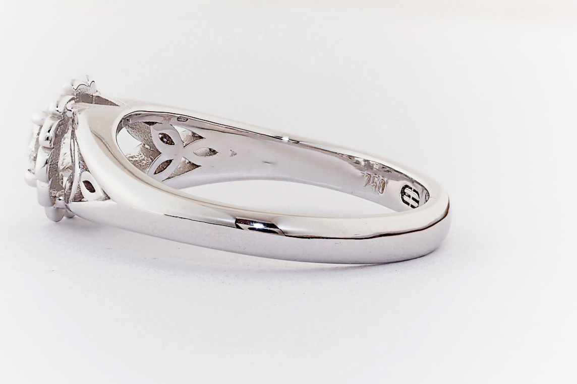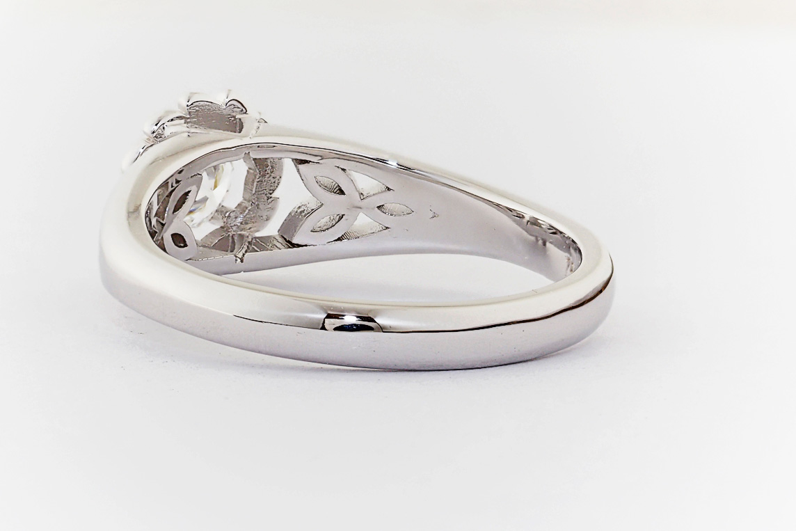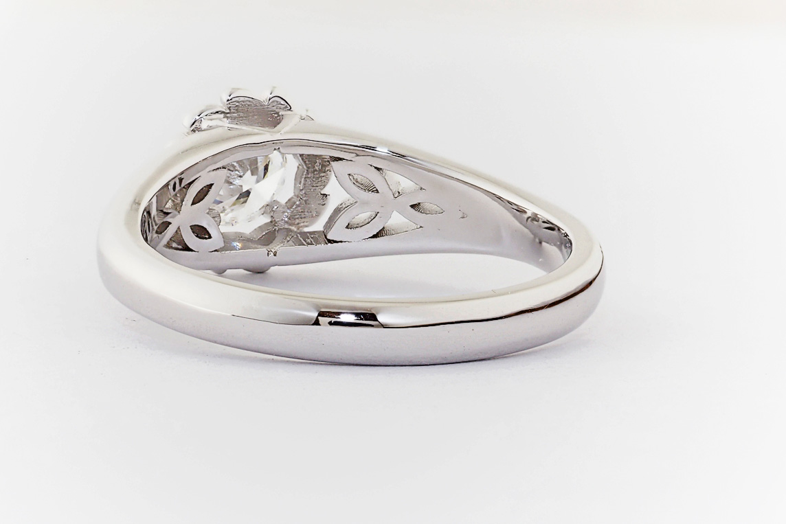 SKU: 22529 Category: Custom Engagement Rings Tags: 0.50ct, 0.53ct, 0.55ct, Celtic, halo, leaf, pattern, white gold
