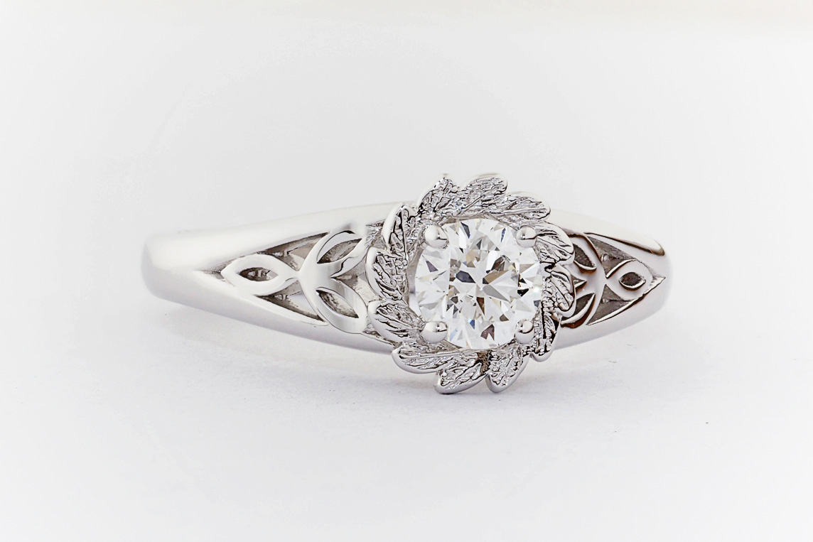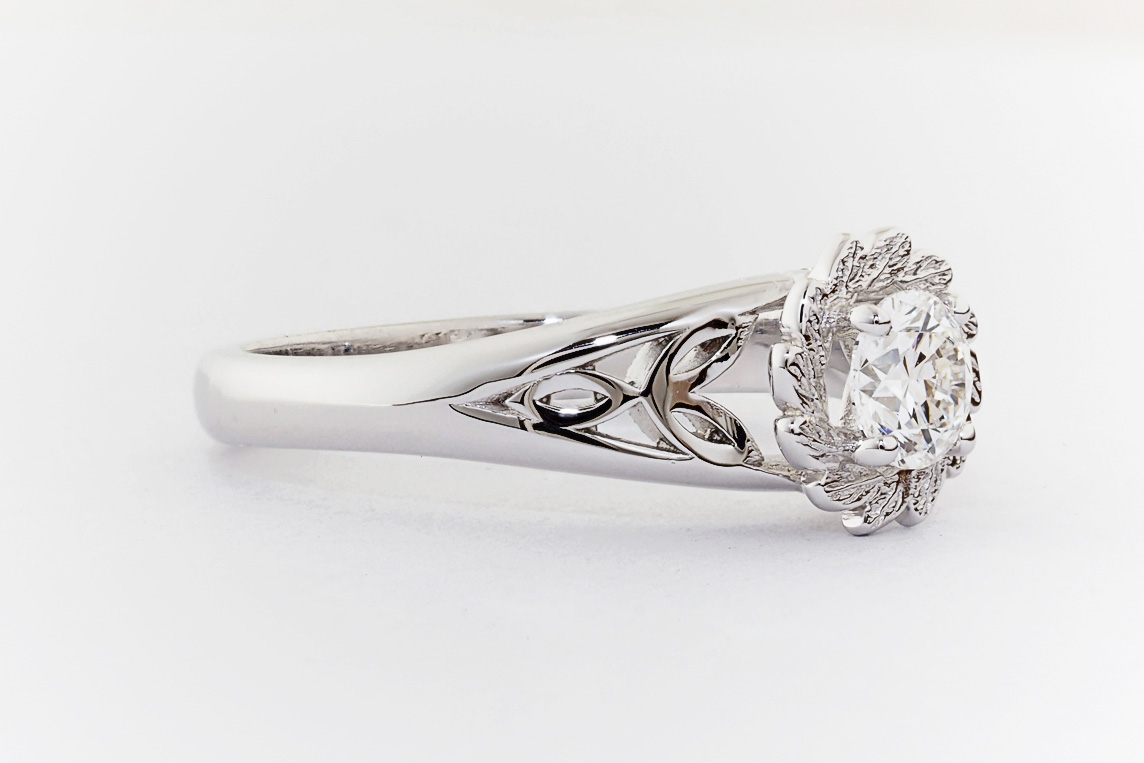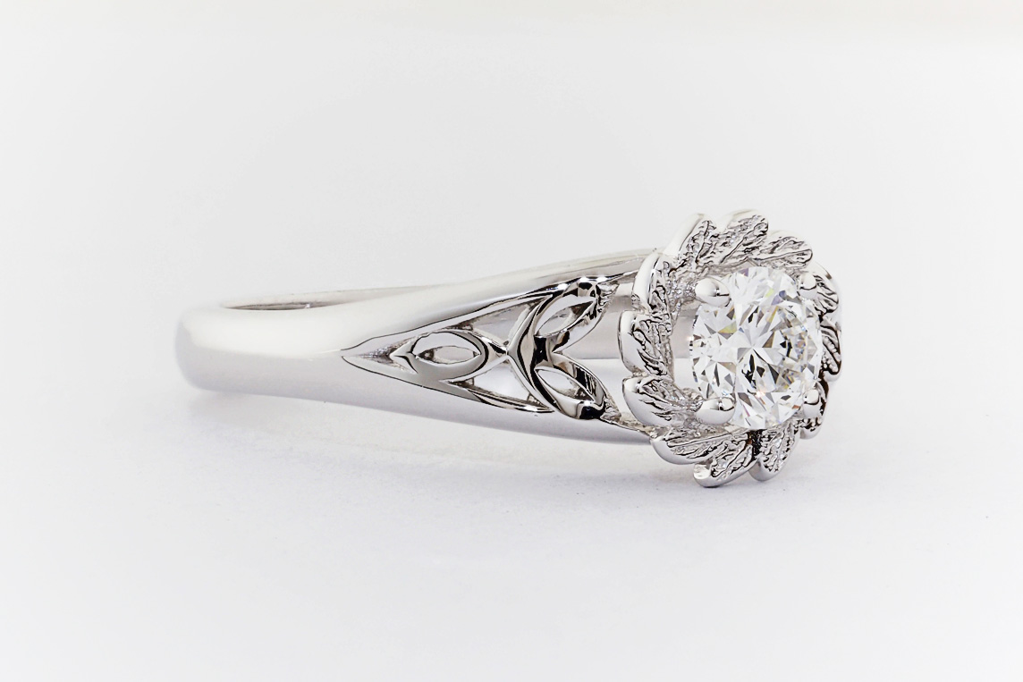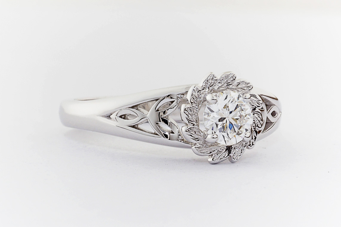 Home / Rings / Custom Engagement Rings / Lab Diamond with Leaf Halo Engagement Ring