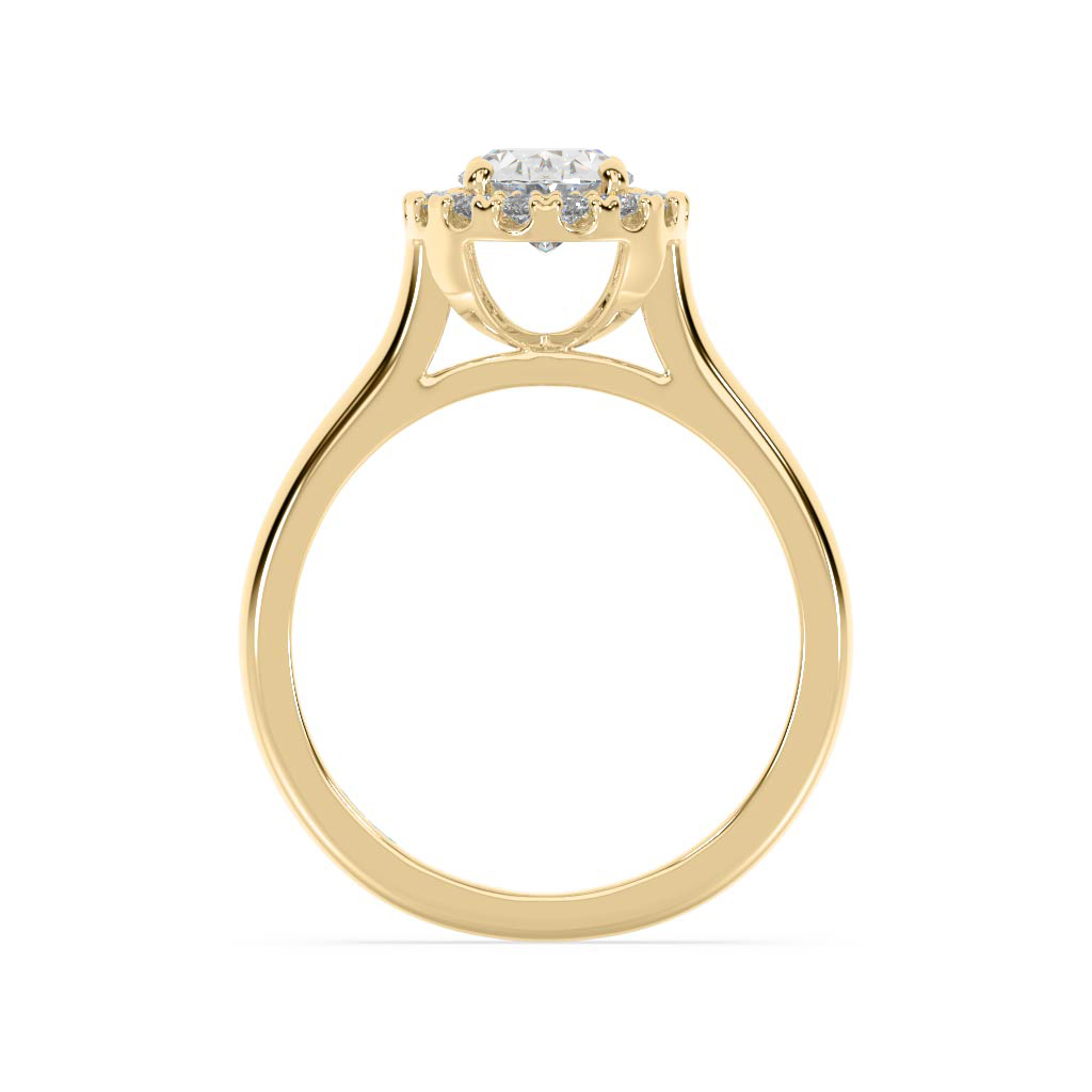 \n Oval cut diamond (1.00ct shown)\n 16 x 0.015ct round brilliant cut diamonds shared claw set into halo\n Total diamond weight = 0.24ct\n (based on 1.0ct centre diamond as shown, not including centre diamond)\n Basket style halo supports\n Half round band profile\n 2.20mm wide band\n