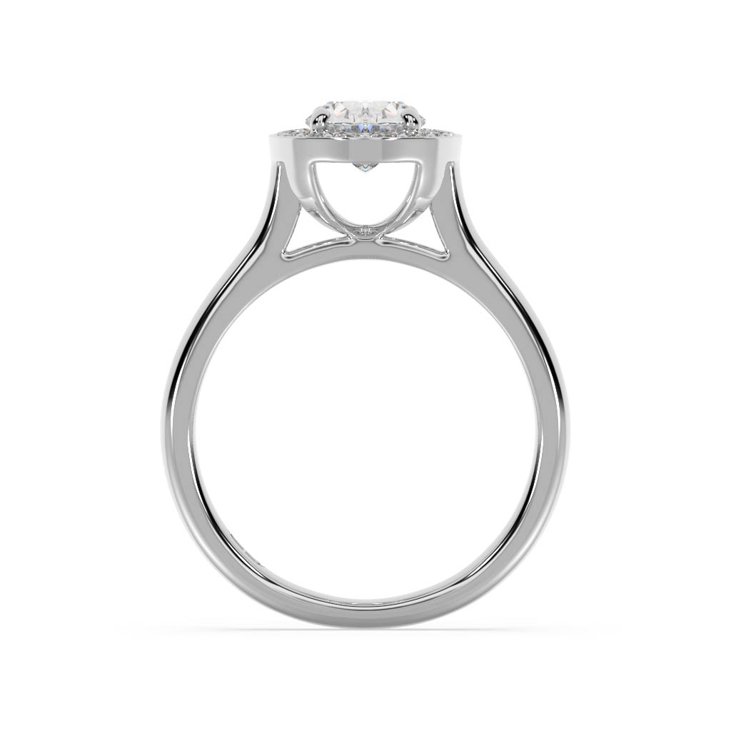 Oval diamond basket style halo engagement ring